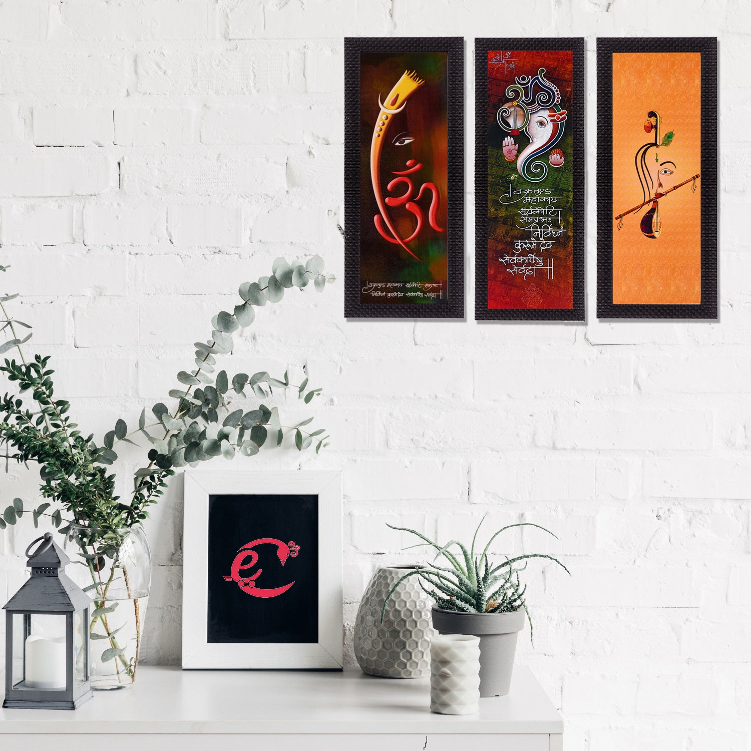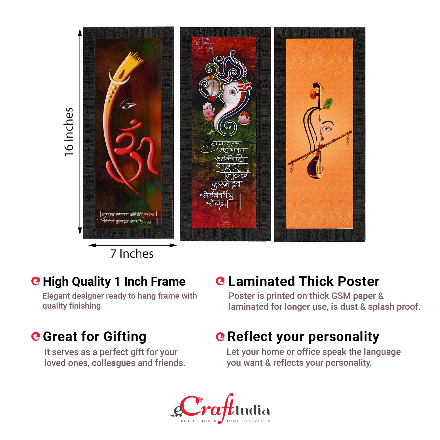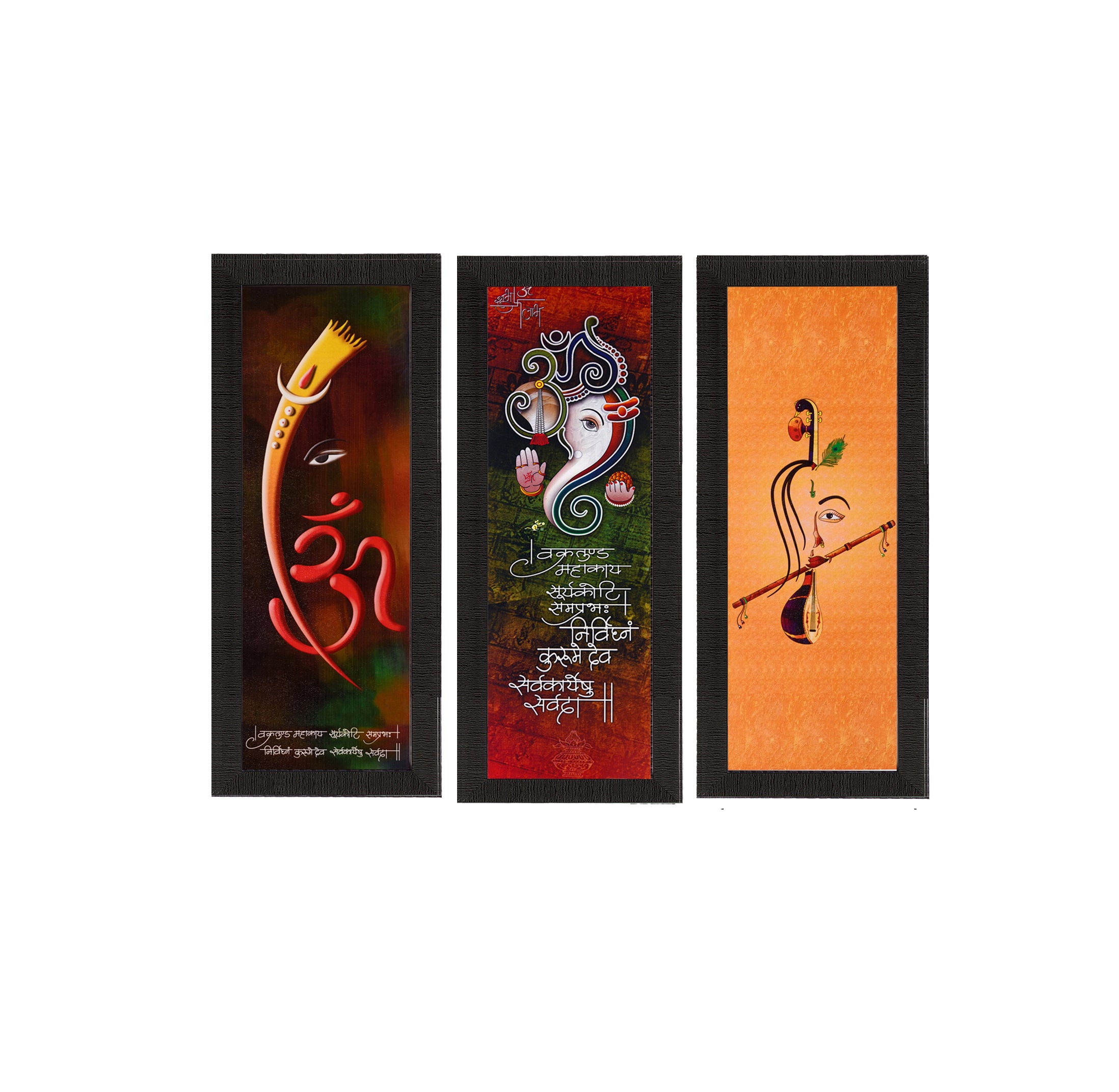 Set Of 3 Ganesha & Krishna Lord Buddha Satin Matt Texture UV Art Painting - eCraftIndia Online