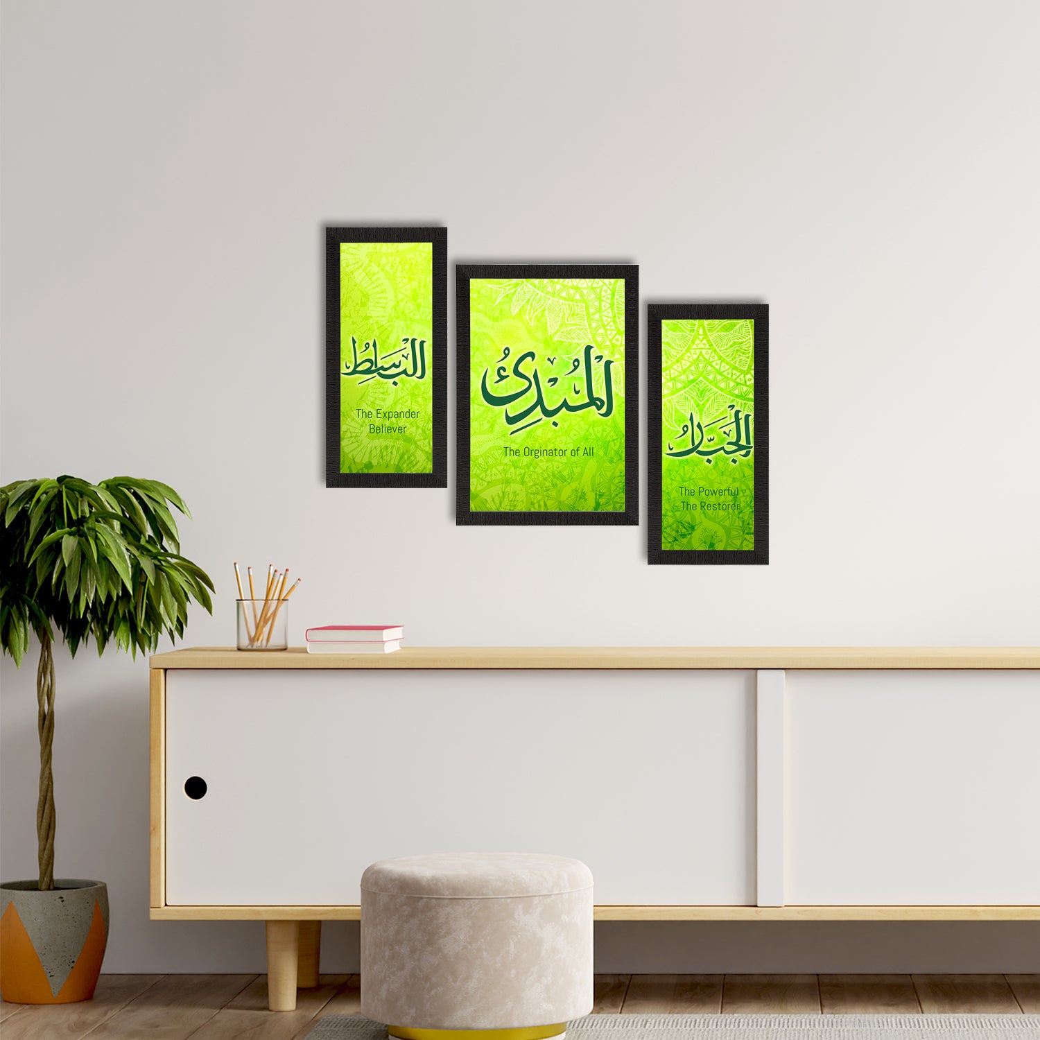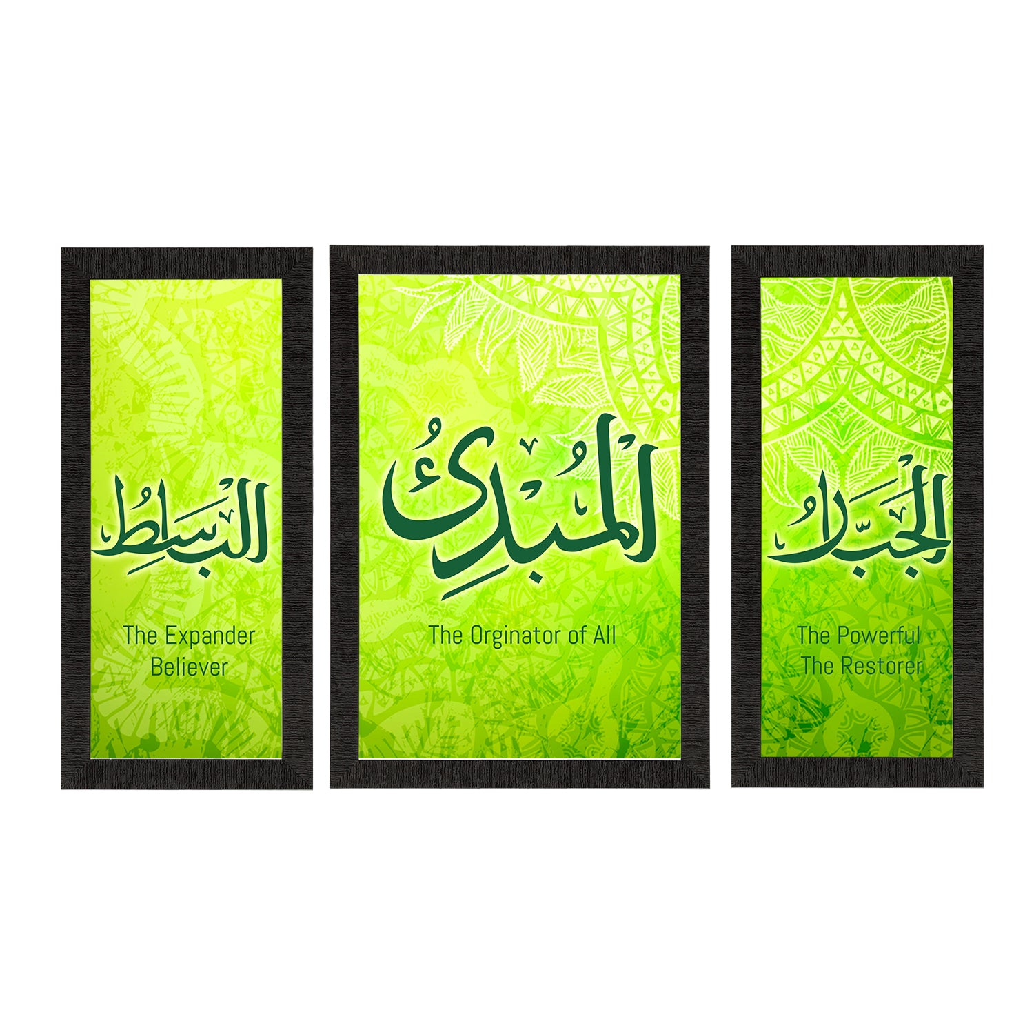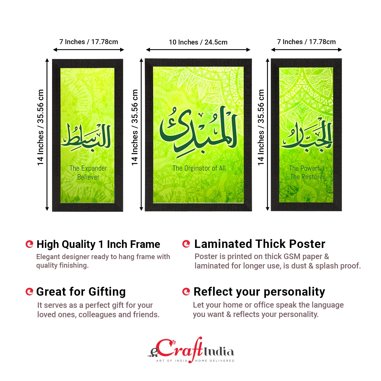 Product Description - Islamic Arabic Calligraphy is regarded as the most fundamental in Islamic art. Our Islamic framed paintings have quotes written in this art form which are surely going to make your wall space look religious. These Islamic framed paintings also come in a set that would help incorporate the entire wall. These further stand as a great gifting option when it comes to your family & friends around various celebrations & festivals. Our Islamic UV matt textured framed paintings are also available in types that will help you religiously incorporate the wall space. Each design reflects the artistic qualities and time one has taken to design this wall art painting. These frames don't include glass so it is very lightweight and wet cloth can be used to clean them.
