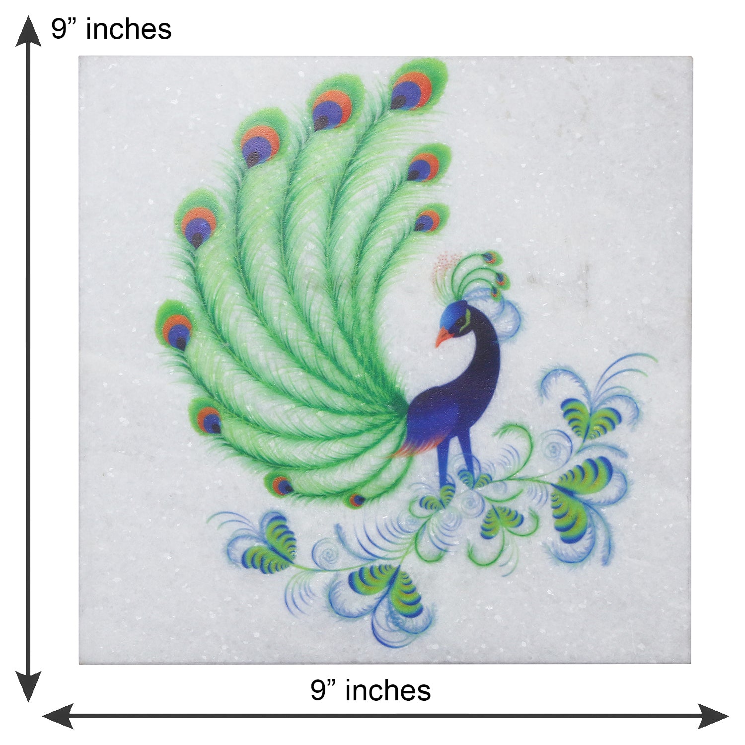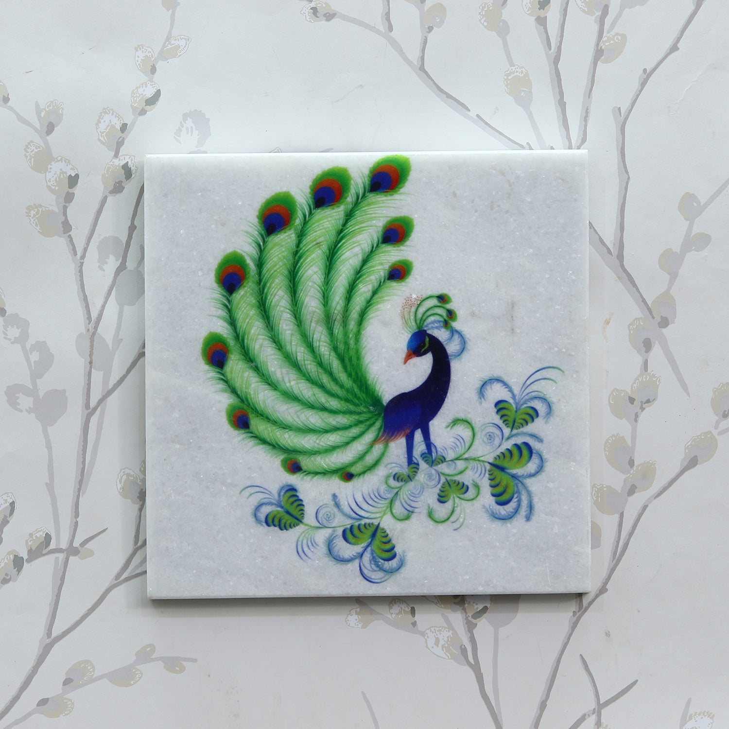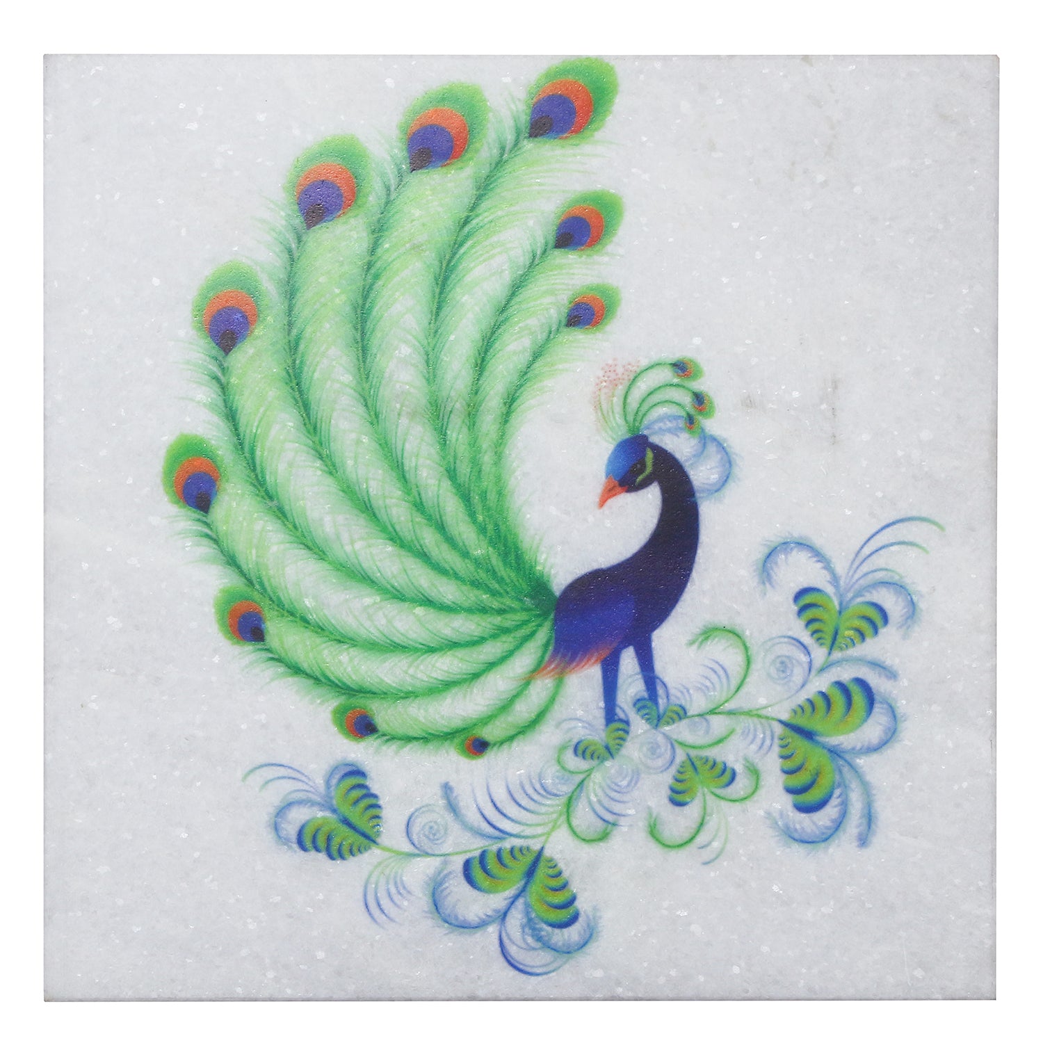 Package Content - One Colorful Dancing Peacock Painting On Marble Square Tile