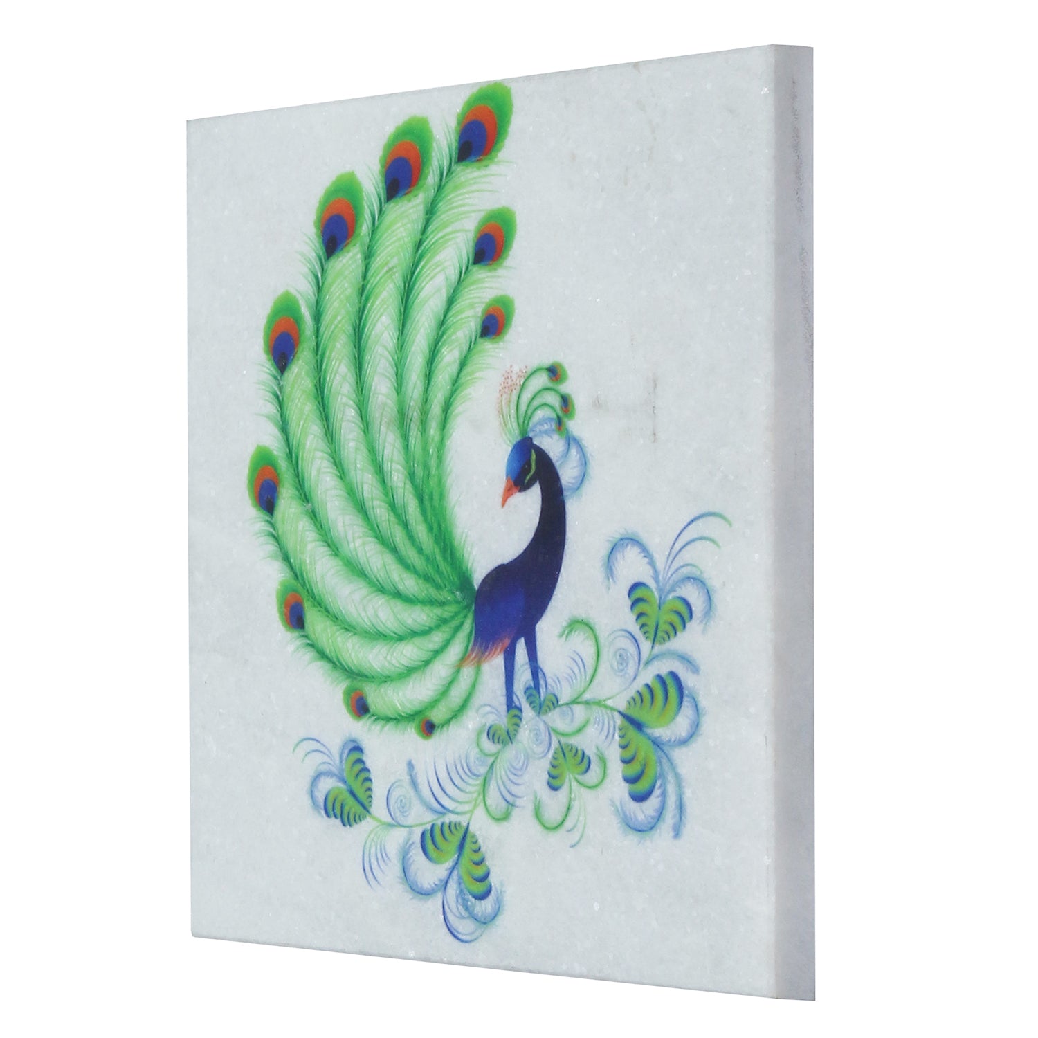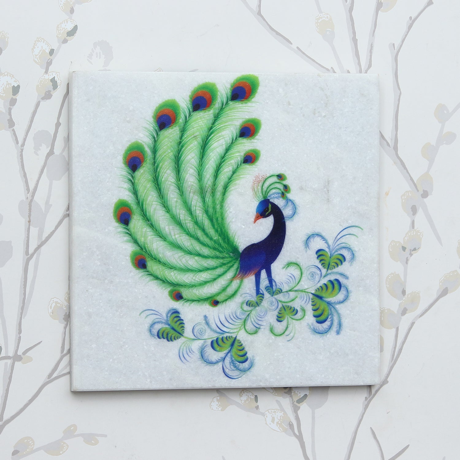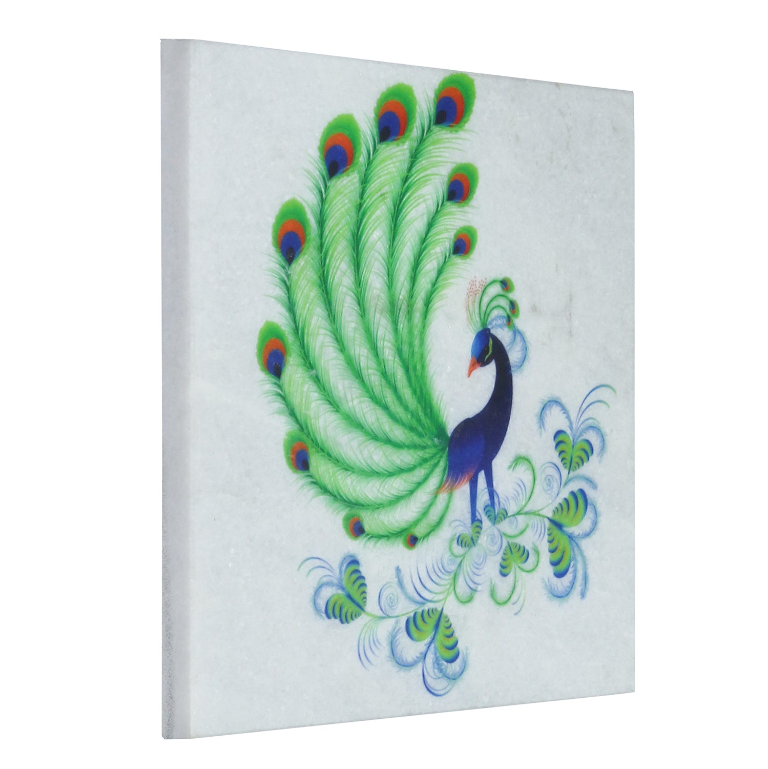 Package Content - One Colorful Dancing Peacock Painting On Marble Square Tile