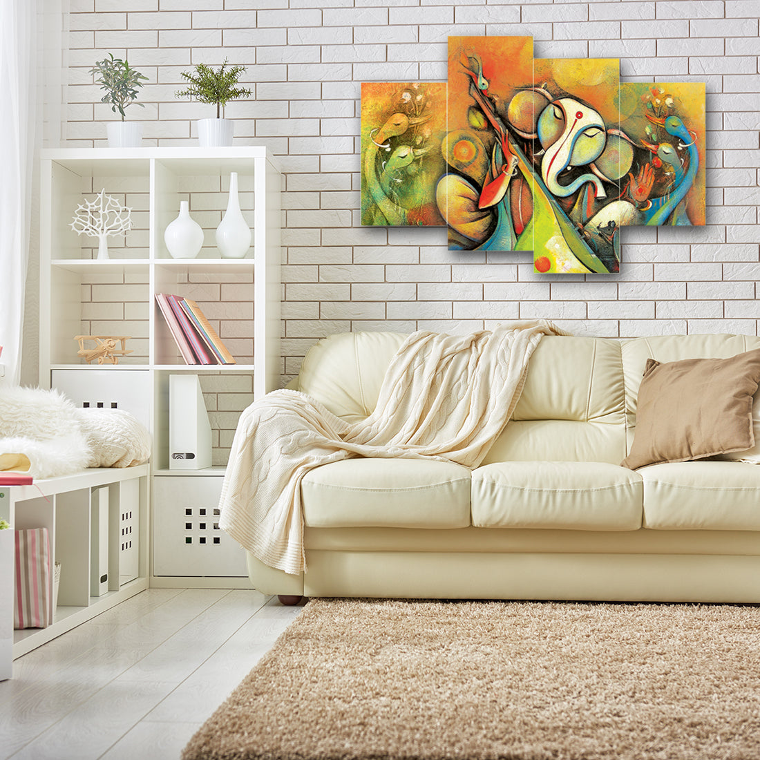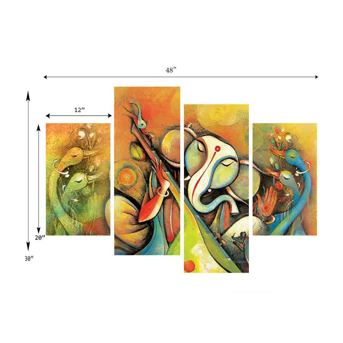 Package Content - One Set of 4 Lord Ganesha Premium Canvas Painting