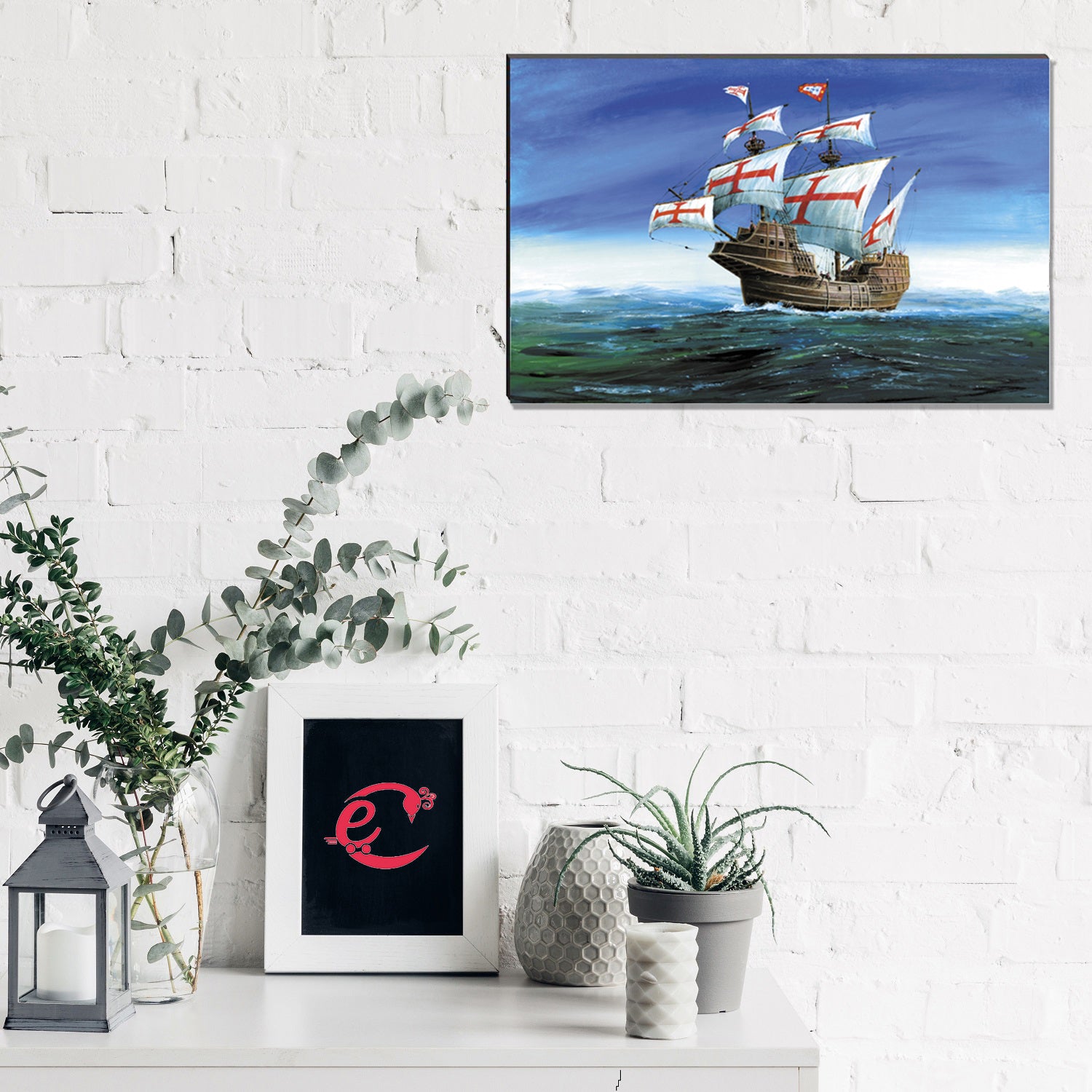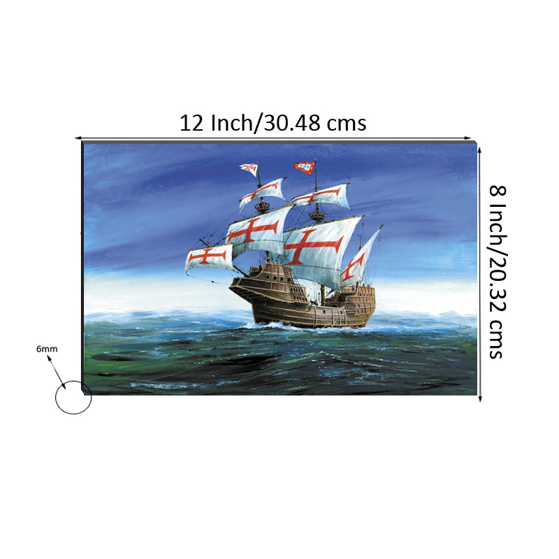 Package Content - One 6MM MDF Sailing Vintage Ship in Ocean Satin Matt Texture UV Art Painting