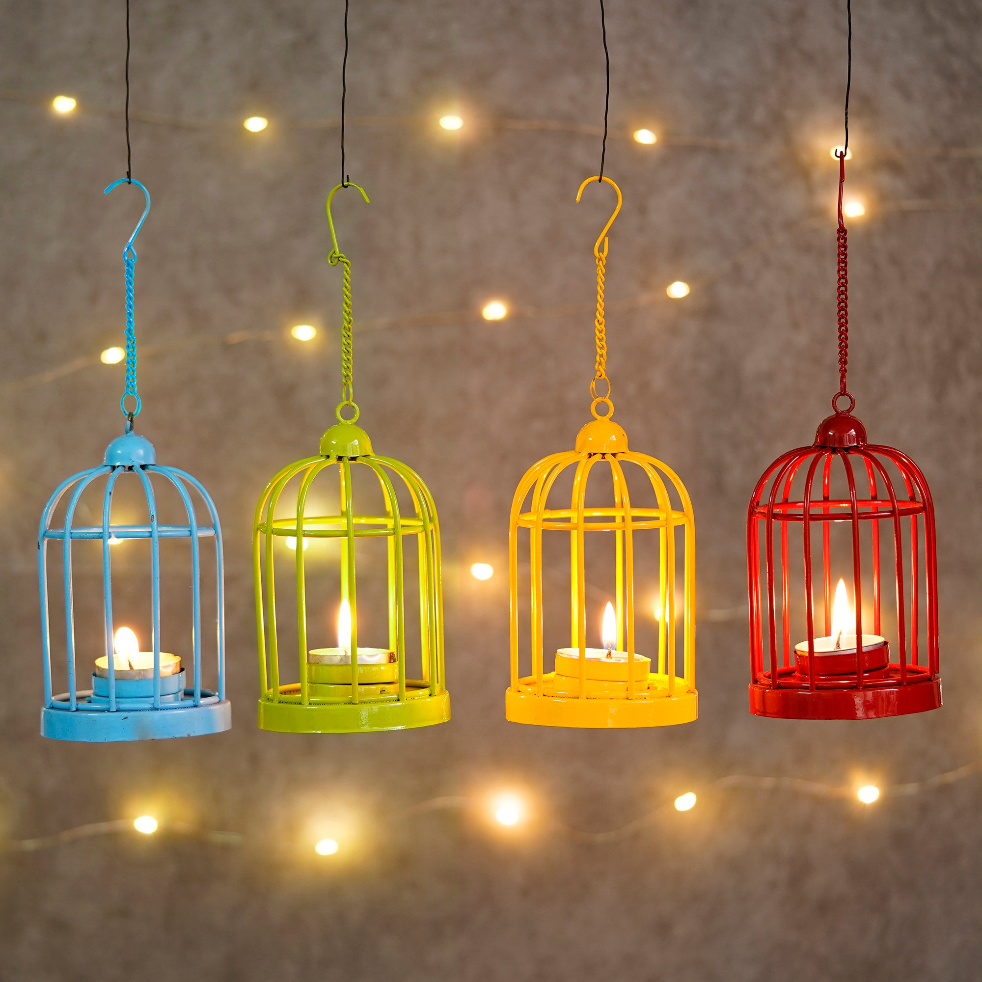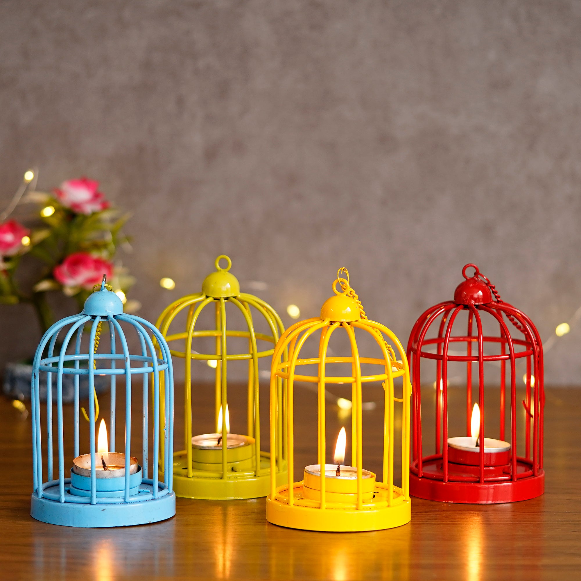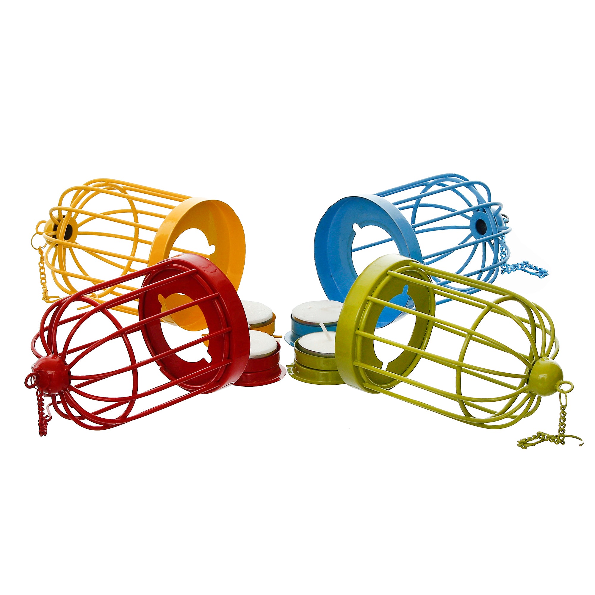 Product Description - Decorative tea light holders are in trend, especially the ones that have unique designs that stand as a great decor item during the festivals. They also help you decorate your home as well as the office space and enhance your festive decoration. eCraftIndia Set of 4 Blue, Green, Red & Yellow Cage Iron Tea Light Holder with hanging chain is the best for you to get your hands on. You can also gift this to your friends and family at festivals or other auspicious occasions. Diligently handcrafted using various ancient techniques by the artisans at eCraftIndia, this is the most unique and decorative tea light holder that you can get.