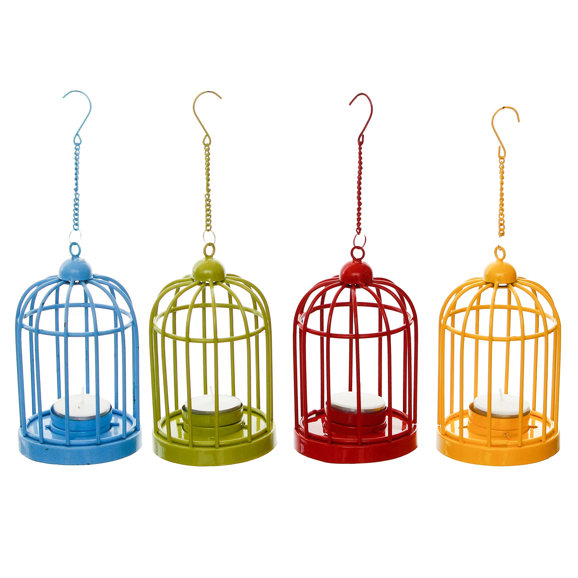 Package Content - One Set of 4 Colors Cage Tea Light Holder With Hanging Chain