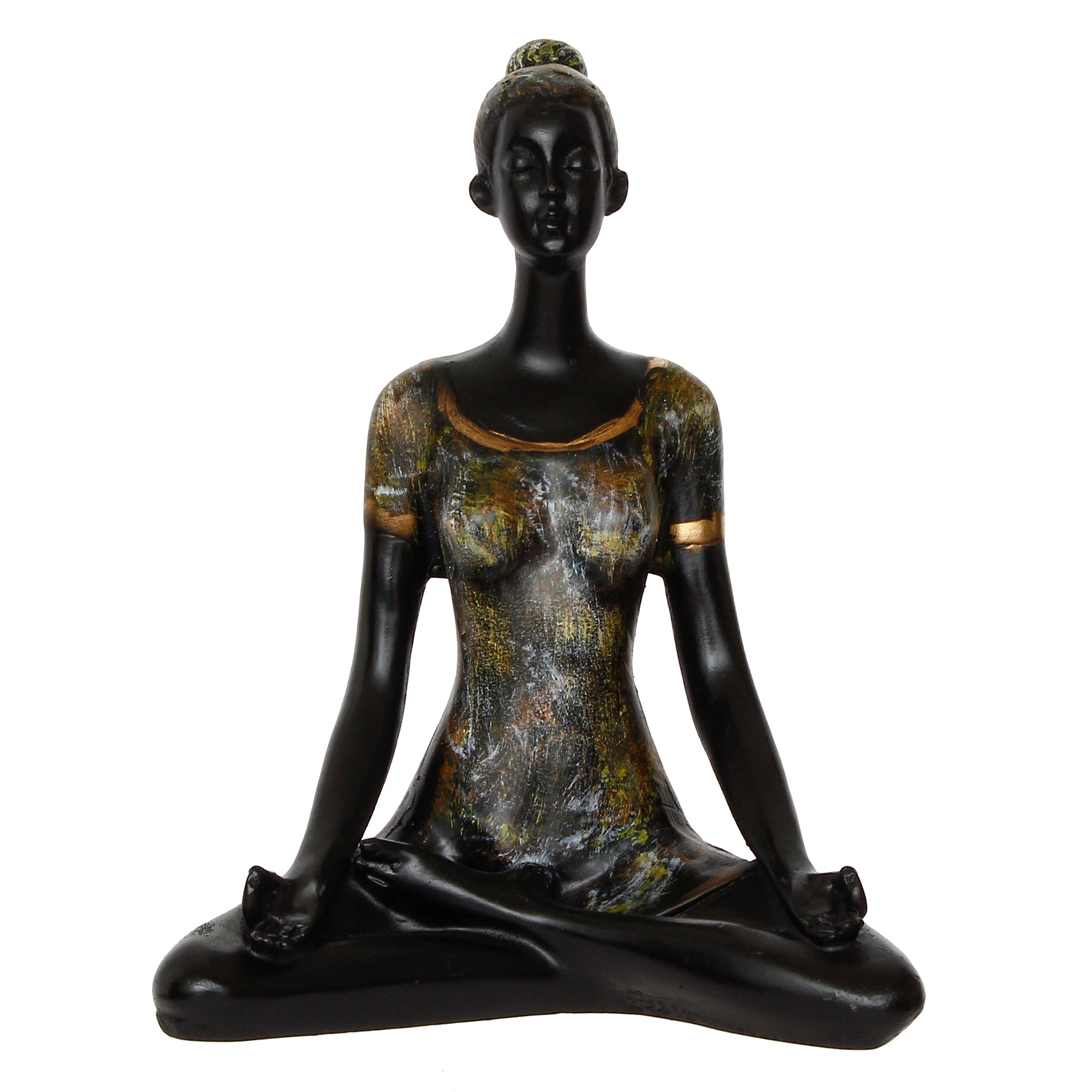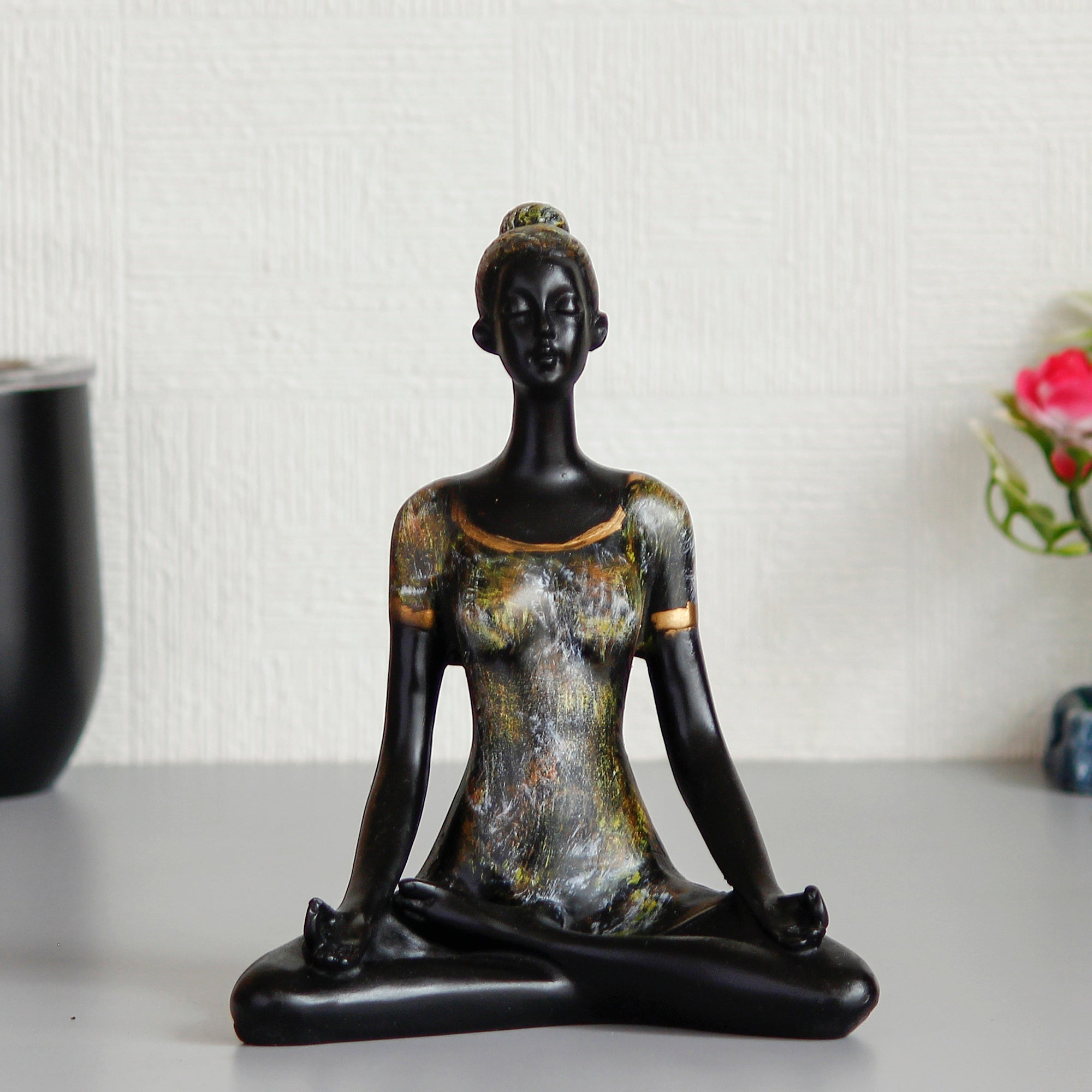 Package Content - One Meditating Lady in Yoga Pose Antique Finish Handcrafted Decorative Polyresin Showpiece