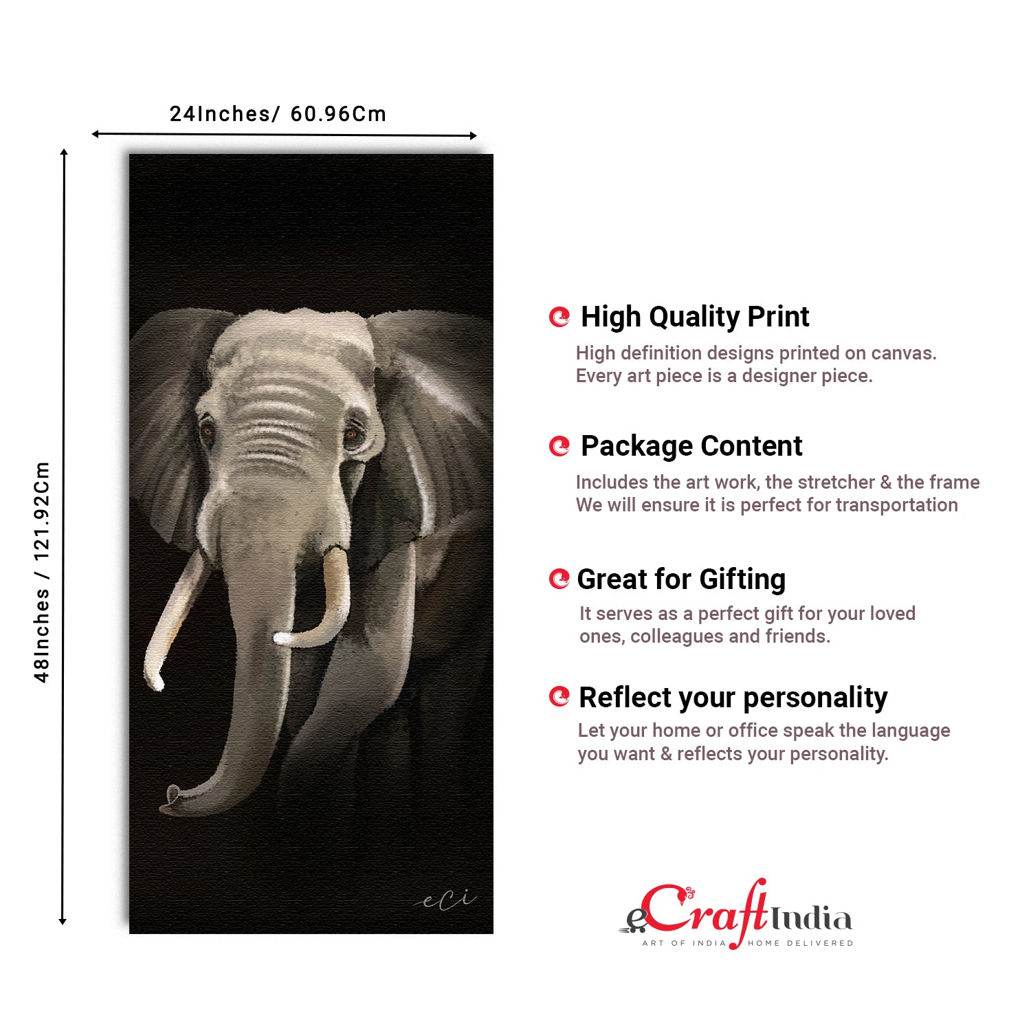 Package Content - One Elephant Original Design Canvas Printed Wall Painting