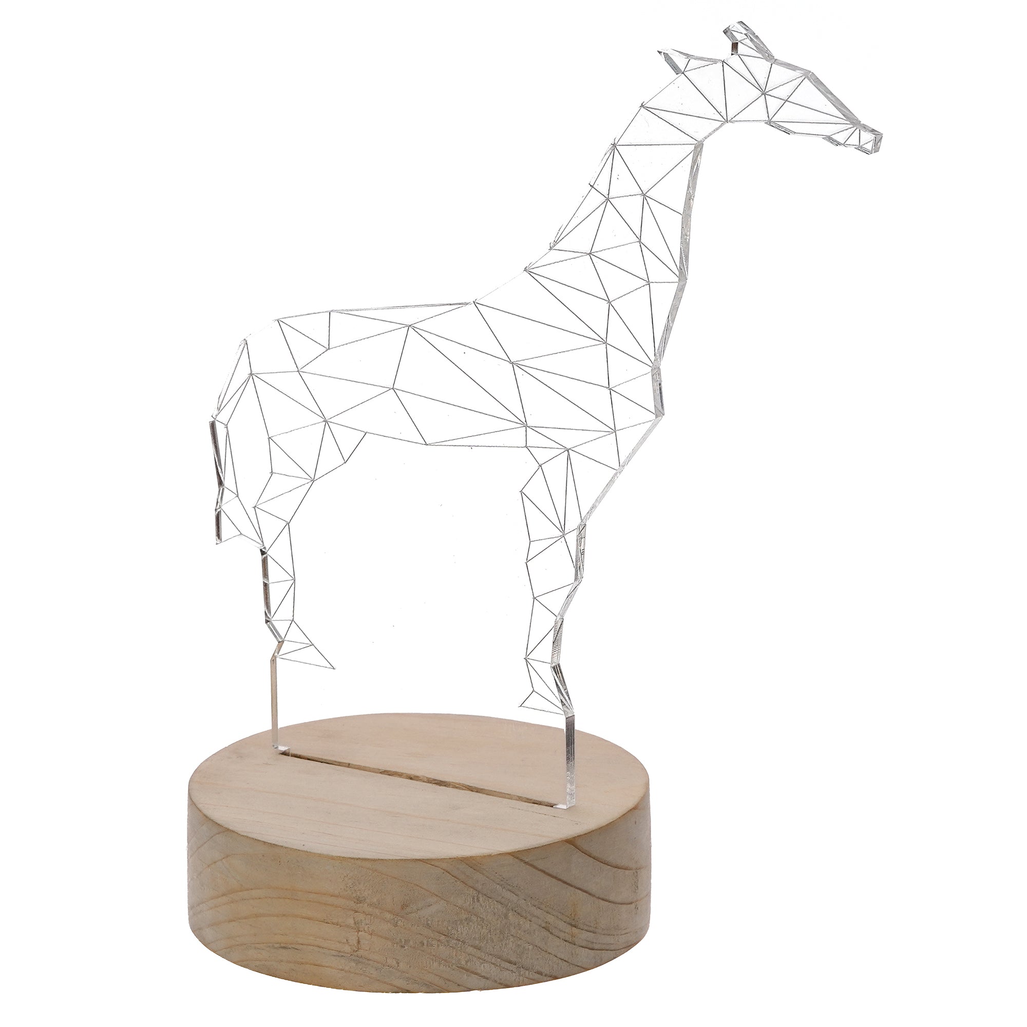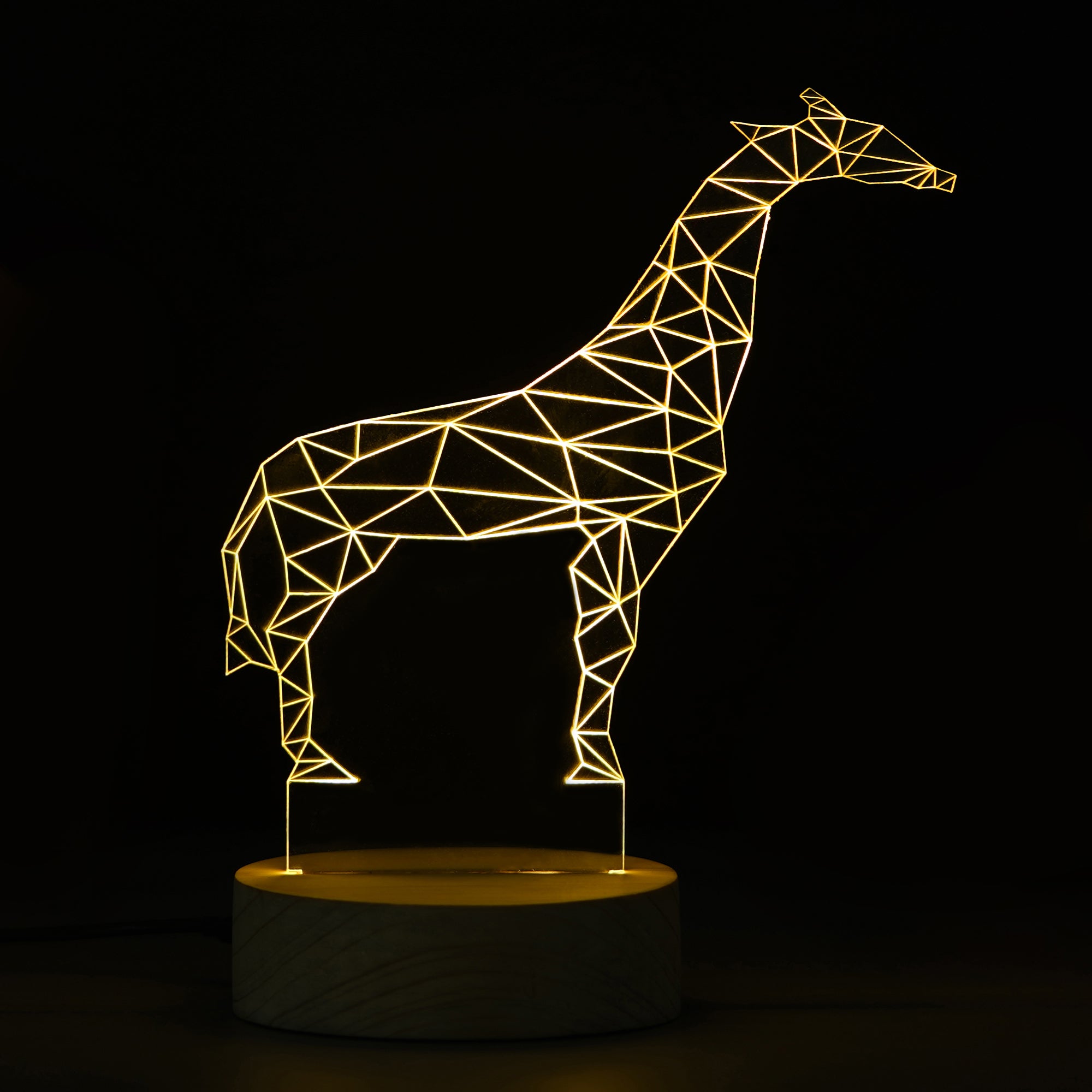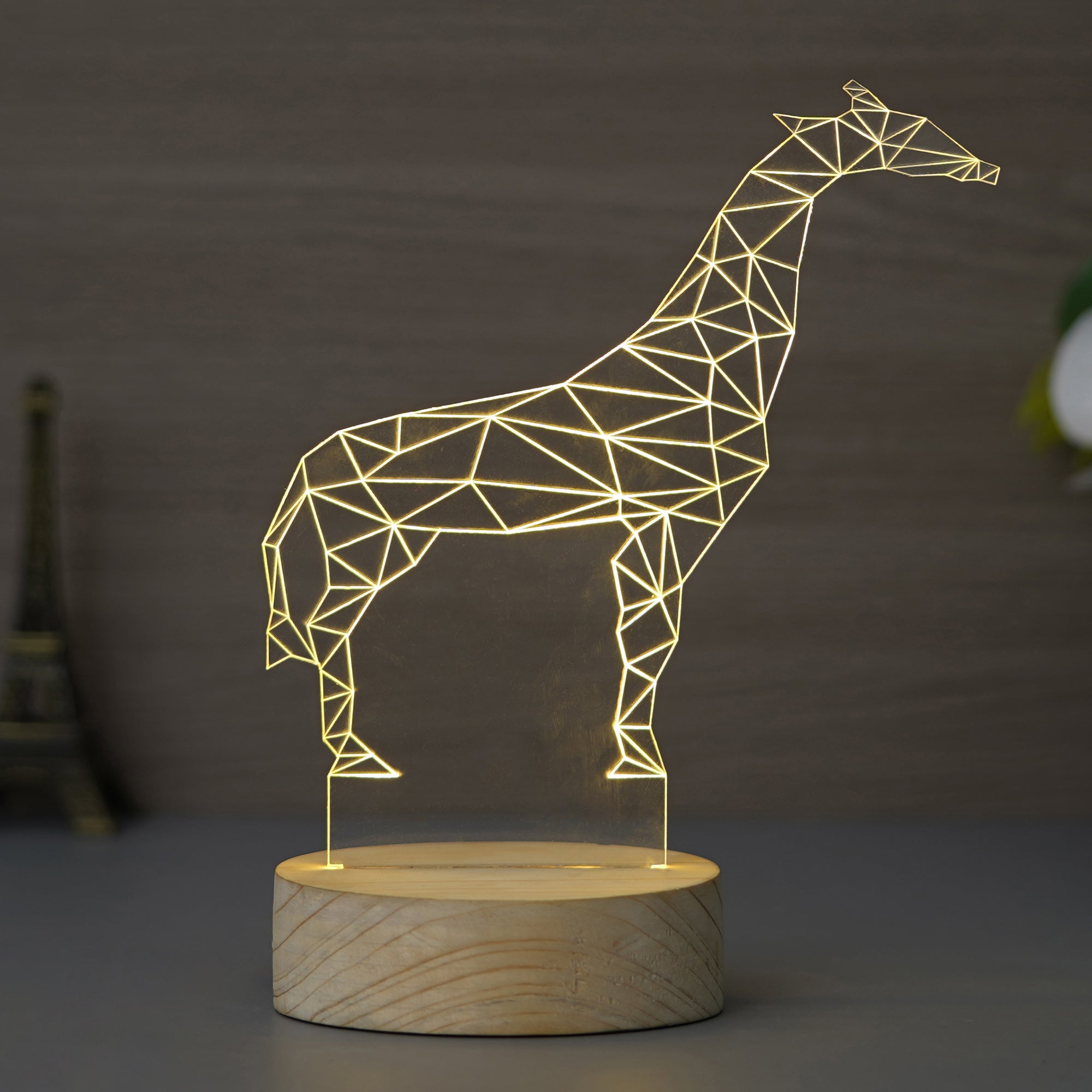 Giraffe Design Carved on Acrylic & Wood Base Night Lamp |