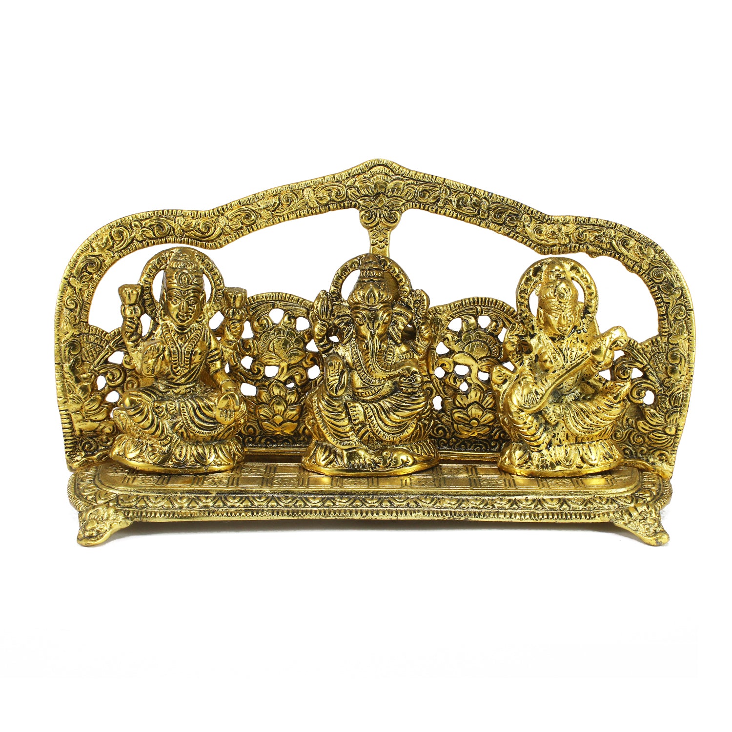 Package Content - 1 Golden Laxmi Ganesha Saraswati Shining Religious Decorative Showpiece