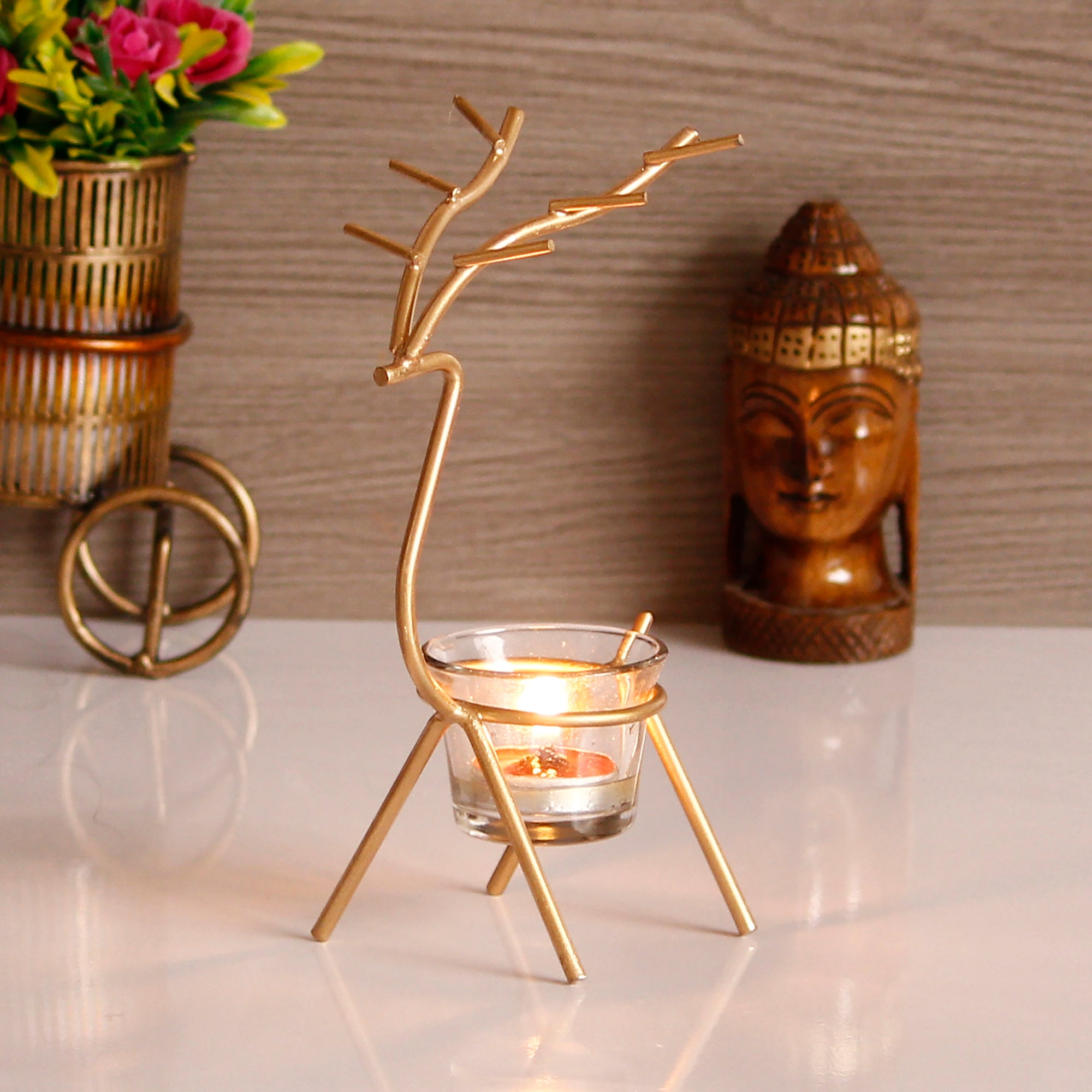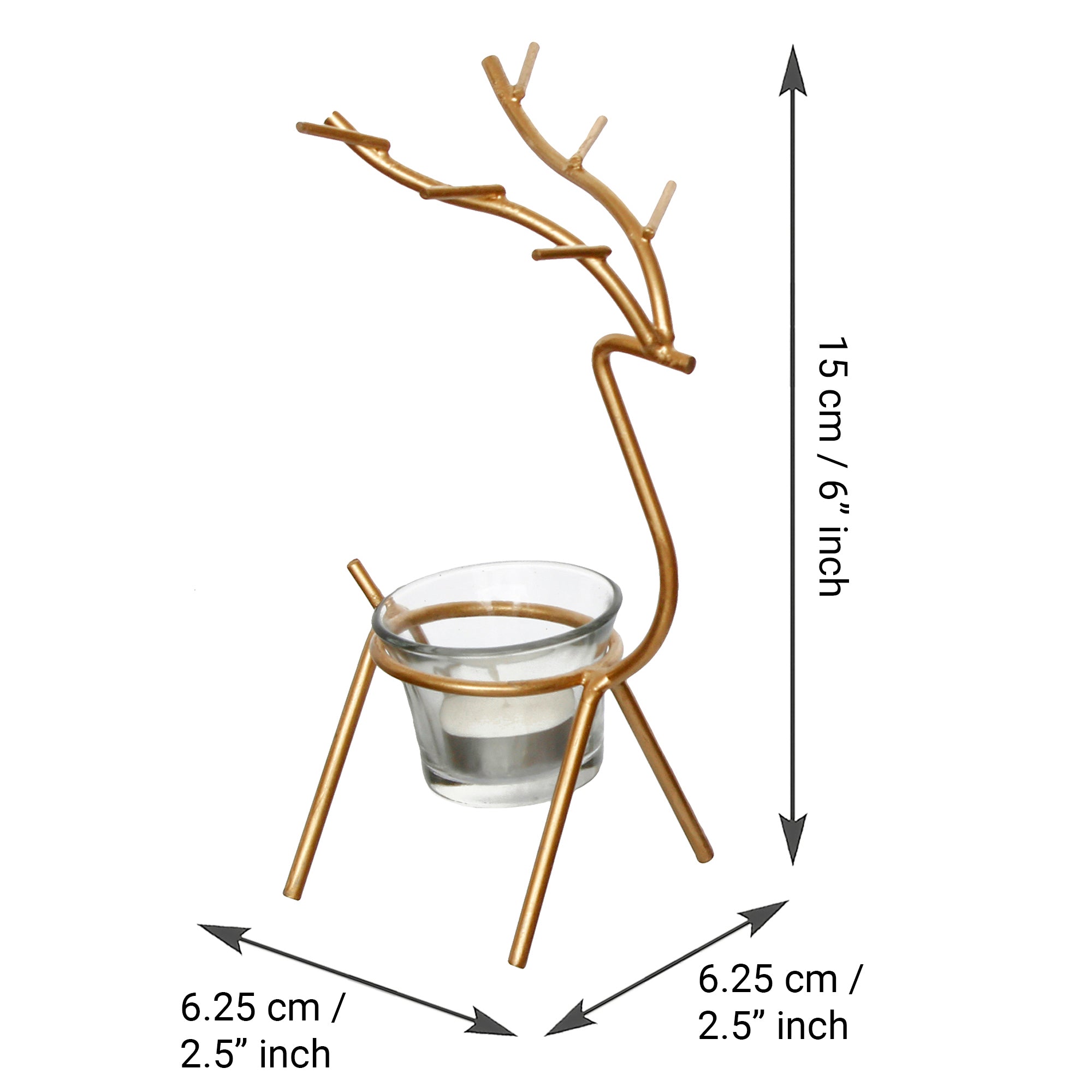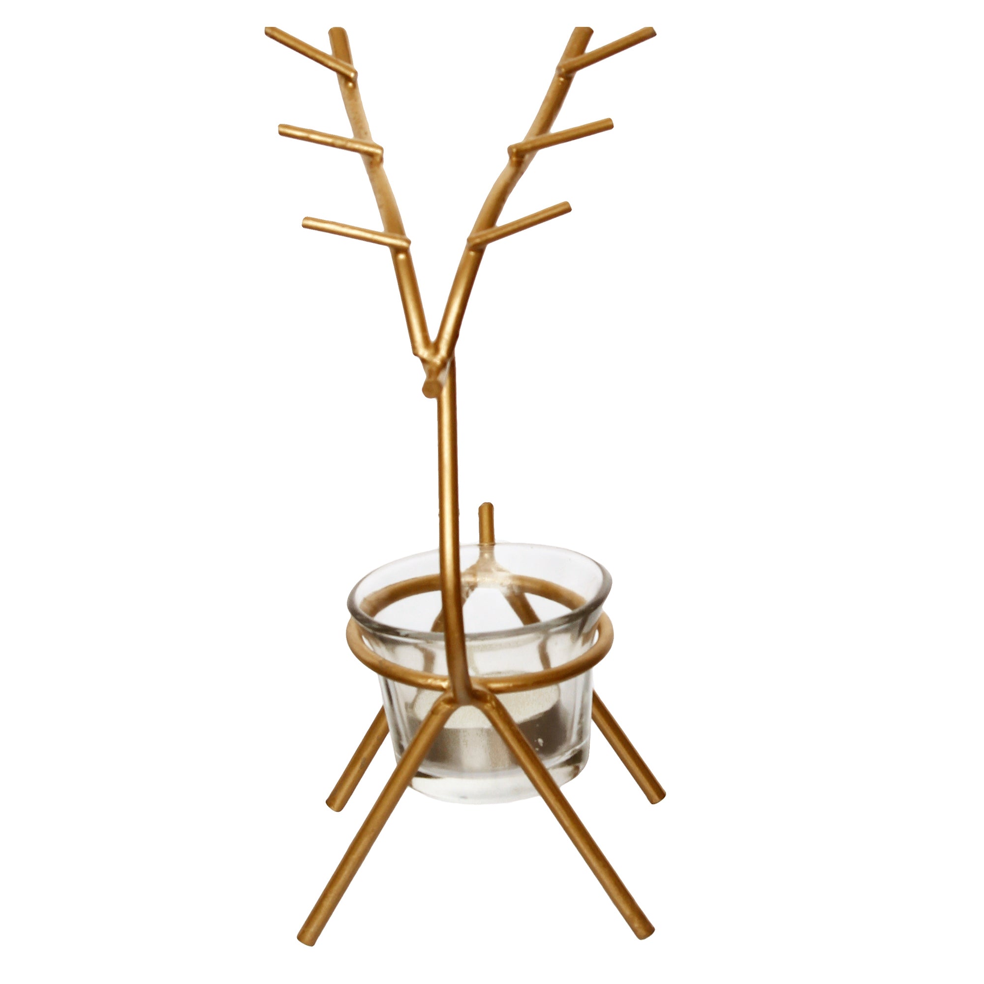 Package Content - One Deer Shape Decorative Handcrafted Metal Golden Tea Light Holder