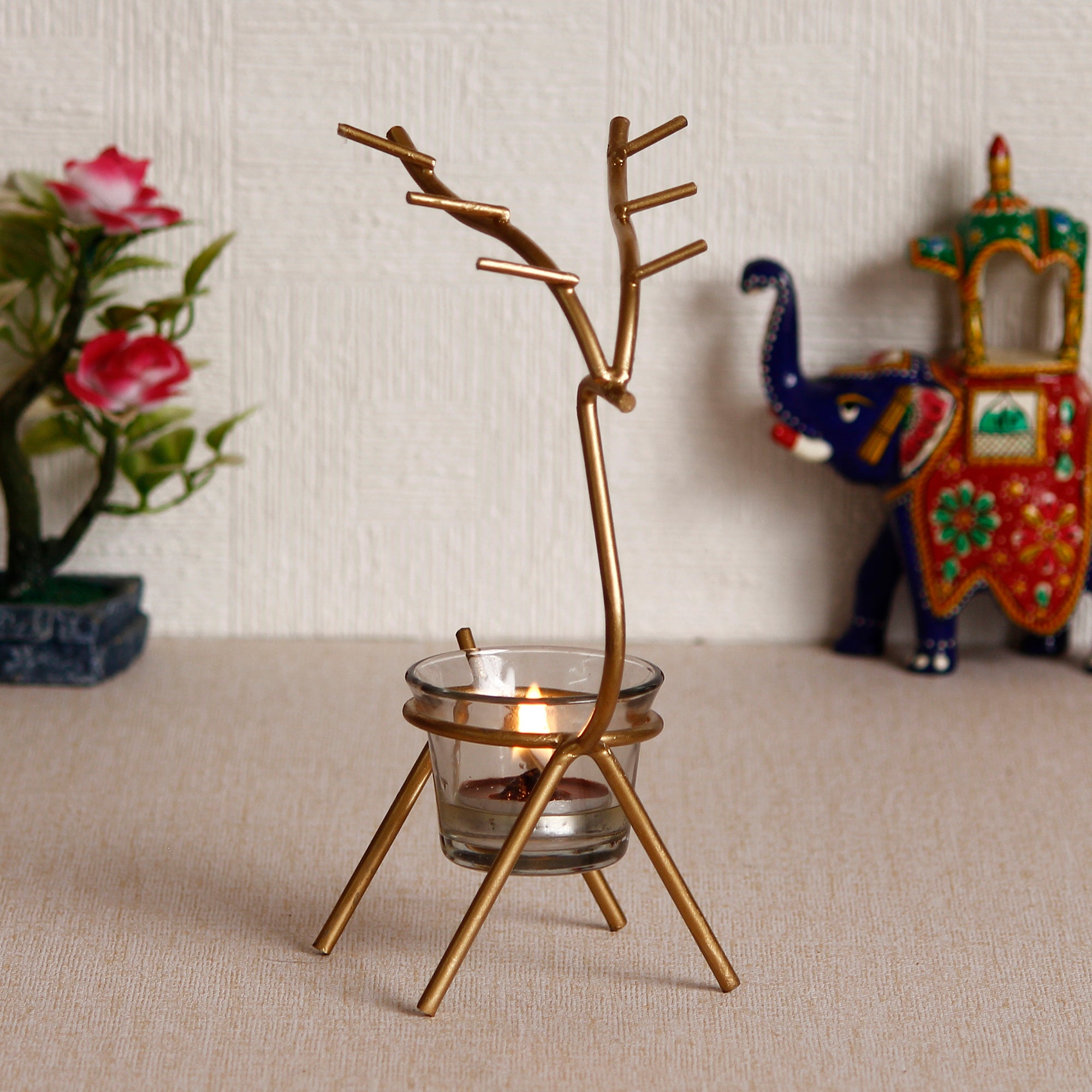 Product Description - Glorify your celebrations with eCraftIndia's gold deer shape metal tea light candle holder or diya that help you make your celebrations fun and memorable. These tea light holders will not fail to leave a lasting impression on your guest. Made from metal this wonderful piece of art will surely accentuate your home decor. It serves as a great gift, especially around religious celebrations and festivities. Each tea light holder is diligently handcrafted by skilled artisans from the house of eCraftIndia using various traditional techniques.