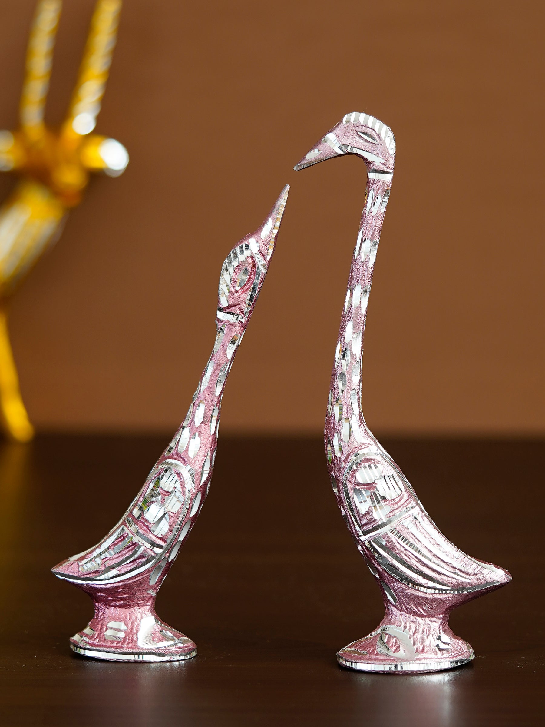 Package Content - One 7 Inch Pink Kissing Swan Couple Handcrafted Decorative Figurine