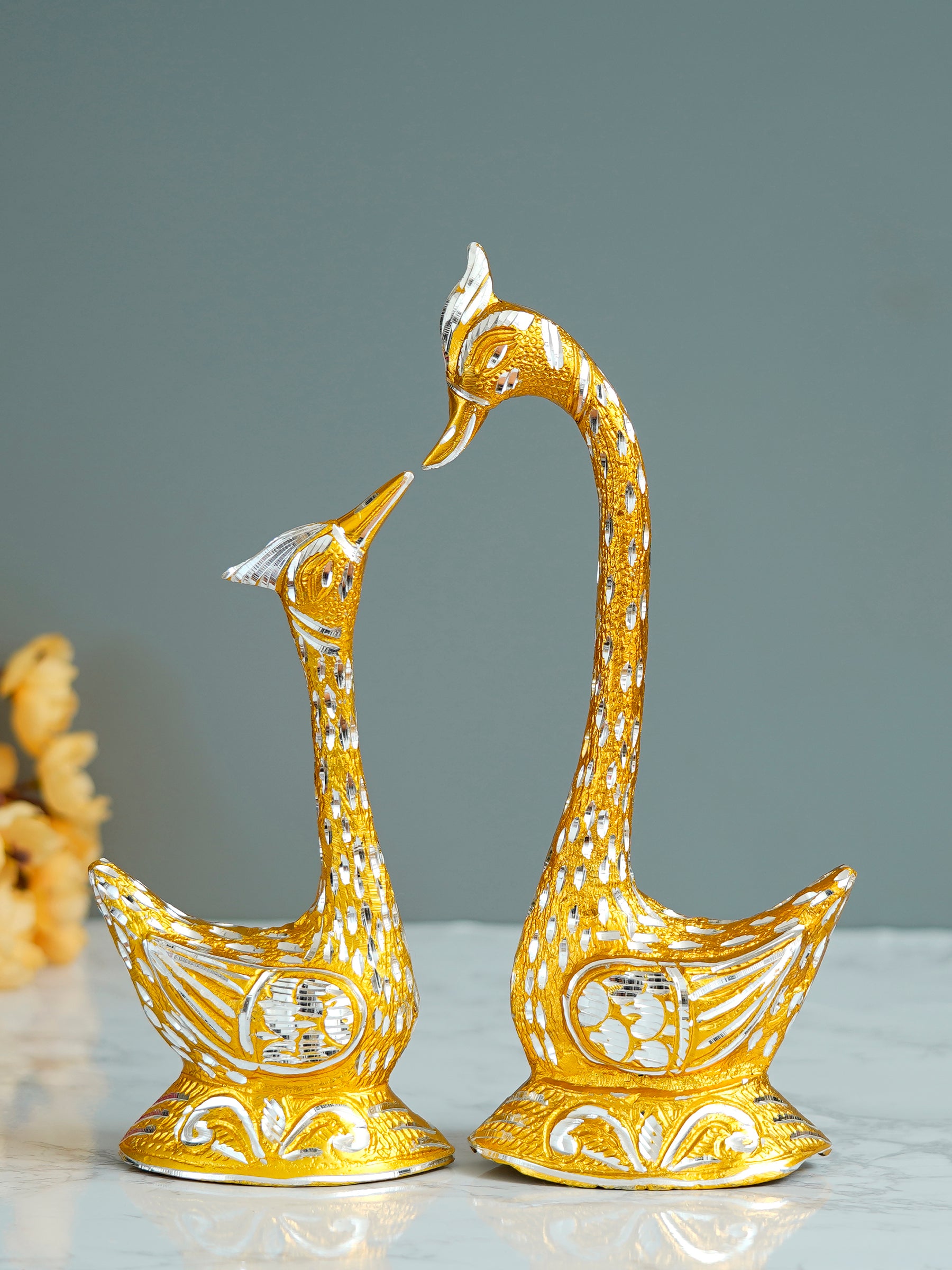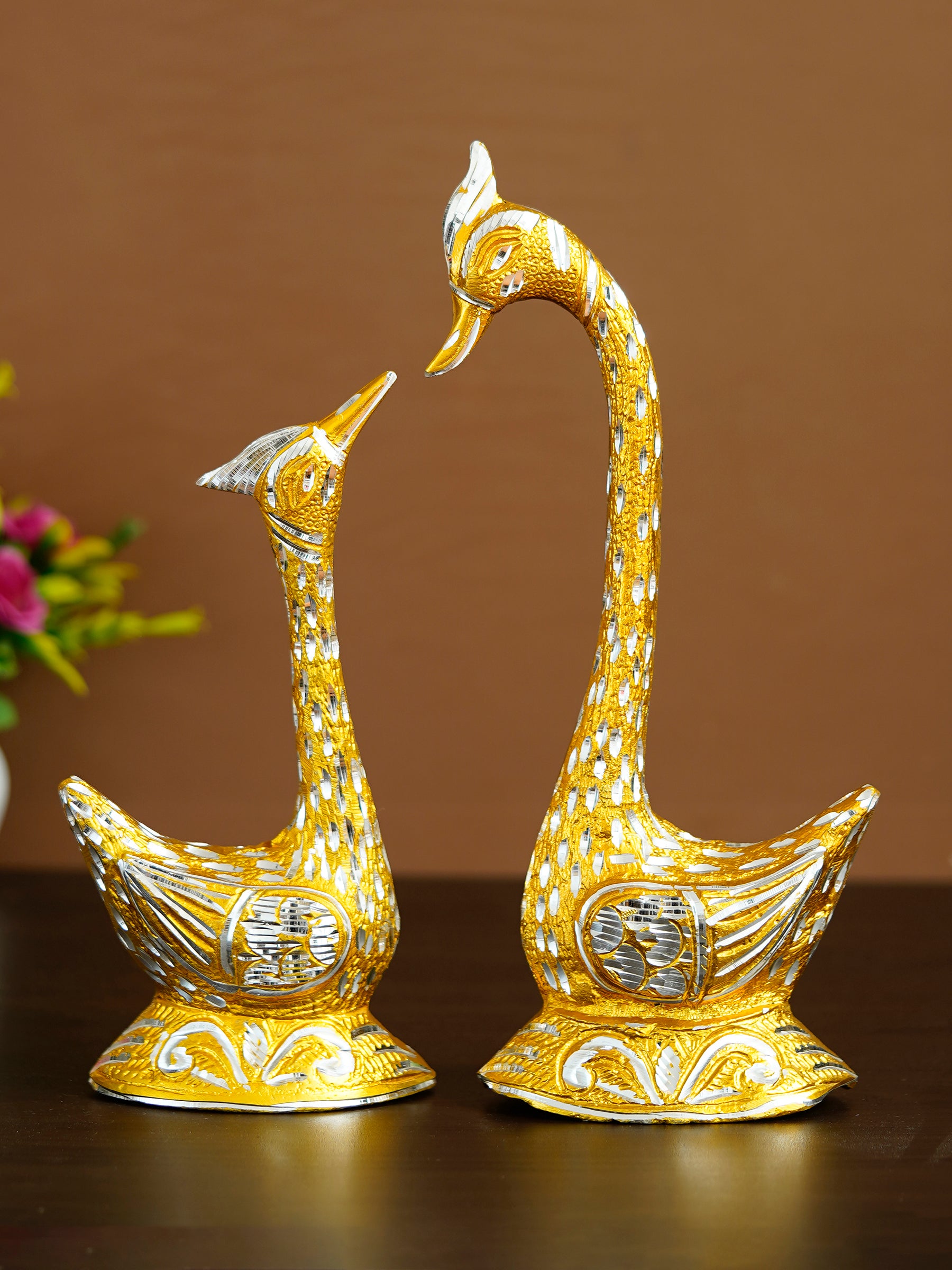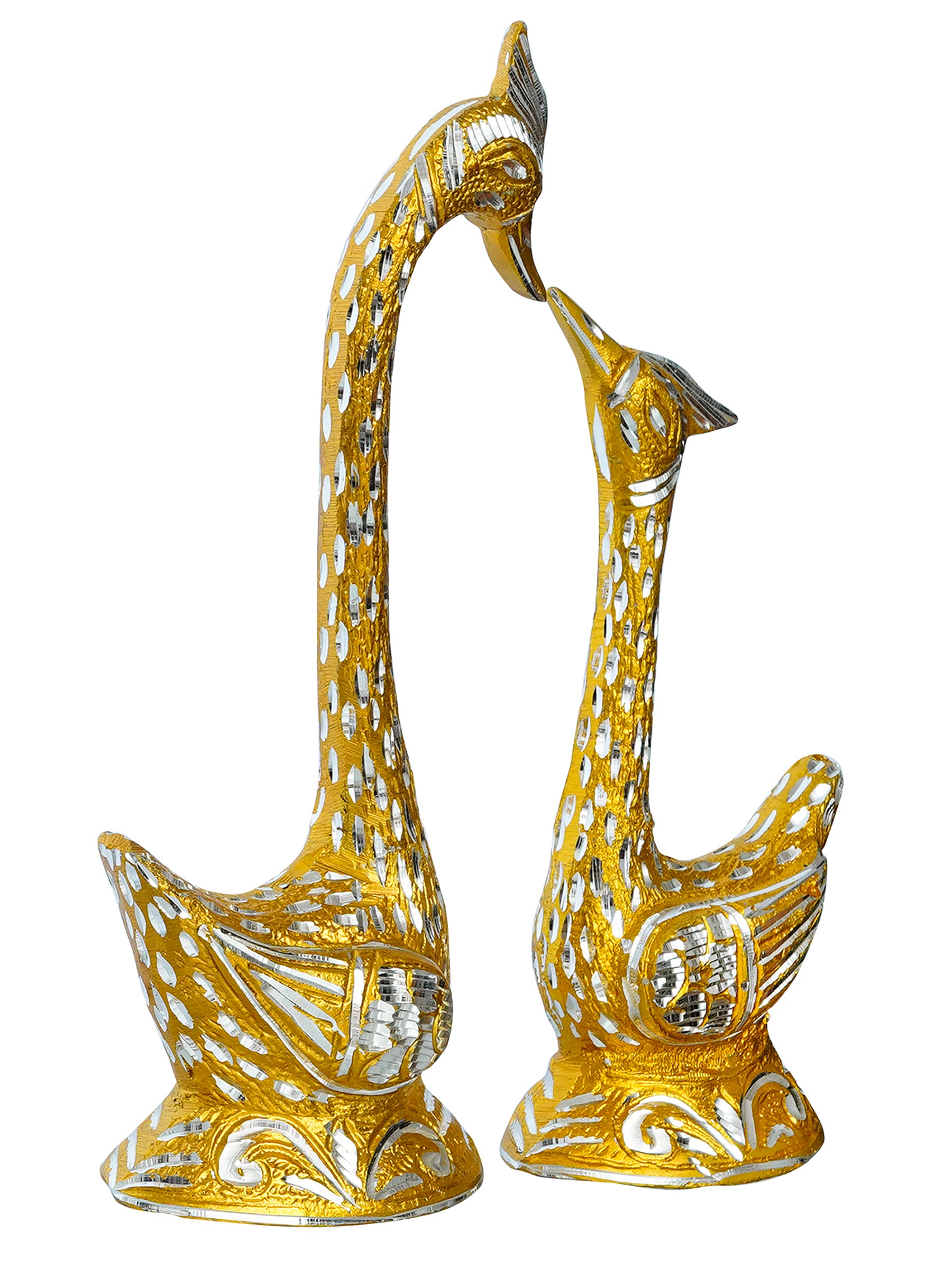 Product Description - Cuteness at its peak! eCraftIndia 12 Inch Golden Kissing Swan Couple Handcrafted Decorative Figurine depicts their tremendous love for each other. Every act of birds seems cute but these are something more than that. You may have not seen the cute pose of birds kissing in real but our artisans at eCraftIndia have made those lovely eye catching moments here! This showpiece depicts love birds expressing their love just like humans do. It serves as a great gift, especially to newly married couples and collegues. This handicraft has been made by skilled artisans from the house of eCraftIndia using various traditional techniques.