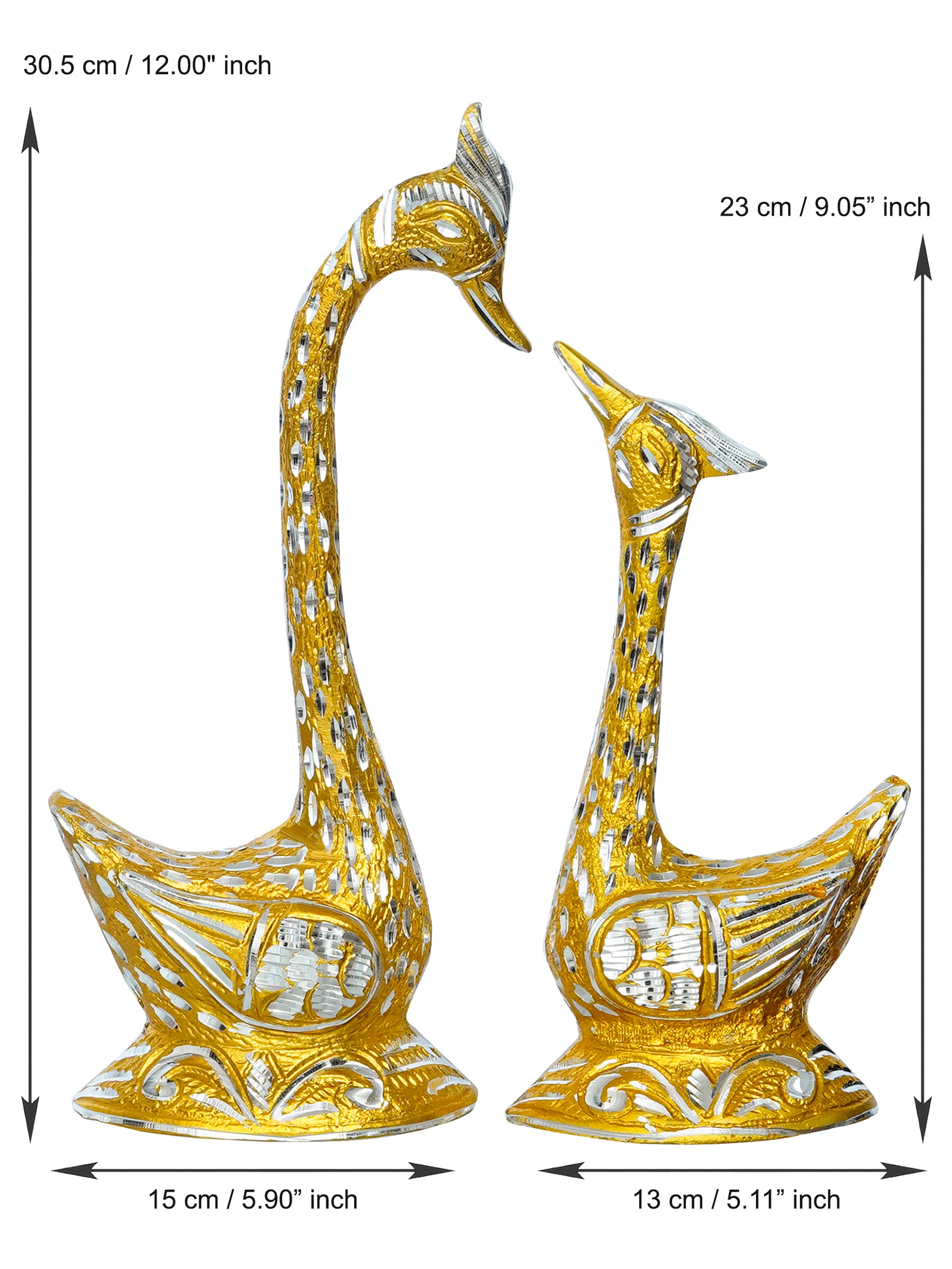 Package Content - One 12 Inch Golden Kissing Swan Couple Handcrafted Decorative Figurine