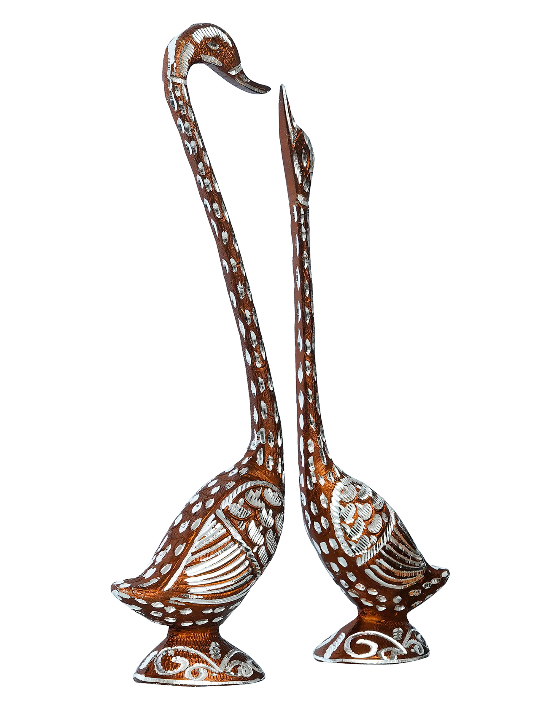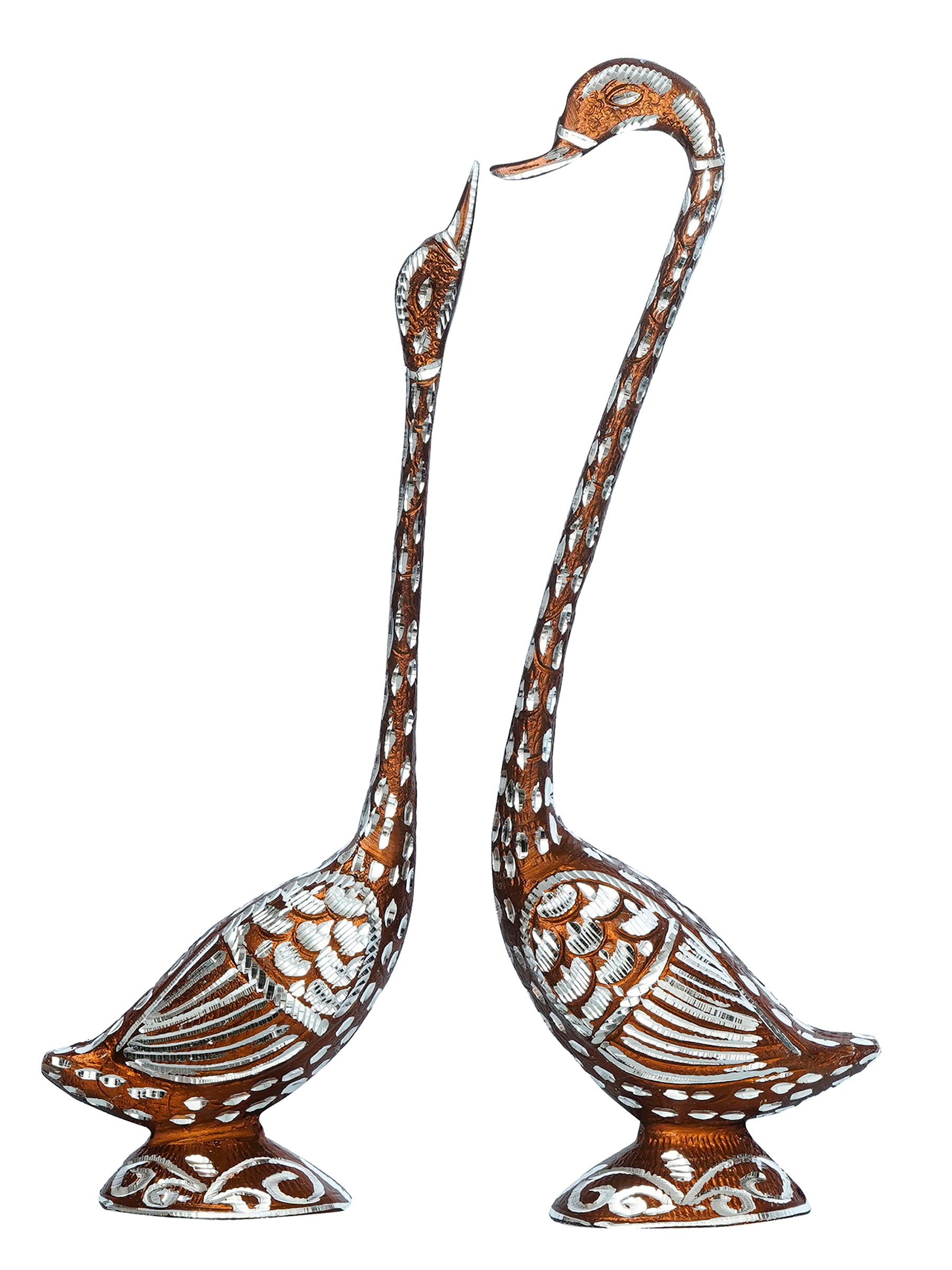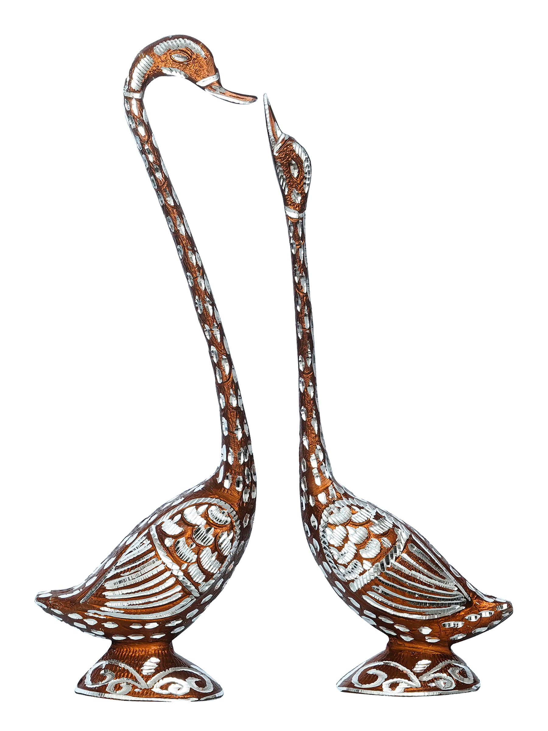 Product Description - Home decoration items have always enhanced your home space and still continue to do so. Our brown kissing swan couple figurine is a perfect match for your home interior if you have recently enhanced your home space or bought a new home. It is also a perfect gift for your friends and family and most appropriate for your newly wedded couple. This diligently handcrafted figurine is a showpiece made of metal using various inherited methods and also reflects the artistic value that it will add to your home decor.