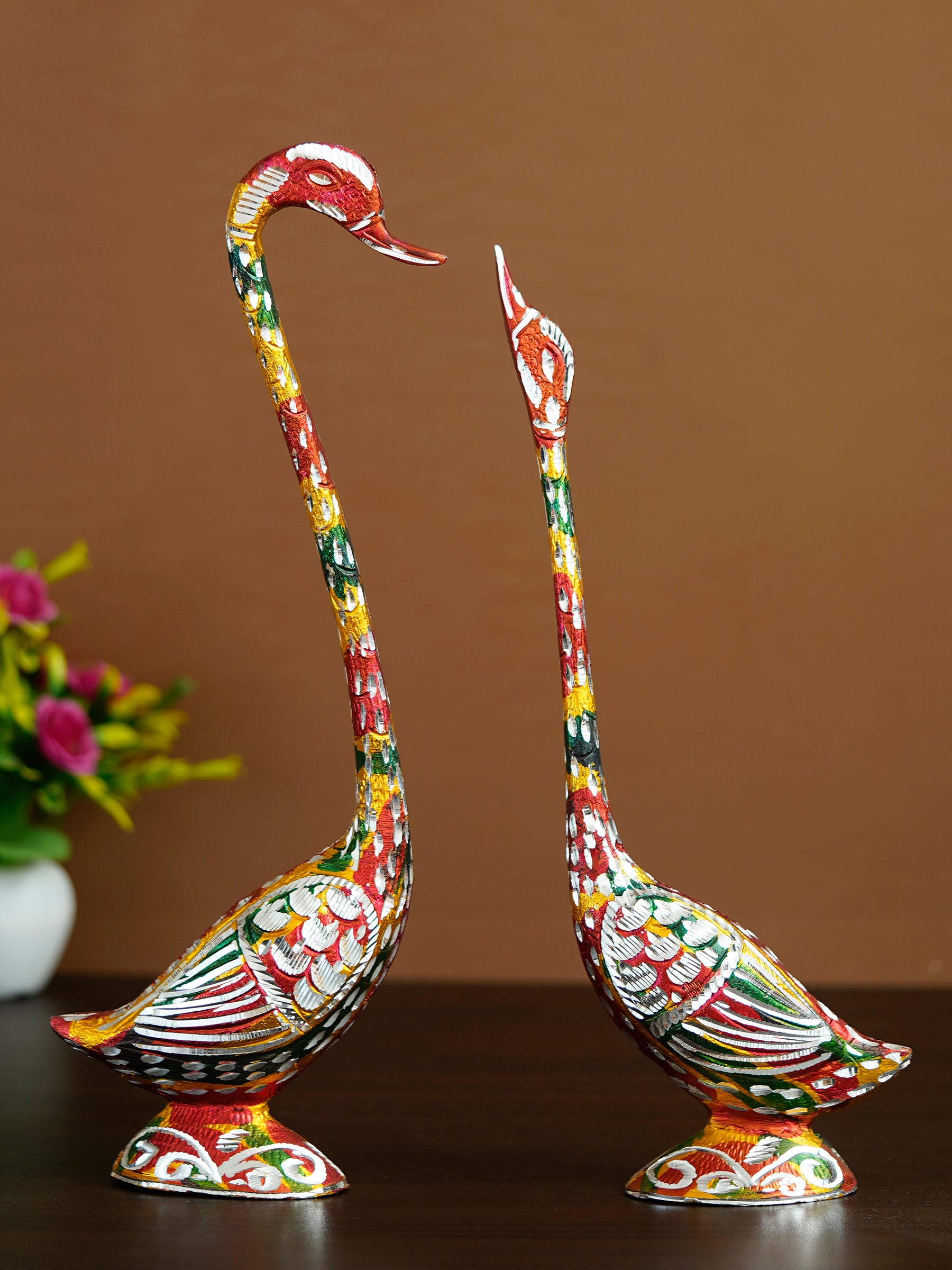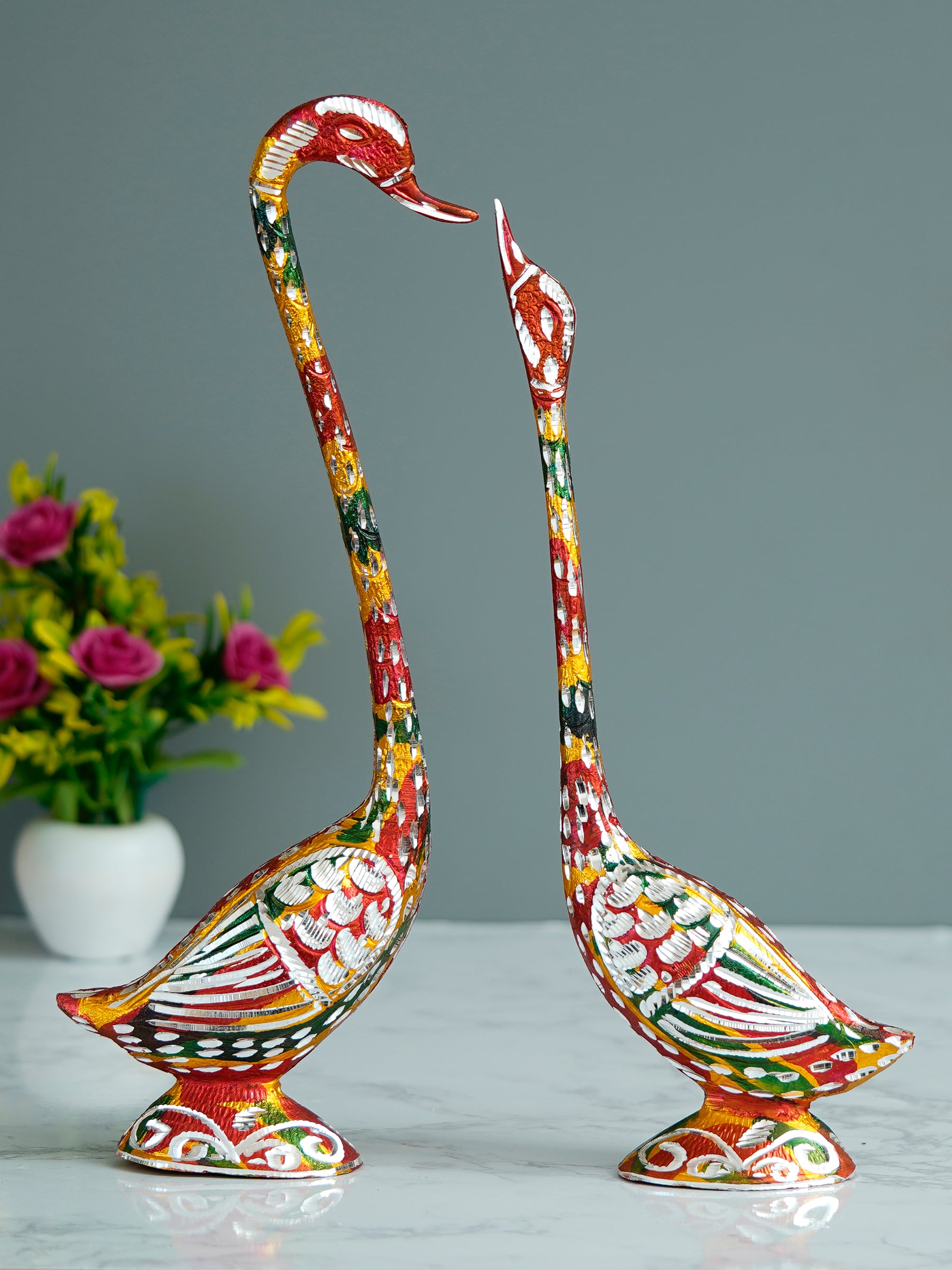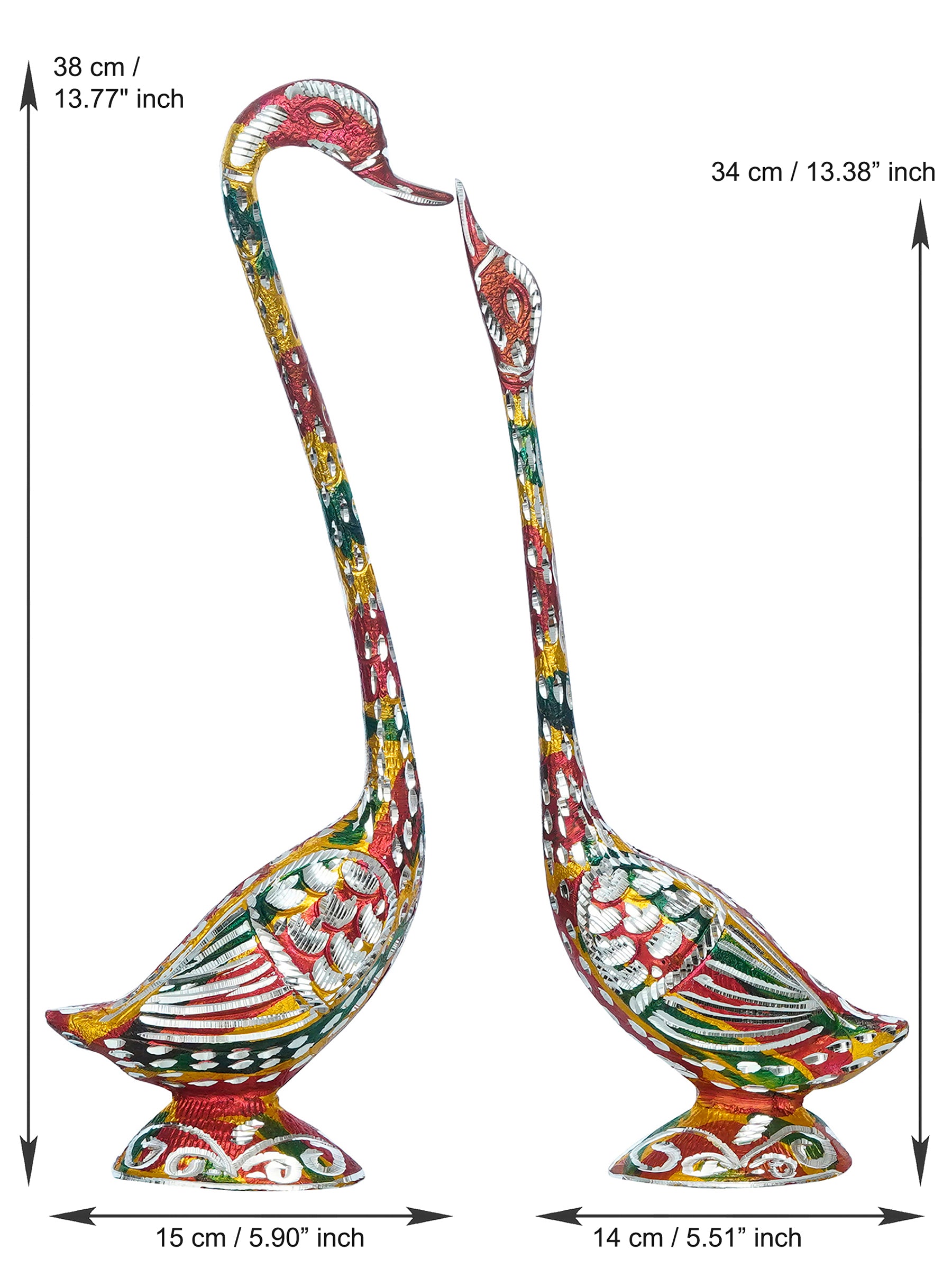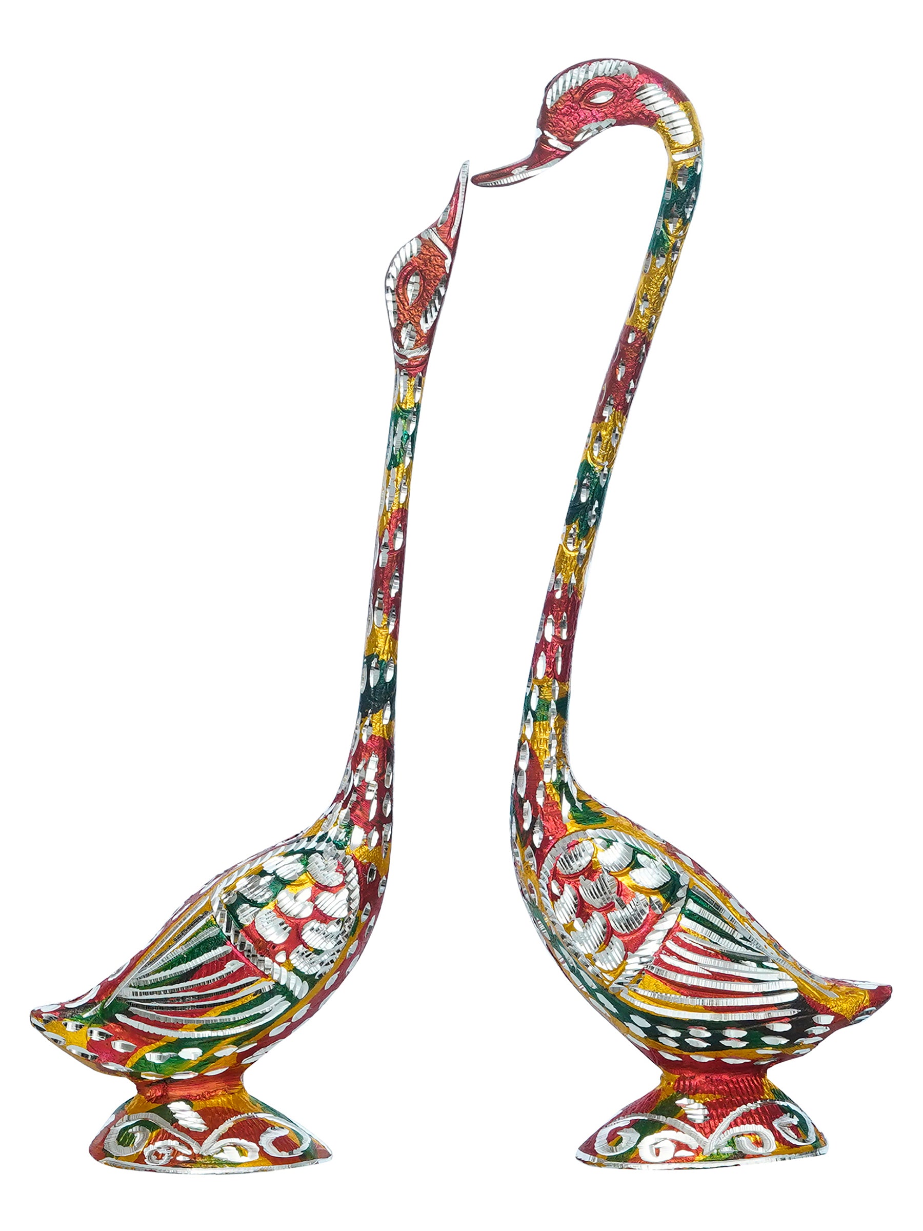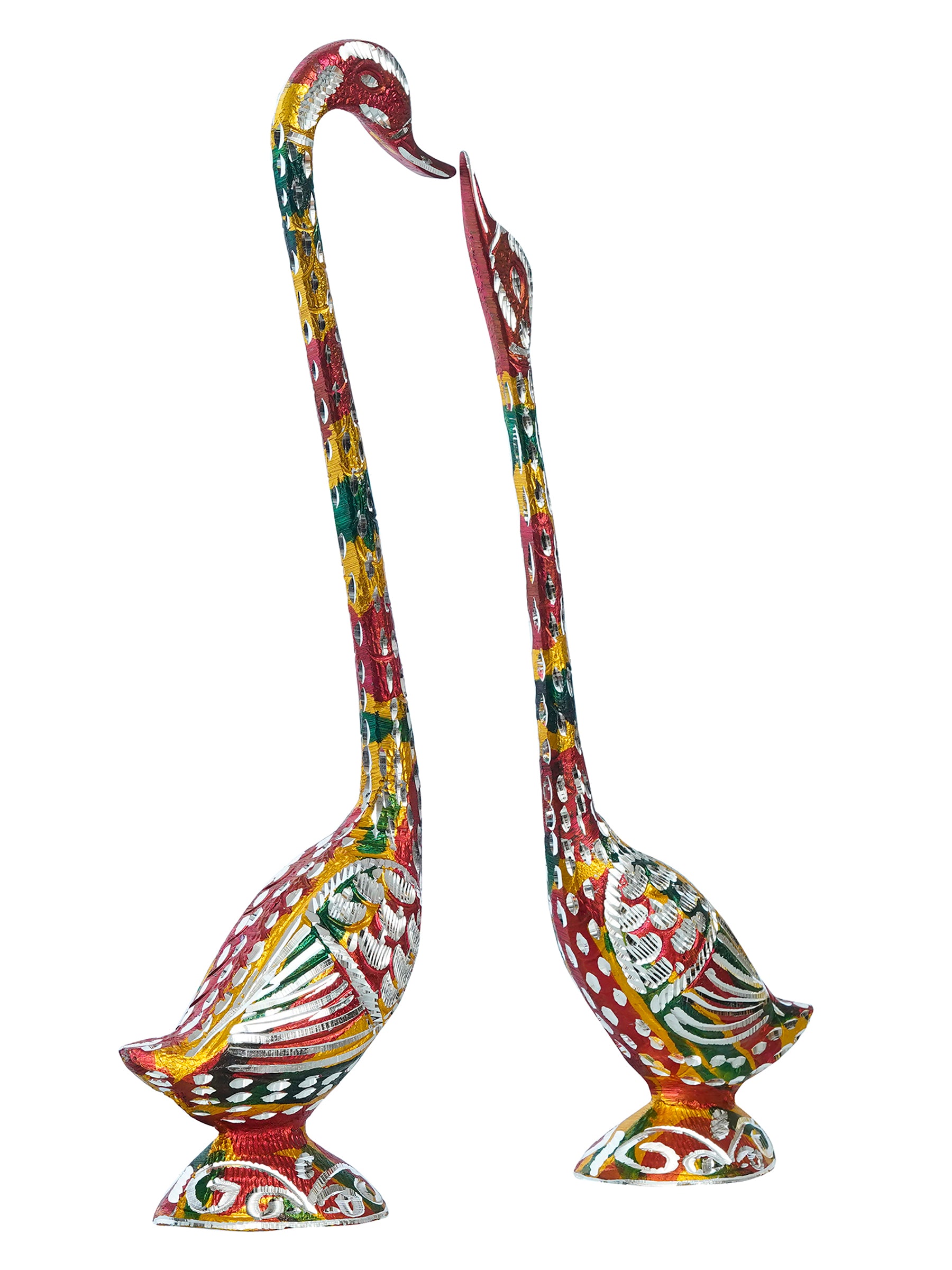 Product Description - Home decoration items have always enhanced your home space and still continue to do so. Our multicolor kissing swan couple figurine is a perfect match for your home interior if you have recently enhanced your home space or bought a new home. It is also a perfect gift for your friends and family and most appropriate for your newly wedded couple. This diligently handcrafted figurine is a showpiece made of metal using various inherited methods and also reflects the artistic value that it will add to your home decor.
