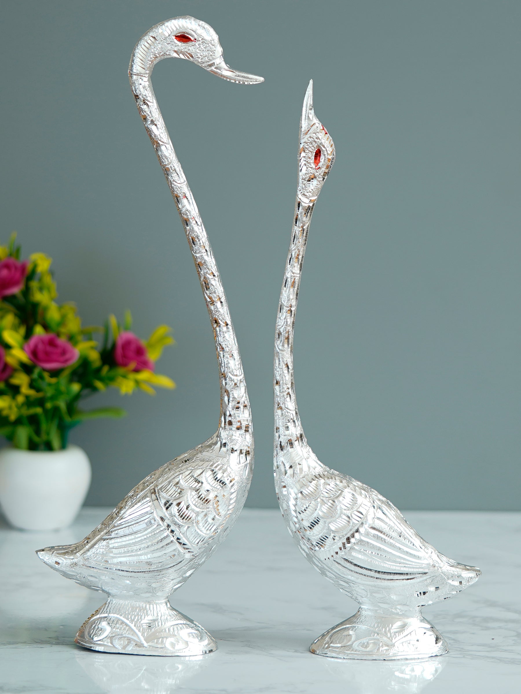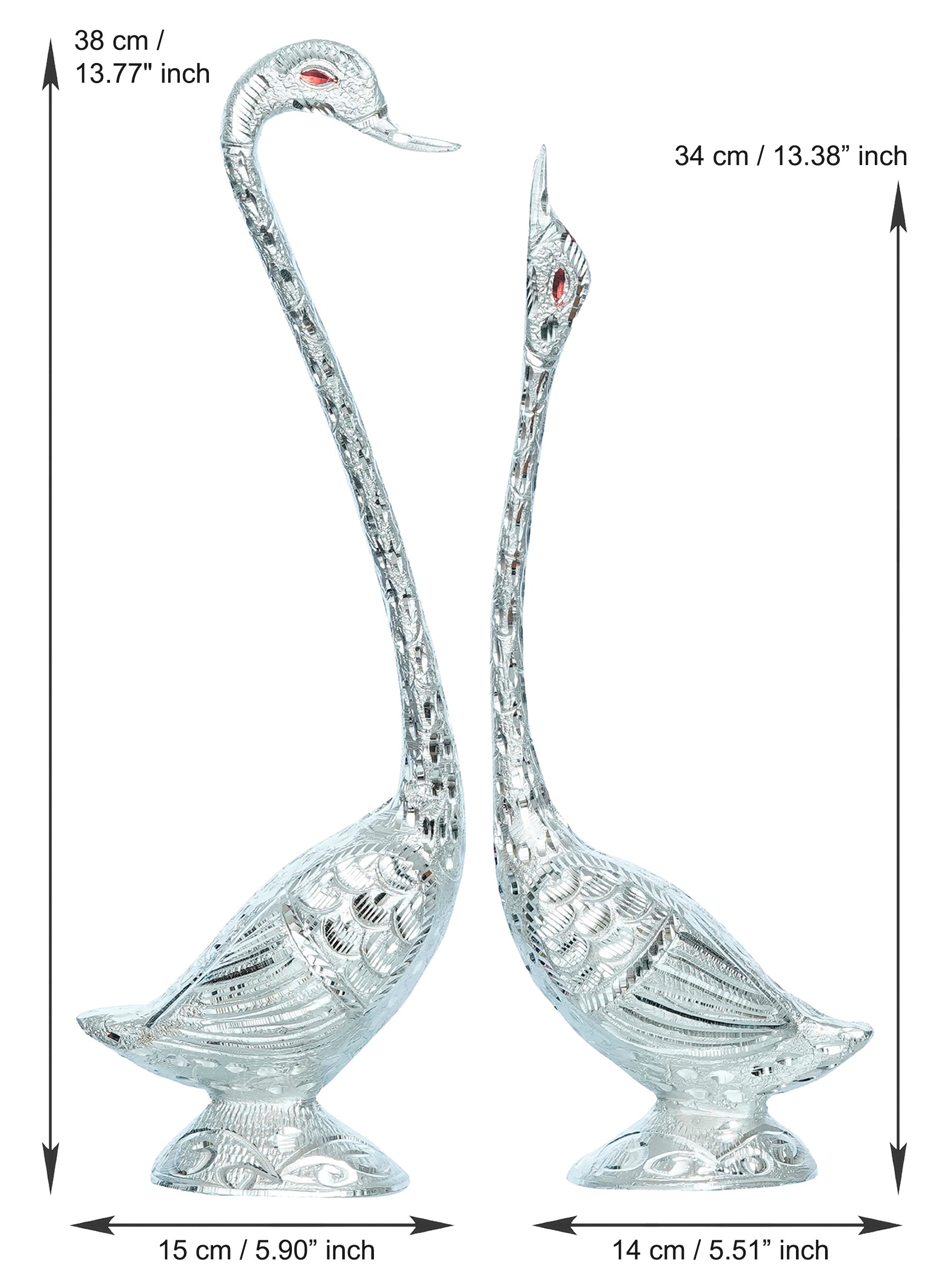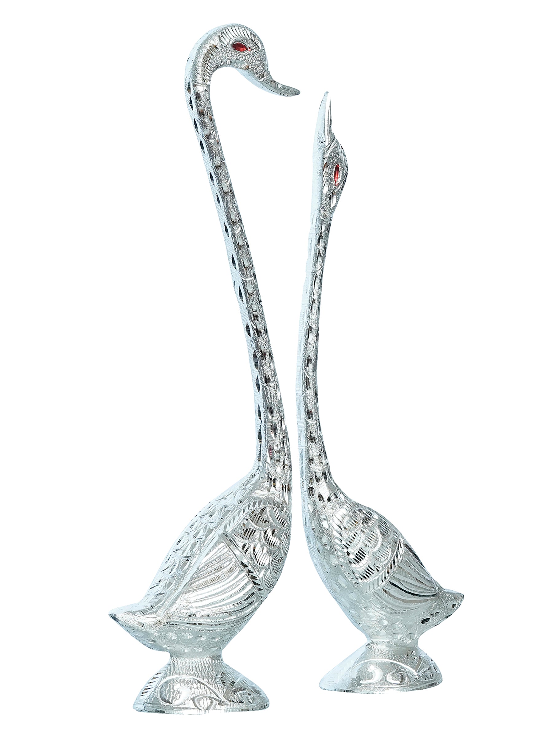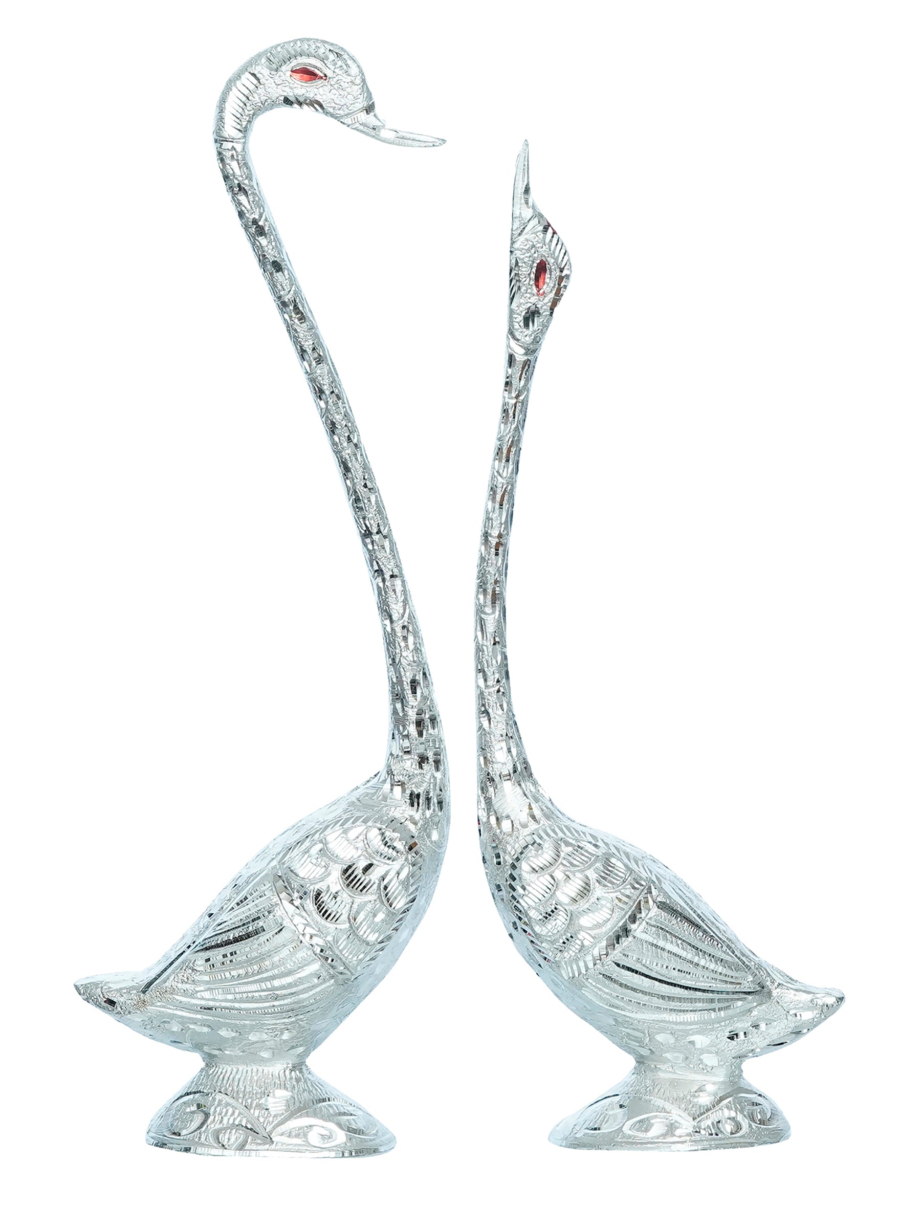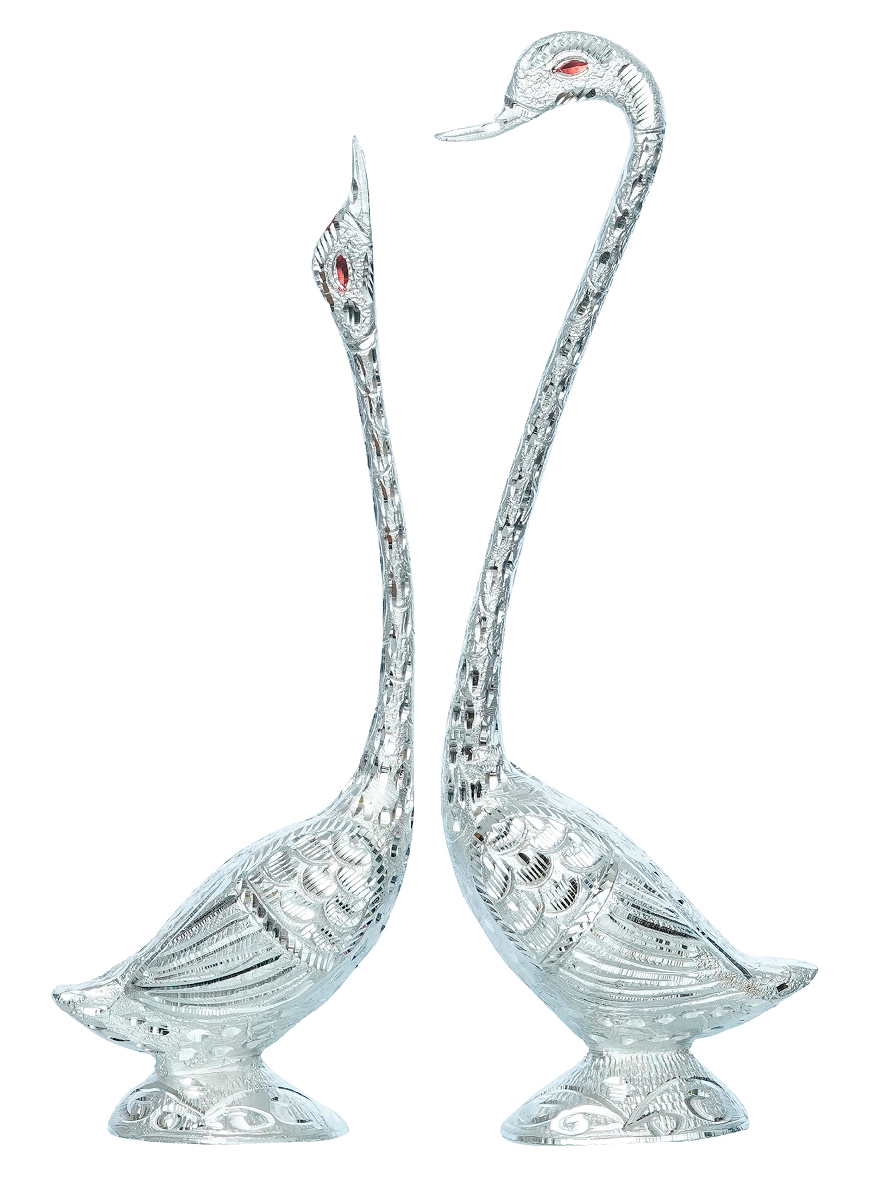 Product Description - Home decoration items have always enhanced your home space and still continue to do so. Our silver kissing swan couple showpiece is a perfect match for your home interior if you have recently enhanced your home space or bought a new home. It is also a perfect gift for your friends and family and most appropriate for your newly wedded couple. This diligently handcrafted figurine is a showpiece made of metal using various inherited methods and also reflects the artistic value that it will add to your home decor.