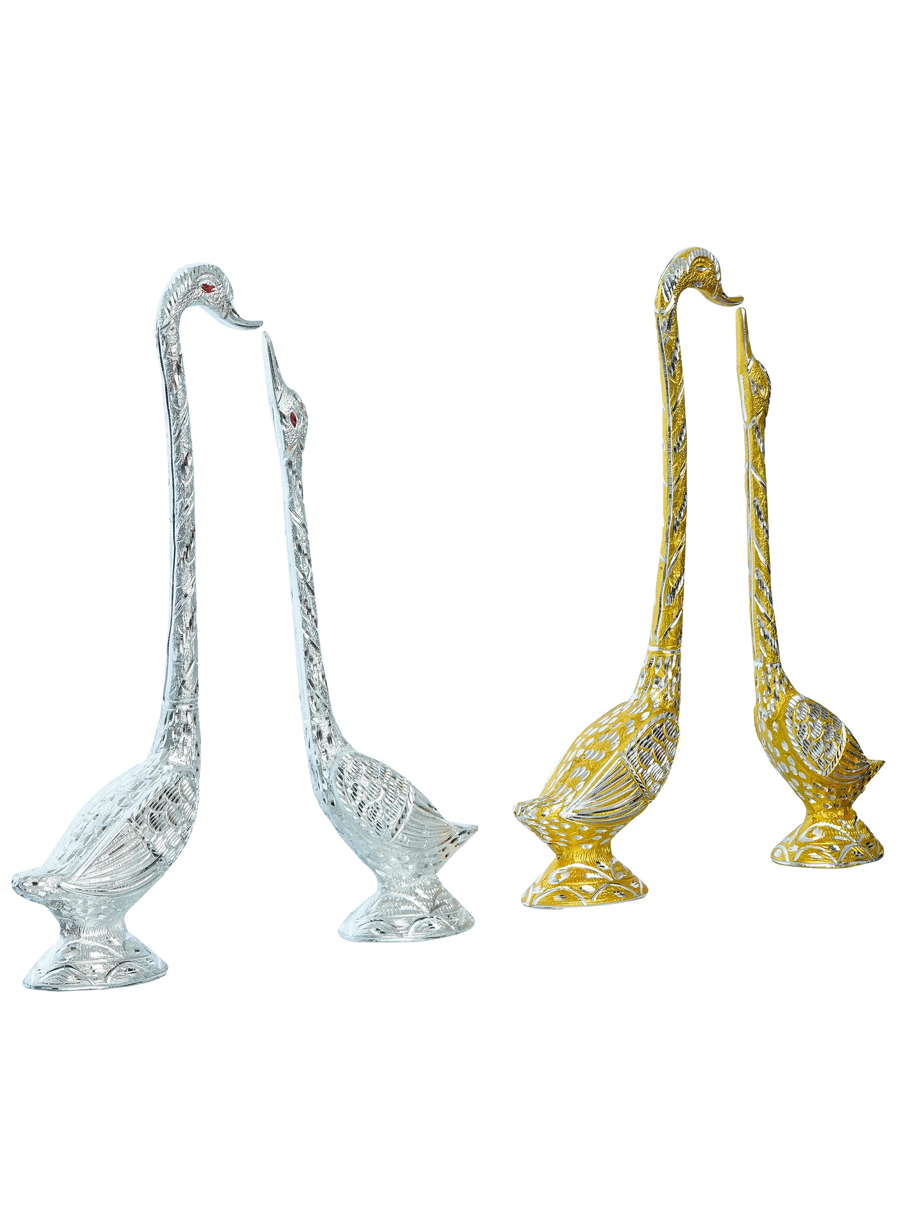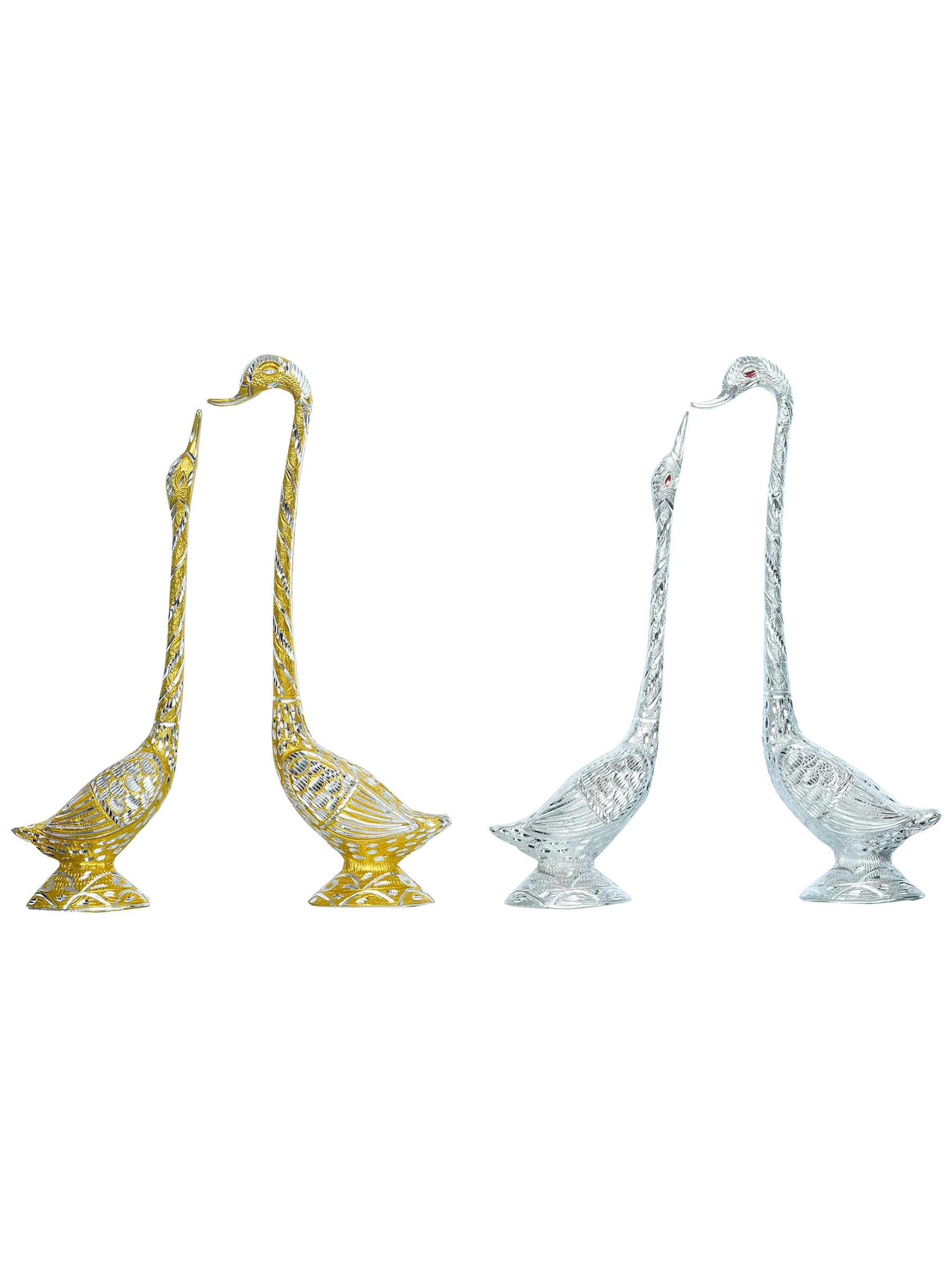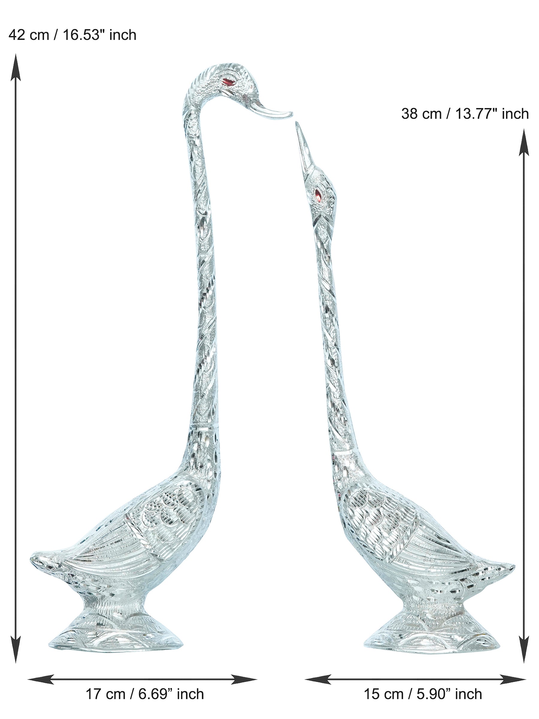 Product Description - Cuteness at its peak! eCraftIndia Set of Two 16.5 Inch Silver Kissing Swan Couple Handcrafted Decorative Figurine depicts their tremendous love for each other. Every act of birds seems cute but these are something more than that. You may have not seen the cute pose of birds kissing in real but our artisans at eCraftIndia have made those lovely eye catching moments here! This showpiece depicts love birds expressing their love just like humans do. It serves as a great gift, especially to newly married couples and collegues. This handicraft has been made by skilled artisans from the house of eCraftIndia using various traditional techniques.