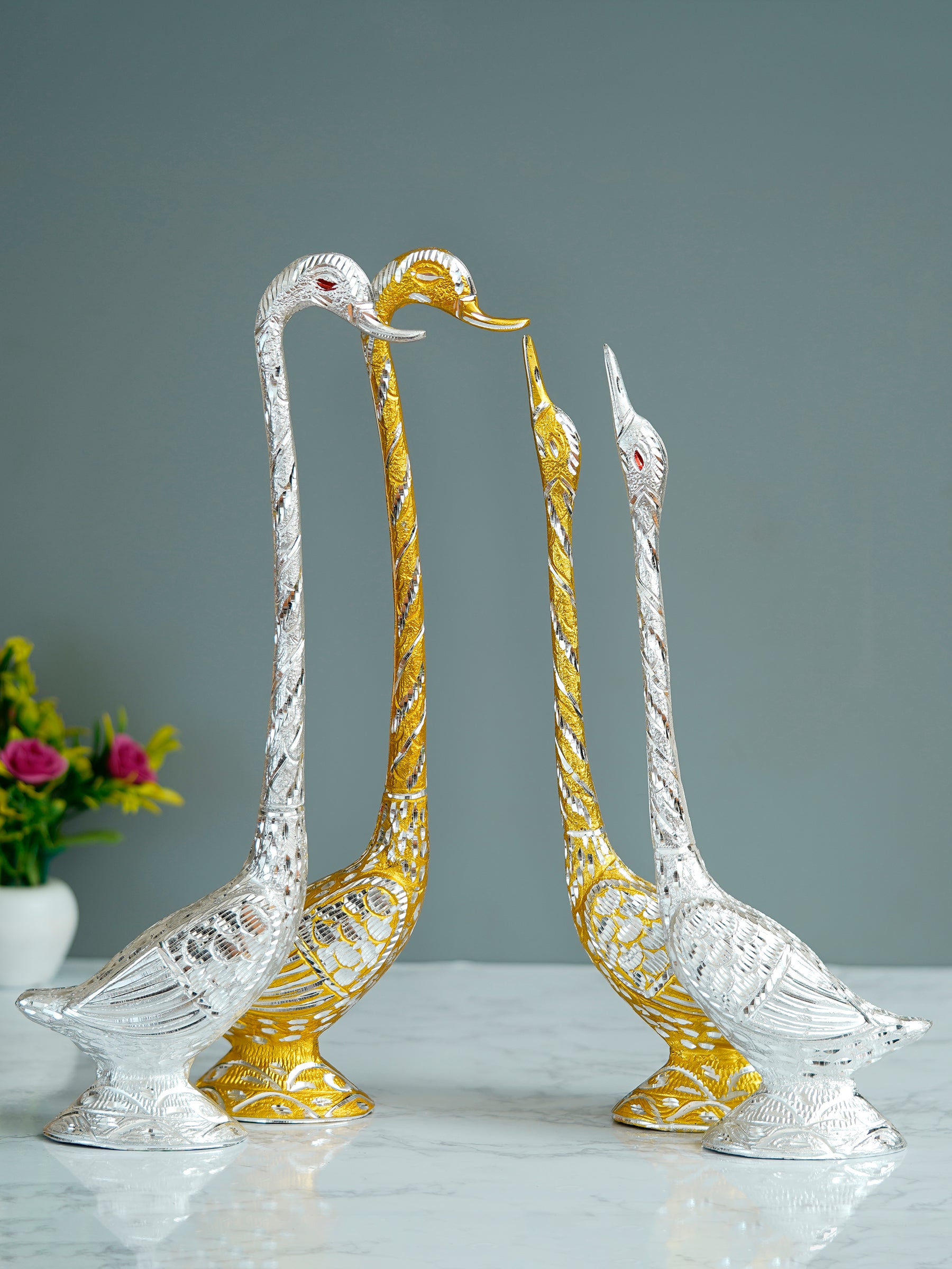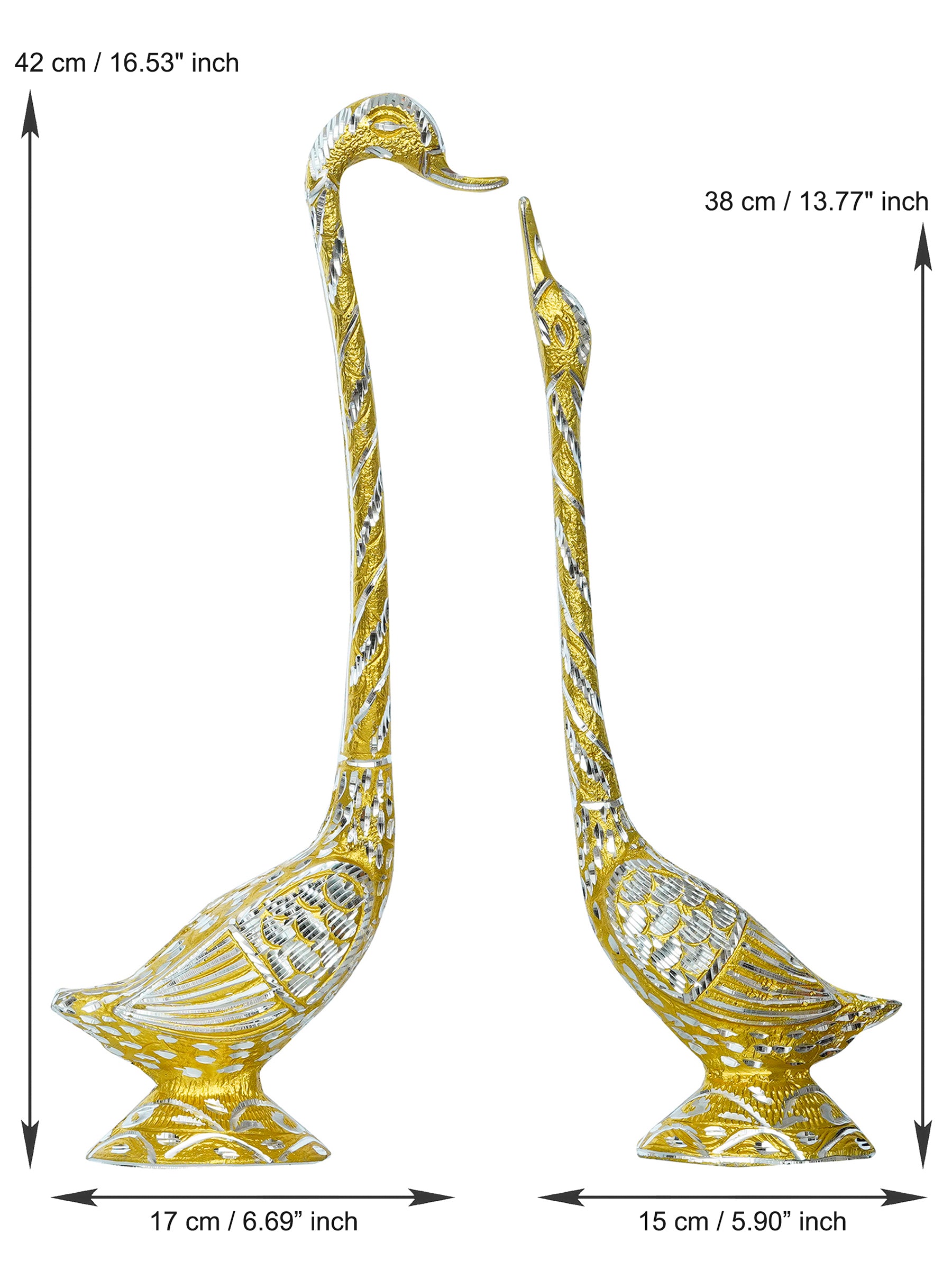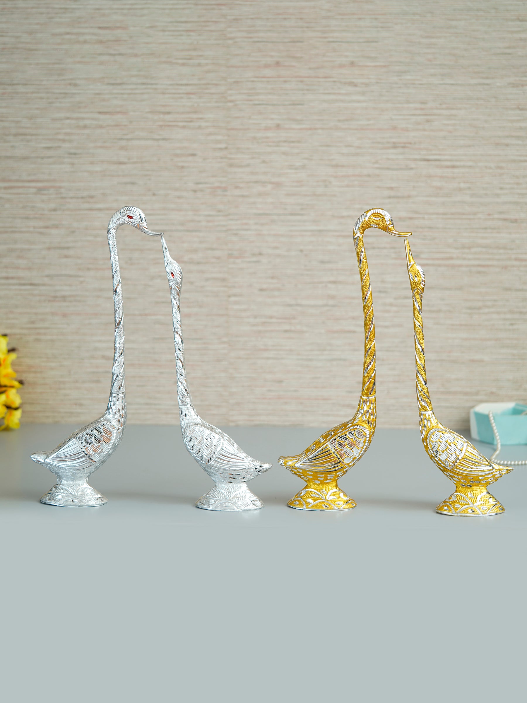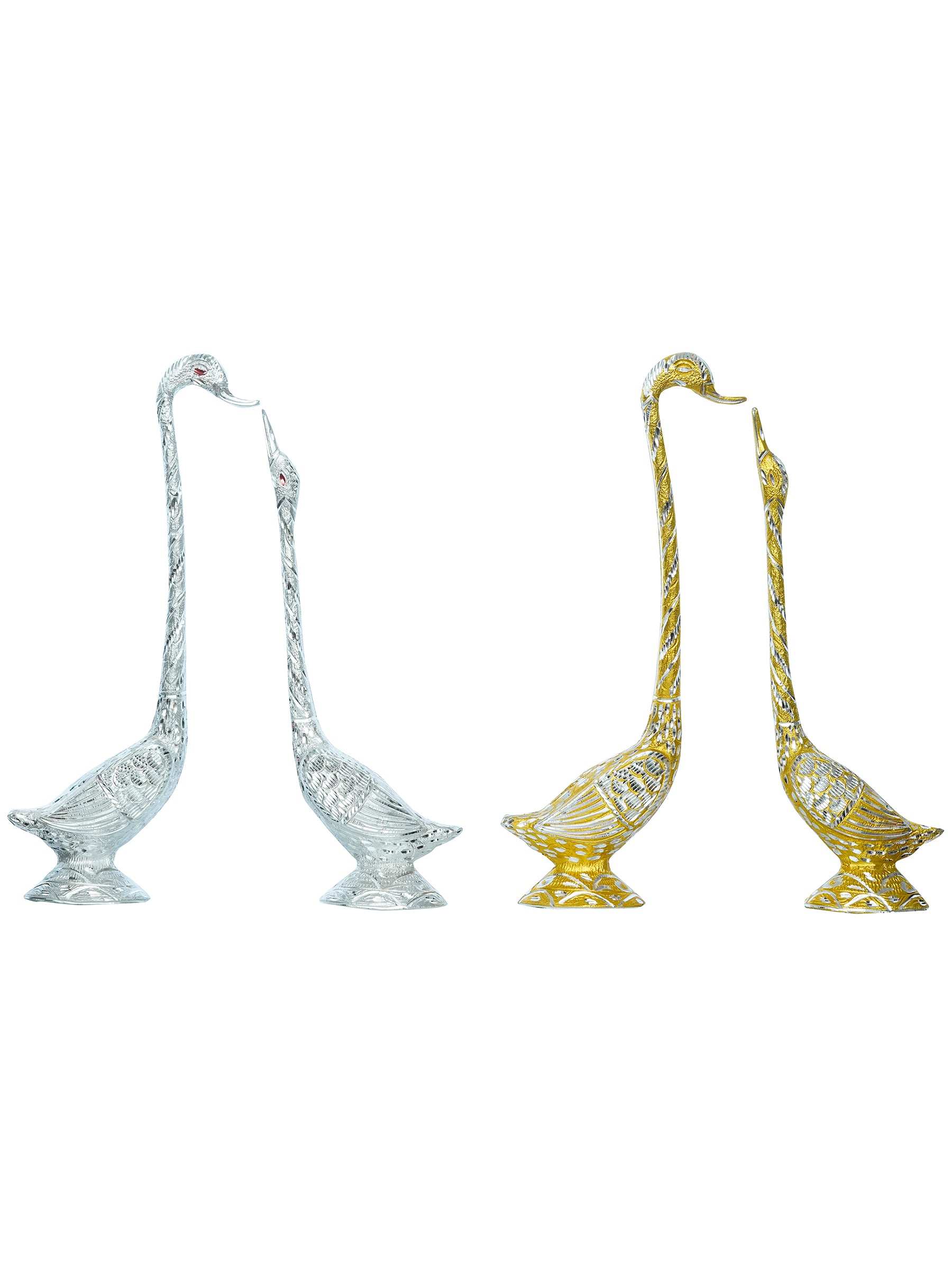 Product Description - Cuteness at its peak! eCraftIndia Set of Two 16.5 Inch Silver Kissing Swan Couple Handcrafted Decorative Figurine depicts their tremendous love for each other. Every act of birds seems cute but these are something more than that. You may have not seen the cute pose of birds kissing in real but our artisans at eCraftIndia have made those lovely eye catching moments here! This showpiece depicts love birds expressing their love just like humans do. It serves as a great gift, especially to newly married couples and collegues. This handicraft has been made by skilled artisans from the house of eCraftIndia using various traditional techniques.