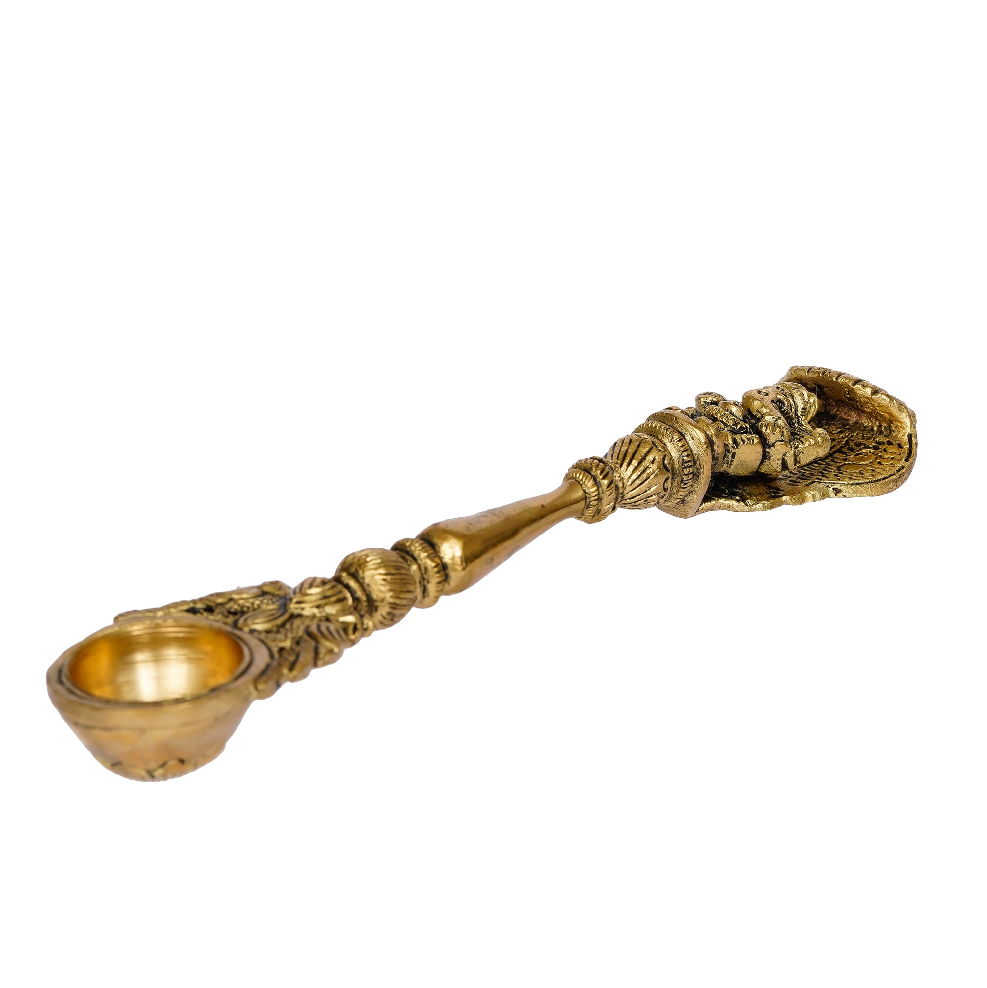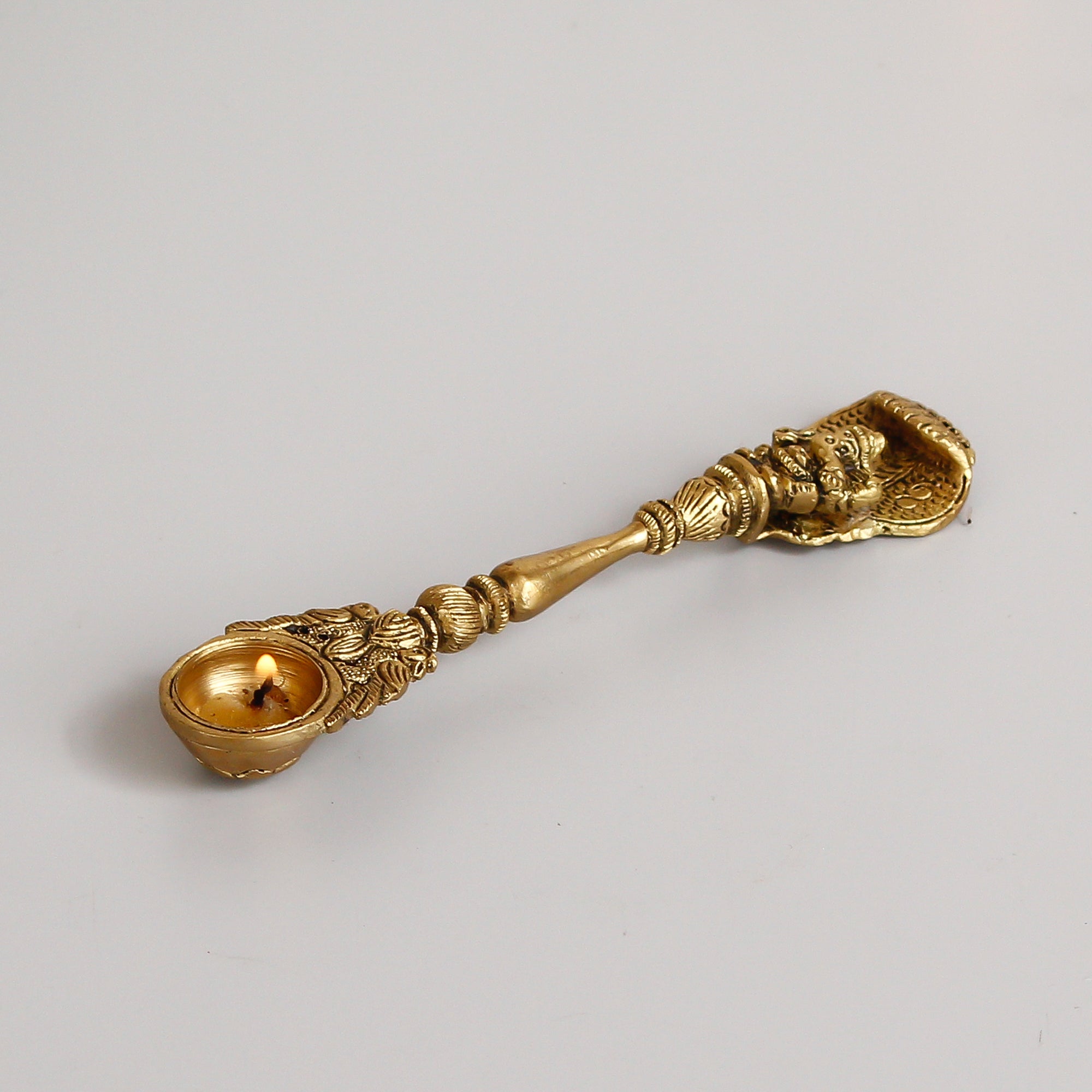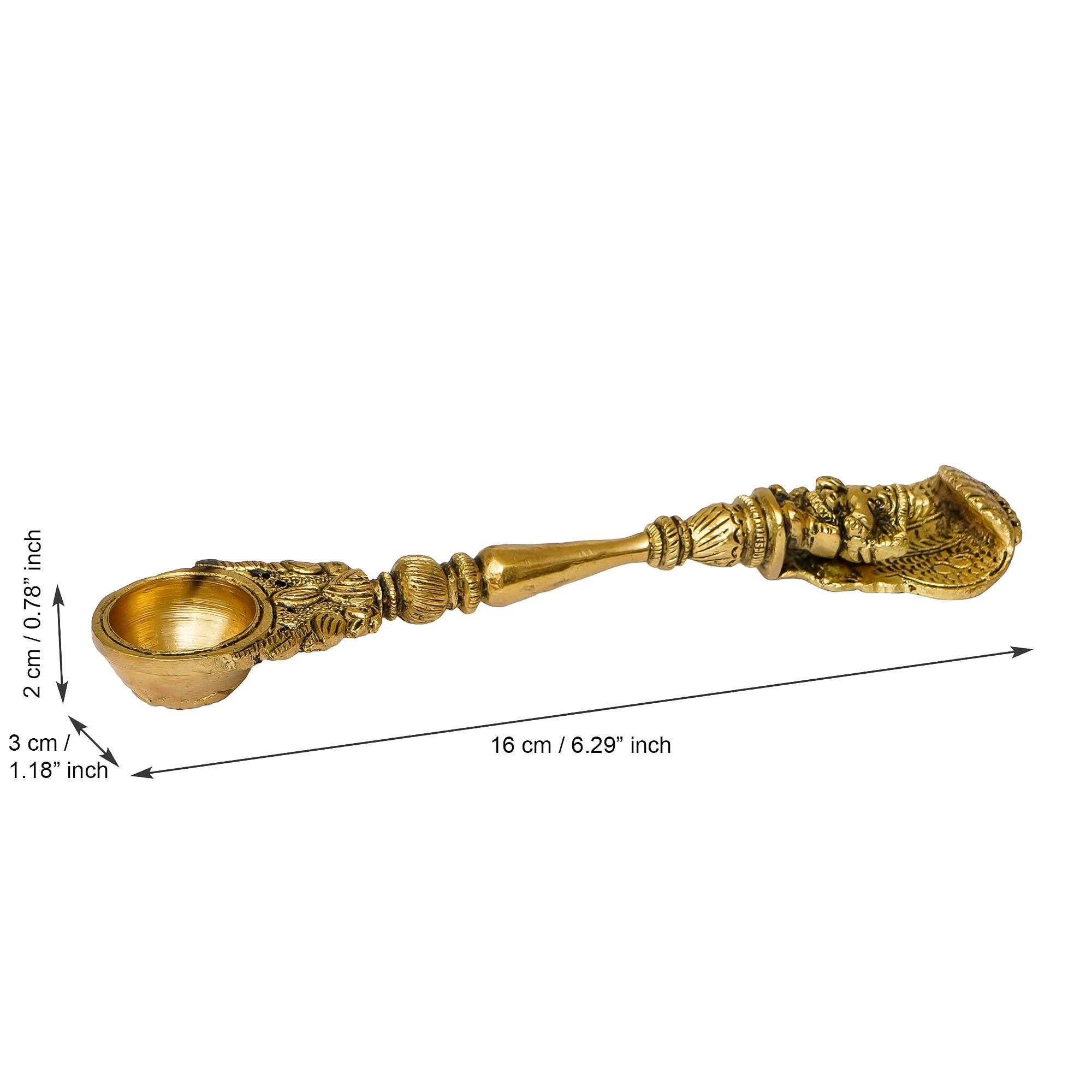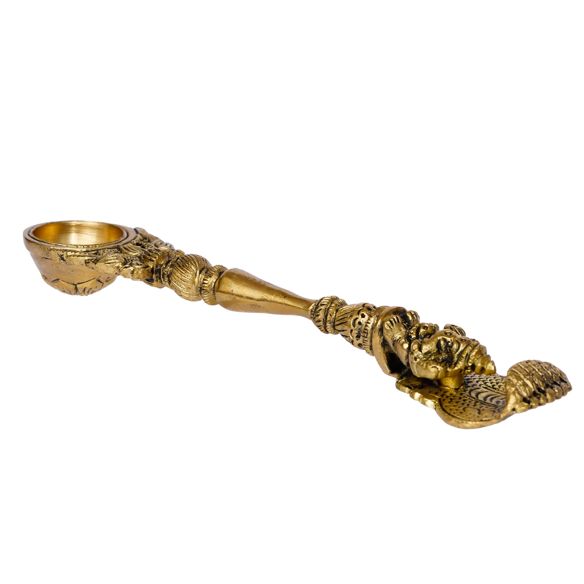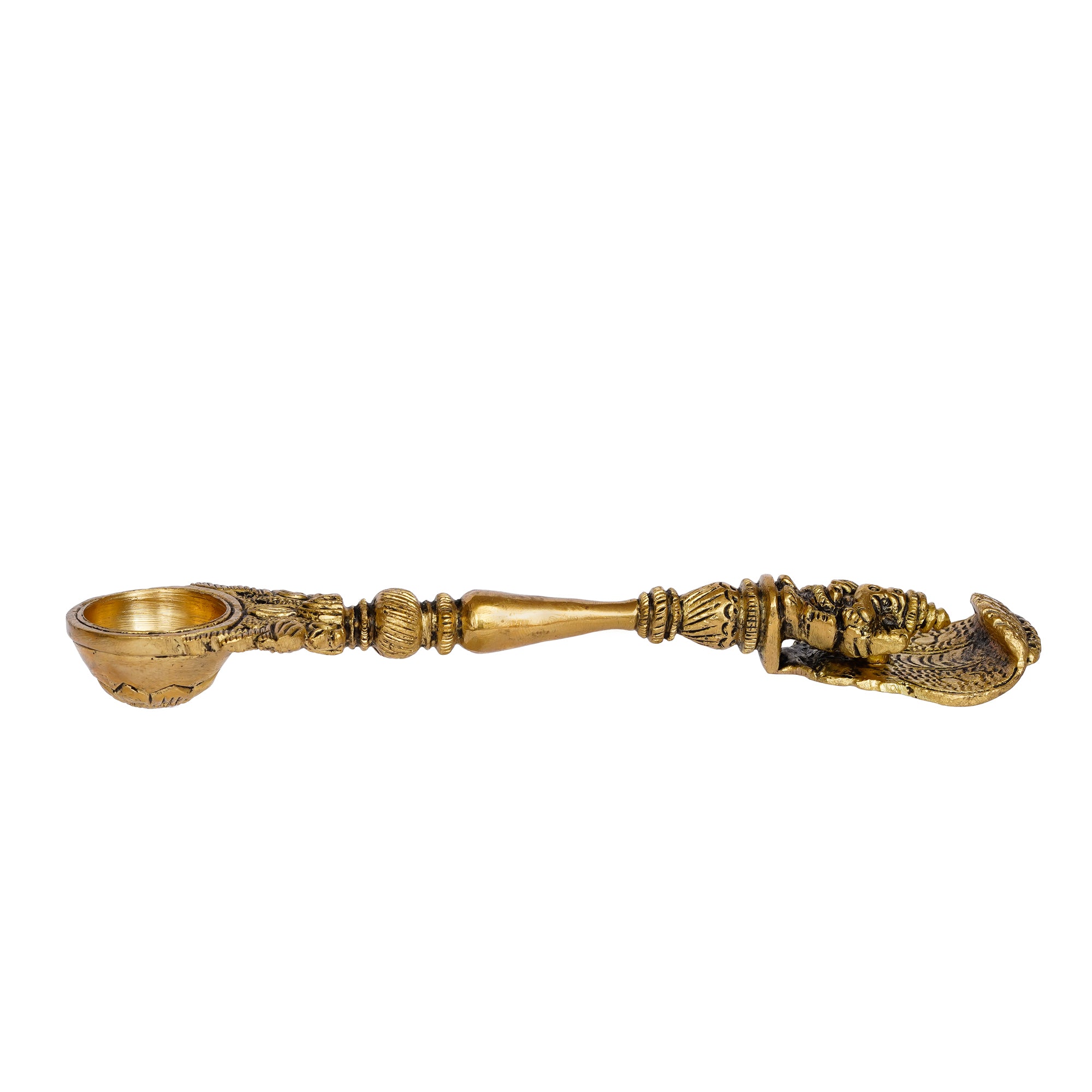 Package Content - One Ethnic Carved Brass Long Stick Diya with 1 Wick for Pooja Room and Temple