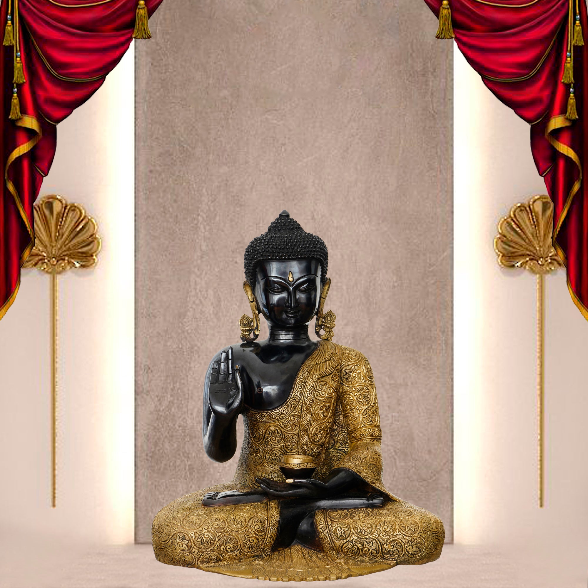 Package Content - One Peaceful Meditating Golden and Black Lord Buddha Handcrafted Premium Brass Idol