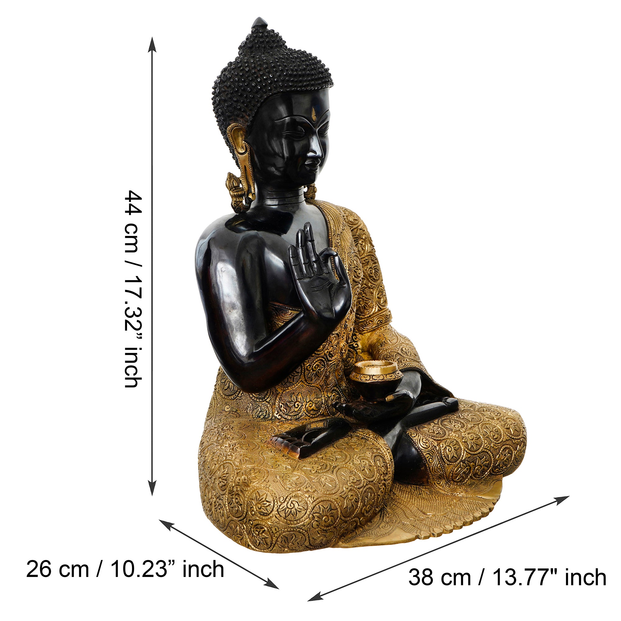 Product Description - Everyone wants perfect peace of mind that's free from ignorance, greed, hatred, and other afflictive states. Buddha has always been a great symbol of peace. So, Gautam Buddha has long been regarded as a symbol of peace – there are people who will tell you that just looking at an image of him renders a sense of peace and calm. If you too are looking to bring home that sense of peace and calm, you will want to consider this particular Buddha décor piece. At eCraftIndia, you can discover our Golden & Black Brass Peaceful Meditating Lord Buddha Statue. Carved out of high-quality brass, this décor piece showcases Buddha meditating. This artifact shows off the talent of local artisans and is sure to capture a lot of attention. These idols also stand as a great gifting option for friends & family.
