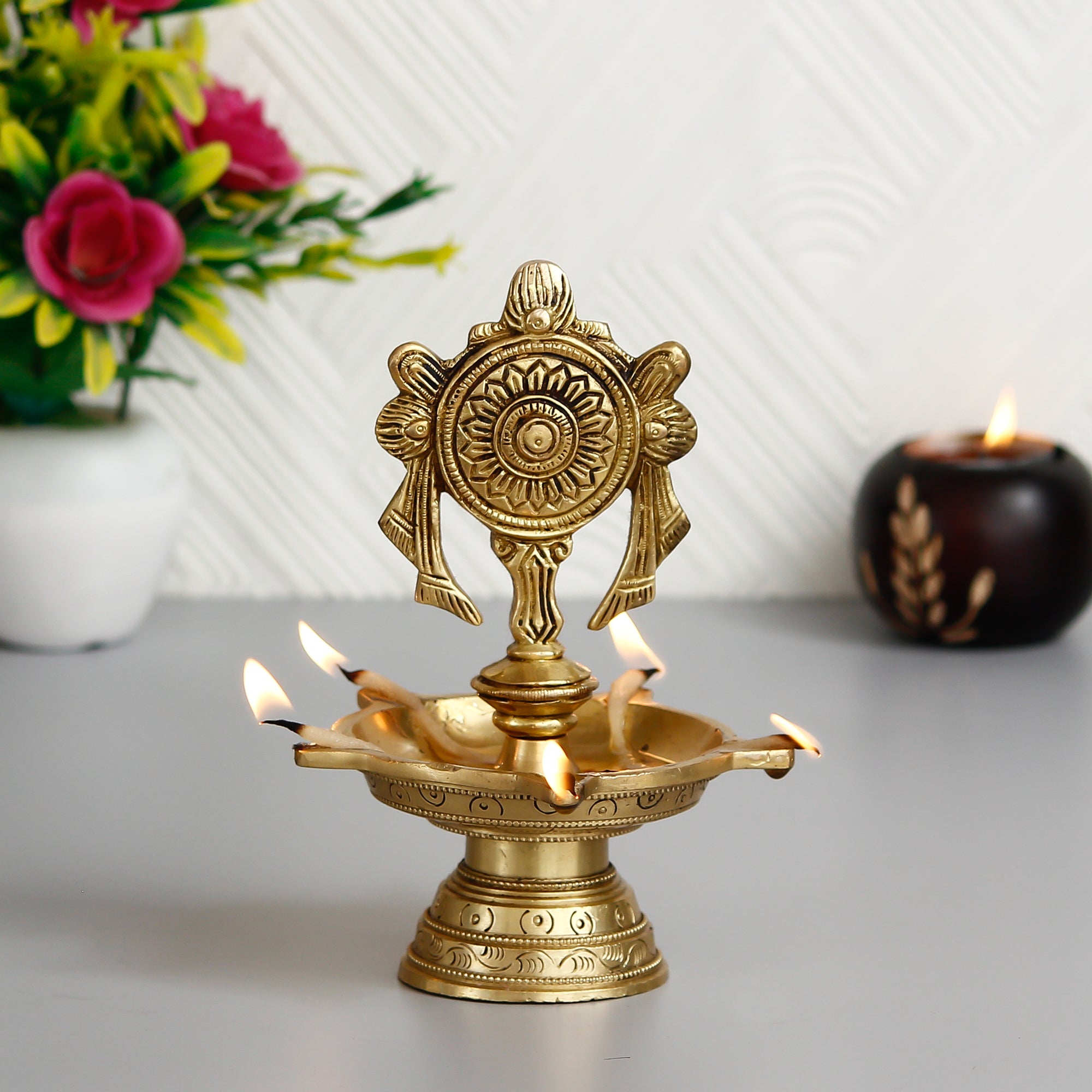 Package Content - One Chakra Handcrafted Brass Diya with 5 wicks