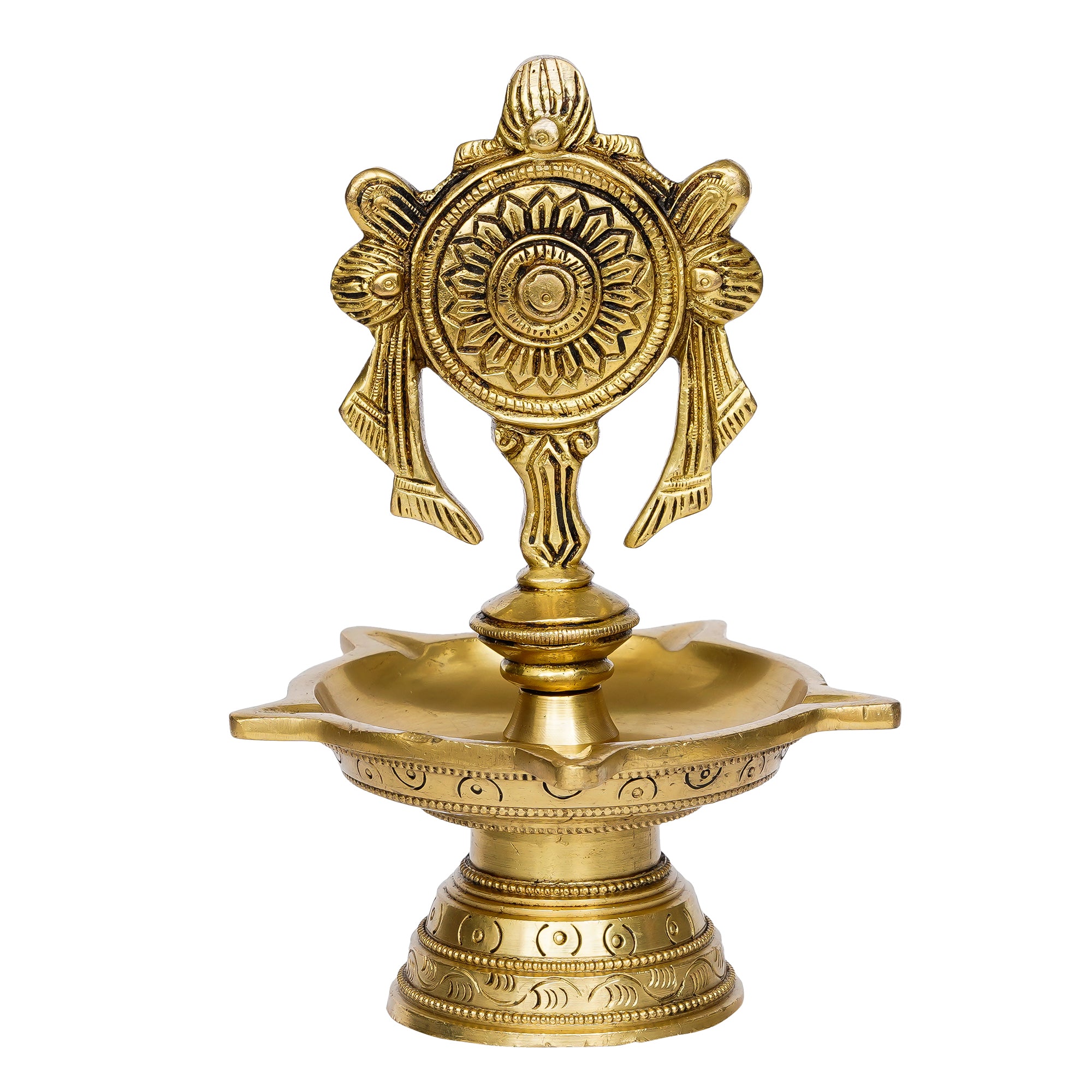 Product Description - Give royal touch to your home decor with eCraftIndia Chakra Handcrafted Brass Diya with 5 wicks. Featuring an excellent finish, this diya looks extremely classy and elegant. This royal piece of art simply shows that how can a simple work of art turns into a master piece of craftsmanship. It can also serve as a great gifting option for your loved ones, family and friends. This statue has been diligently handcrafted by skilled artisans of eCraftIndia using various conventional techniques.