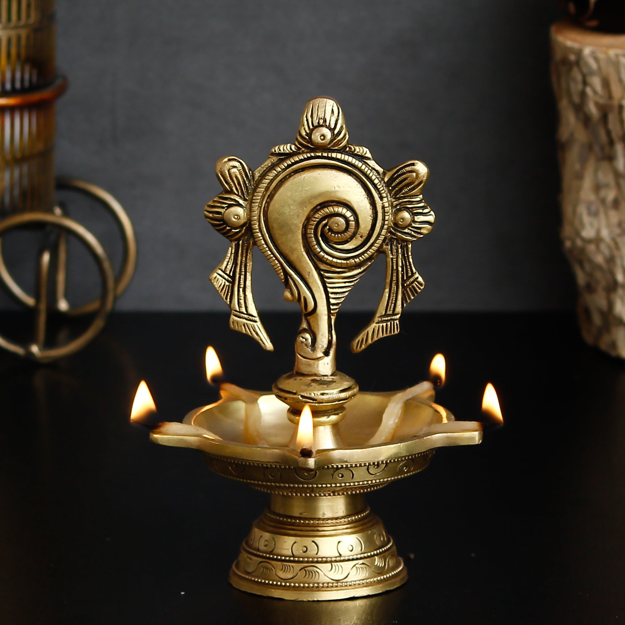 Package Content - One Shankha Handcrafted Brass Diya with 5 wicks