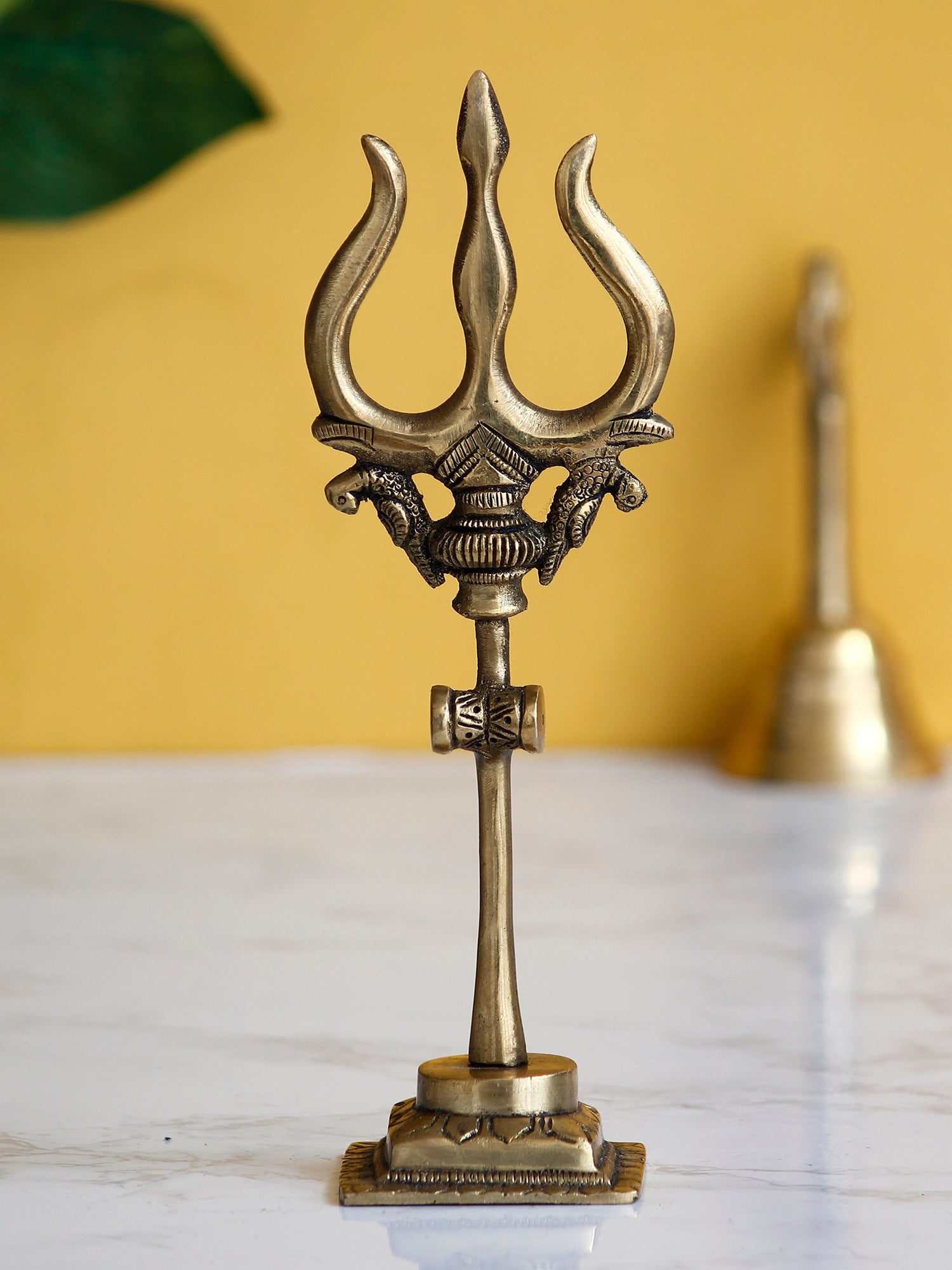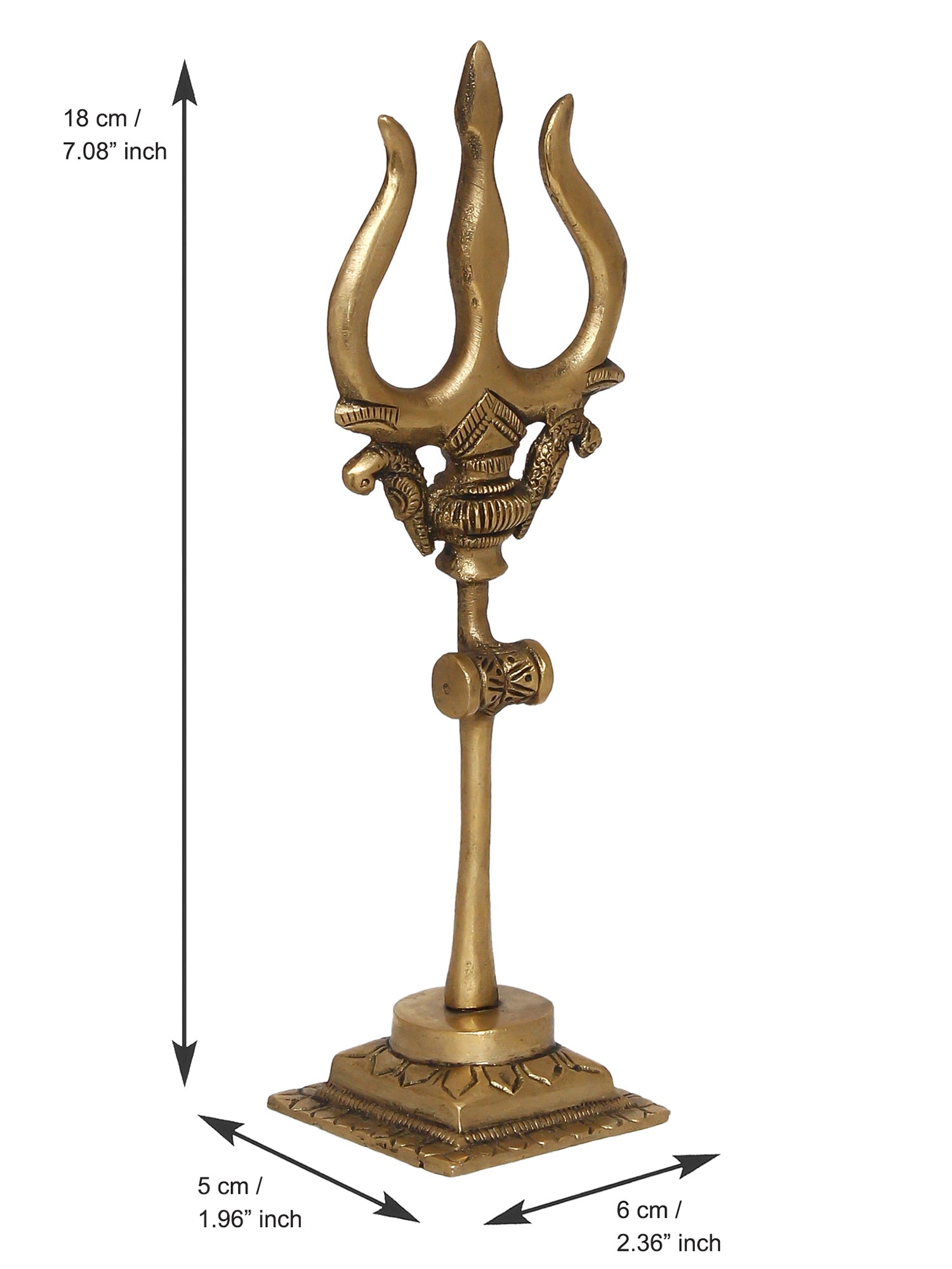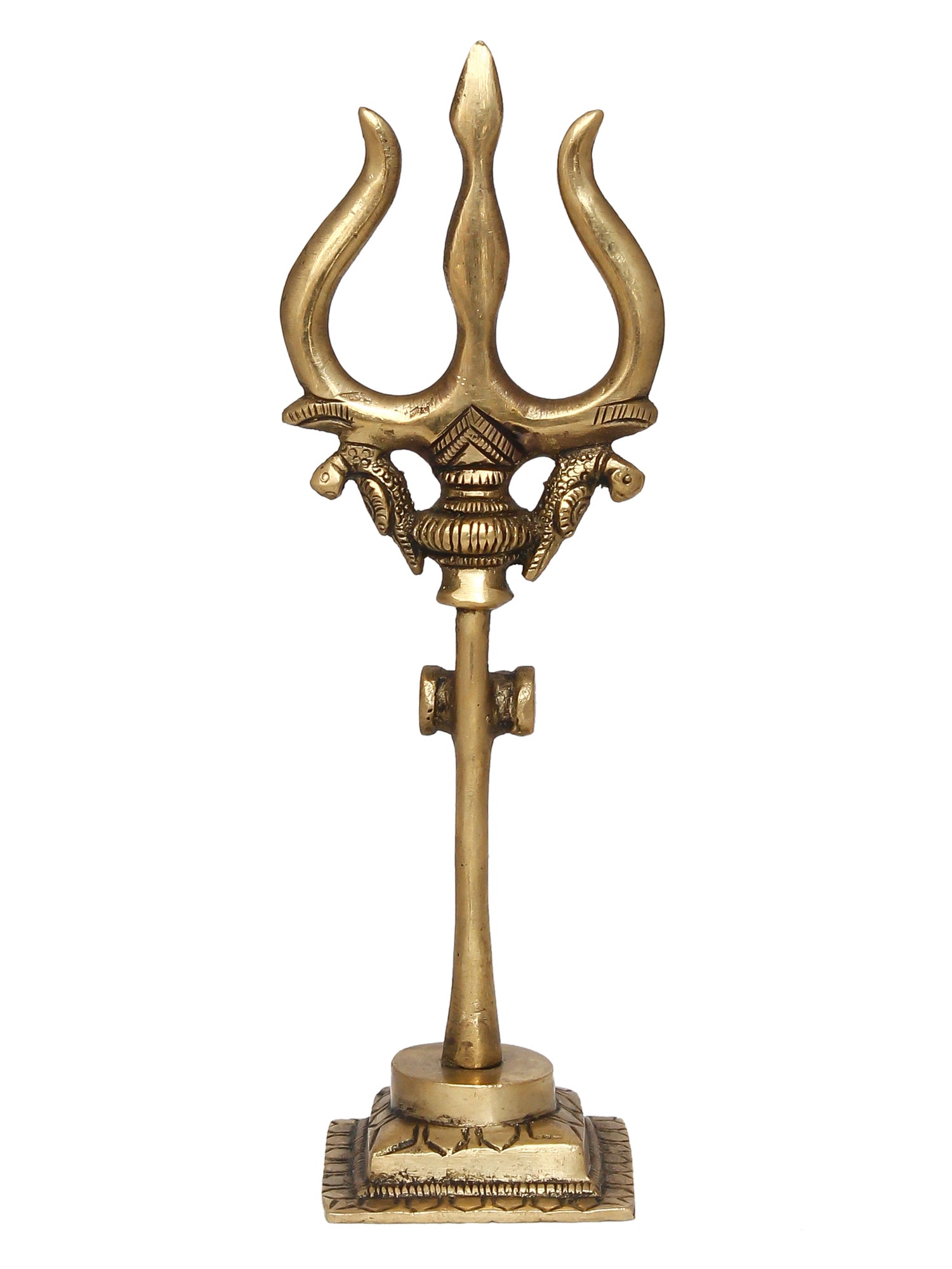 Product Description - Some are truly religious and some are deeply spiritual– it does not matter which category you belong to, our golden brass Trishul with Damru is sure to capture your attention. With only a Trishul and a damru attached to it, this is a handcrafted brass décor piece that will work not only for your home and personal space but also for your office. When you look at this Trishul, you will be reminded of the power of Lord Shiva, but in a more abstract form. This is also a nice gift for friends and family members and makes for a wonderful festival gift too. This showpiece is handcrafted intricately by our skilled artisans. You can find many more god idols and figurines in different avatars on our online portal in various colors that suit your home or office interior.