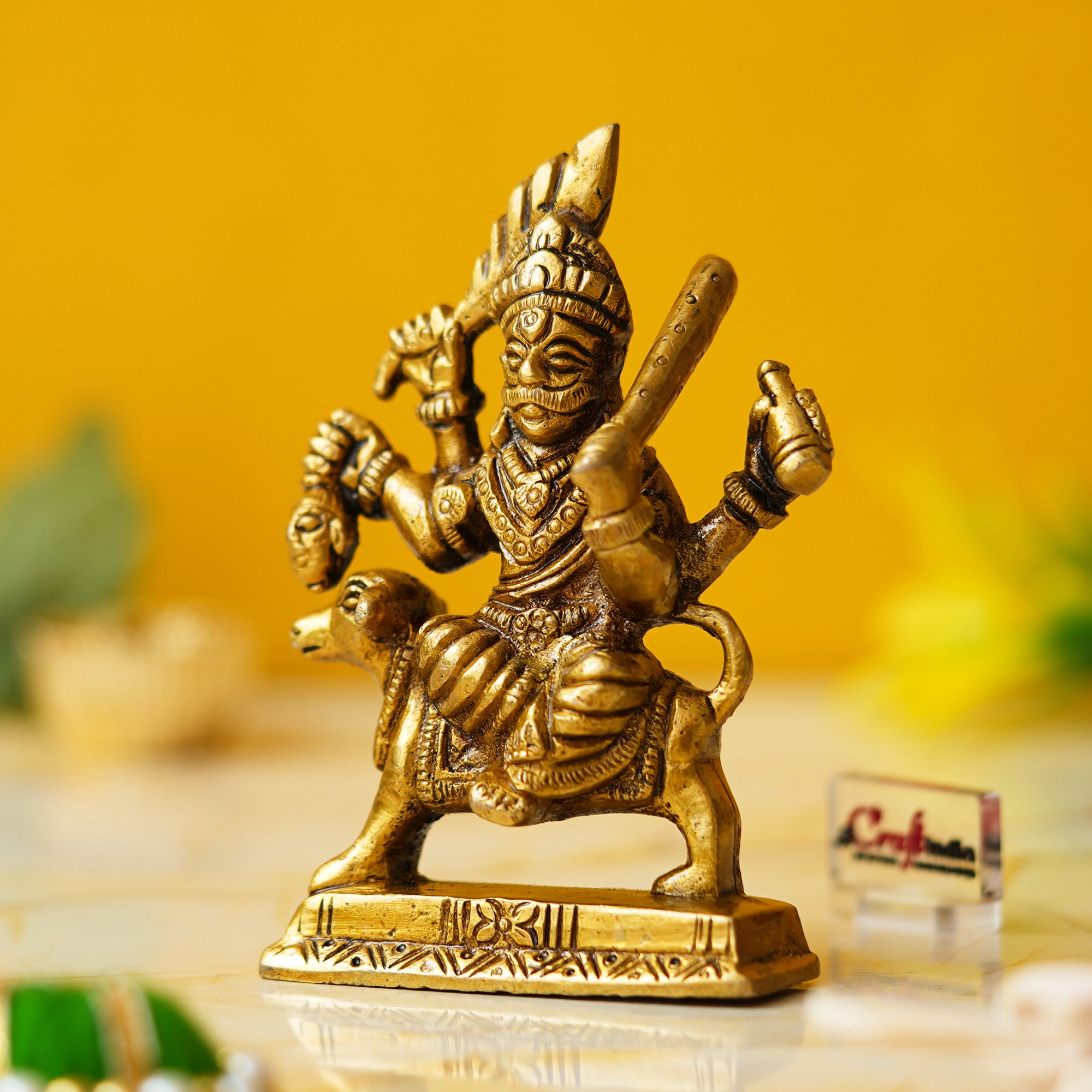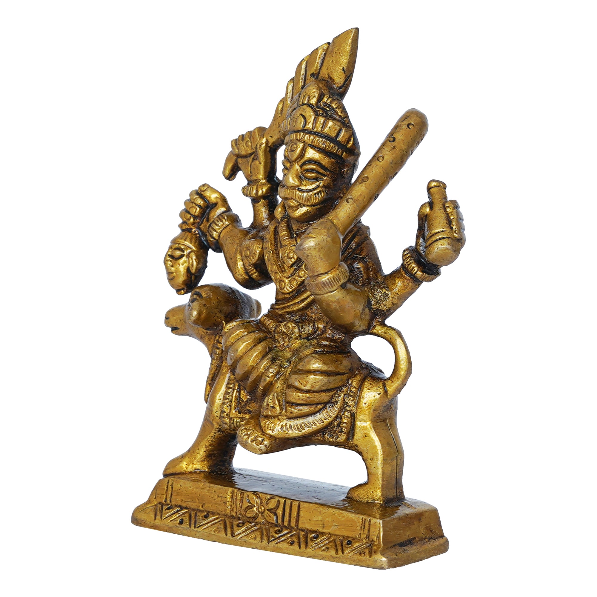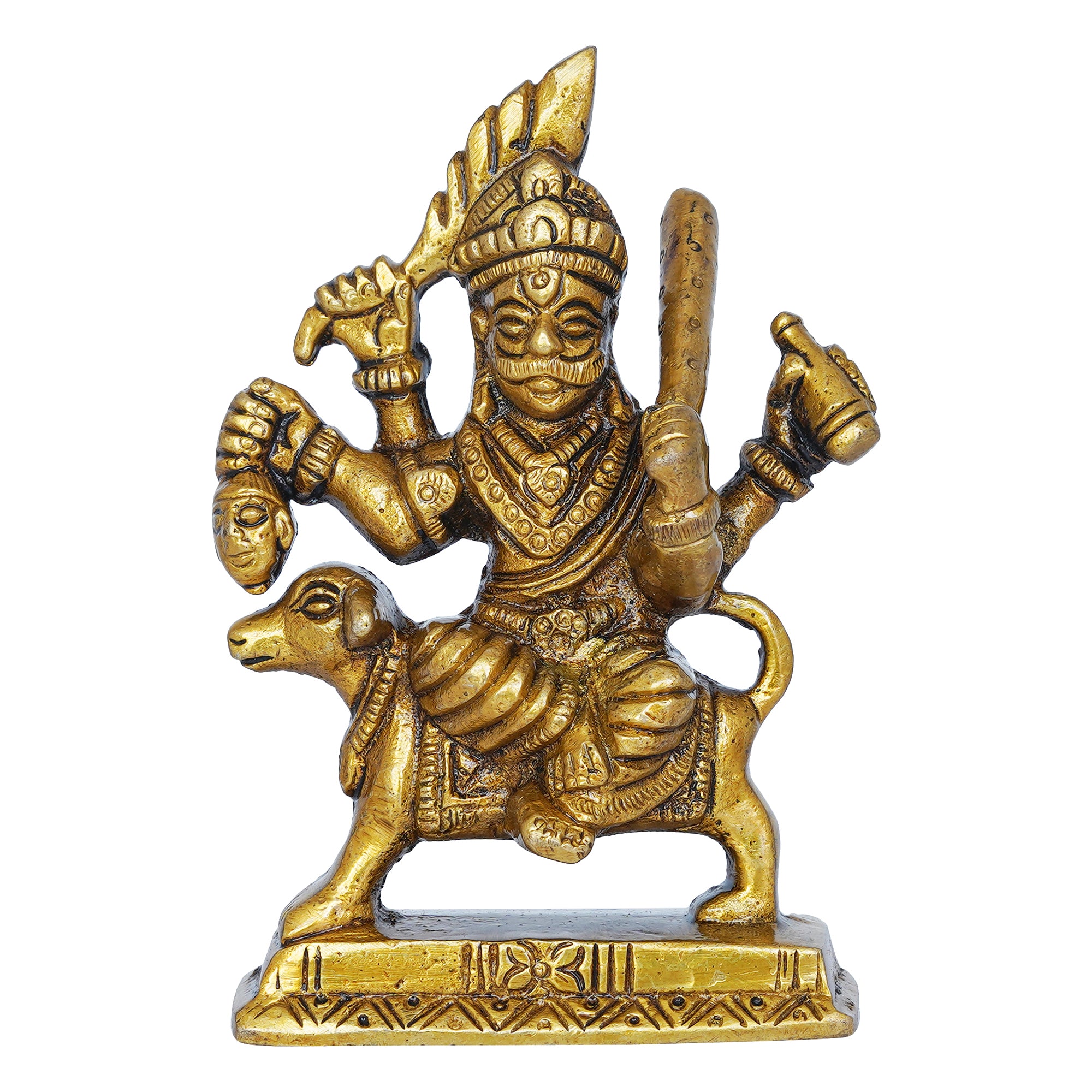 Package Content - One Golden Brass Bhairav Baba Murti Idol Statue for Home Pooja Mandir Temple