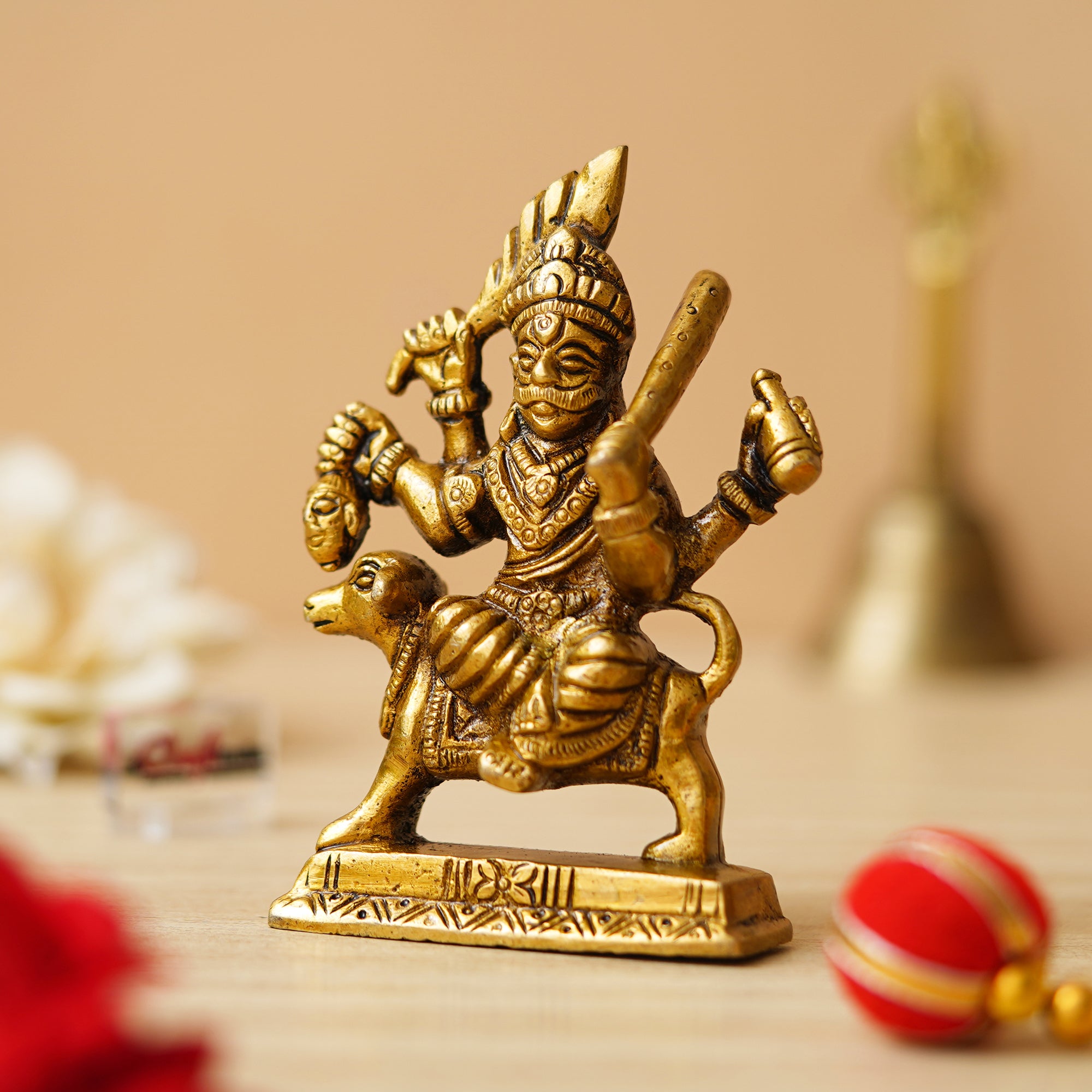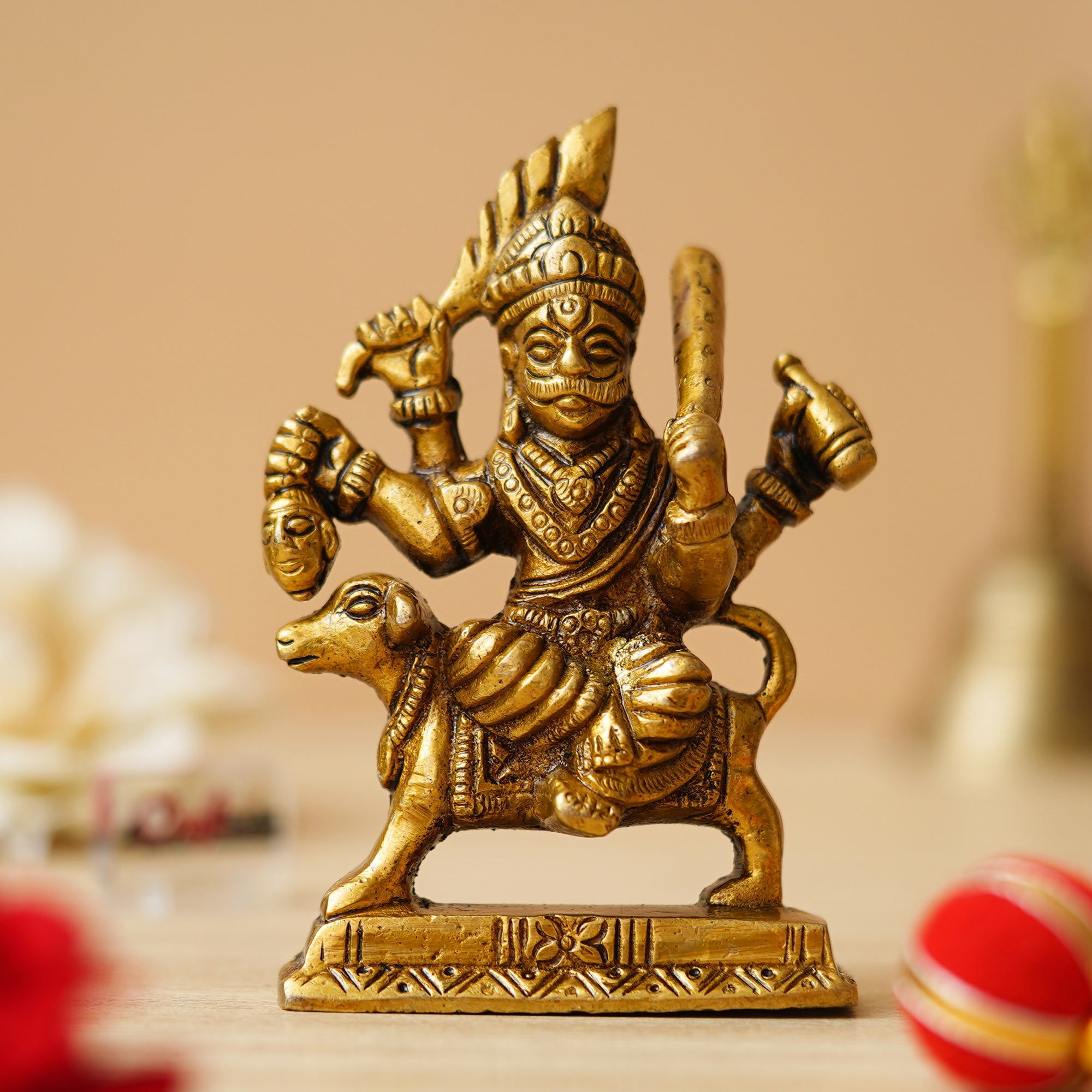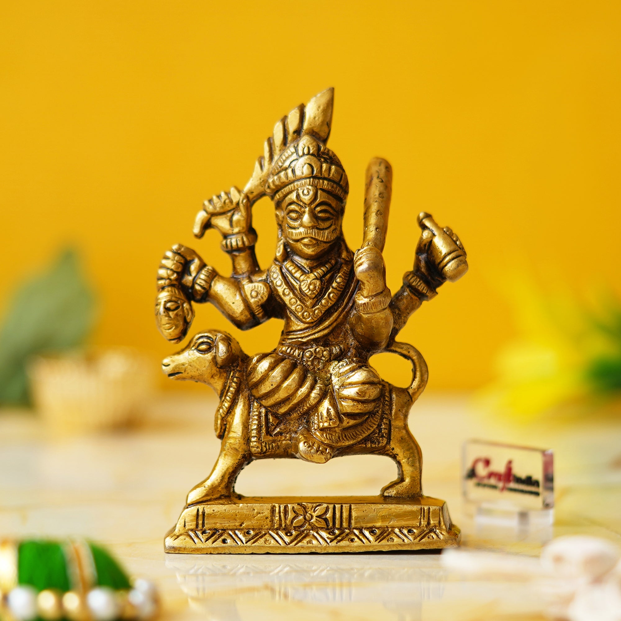 Package Content - One Golden Brass Bhairav Baba Murti Idol Statue for Home Pooja Mandir Temple