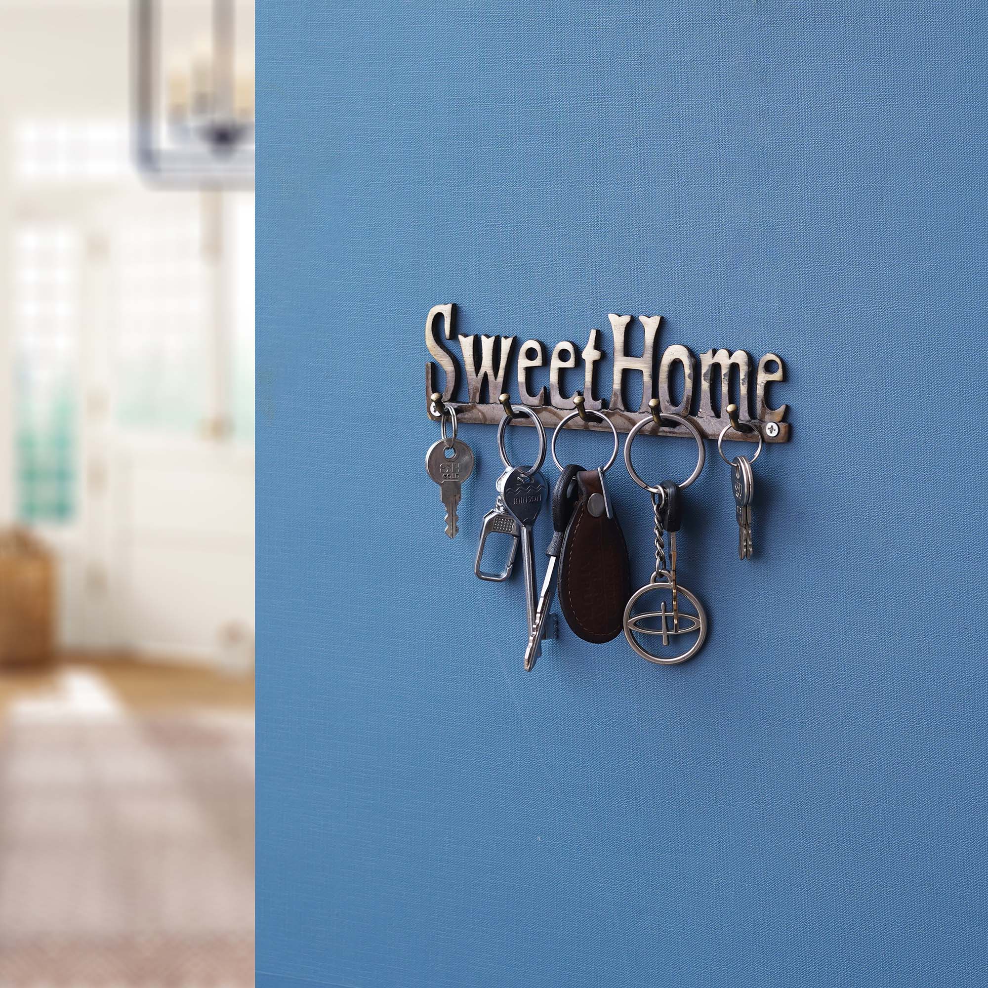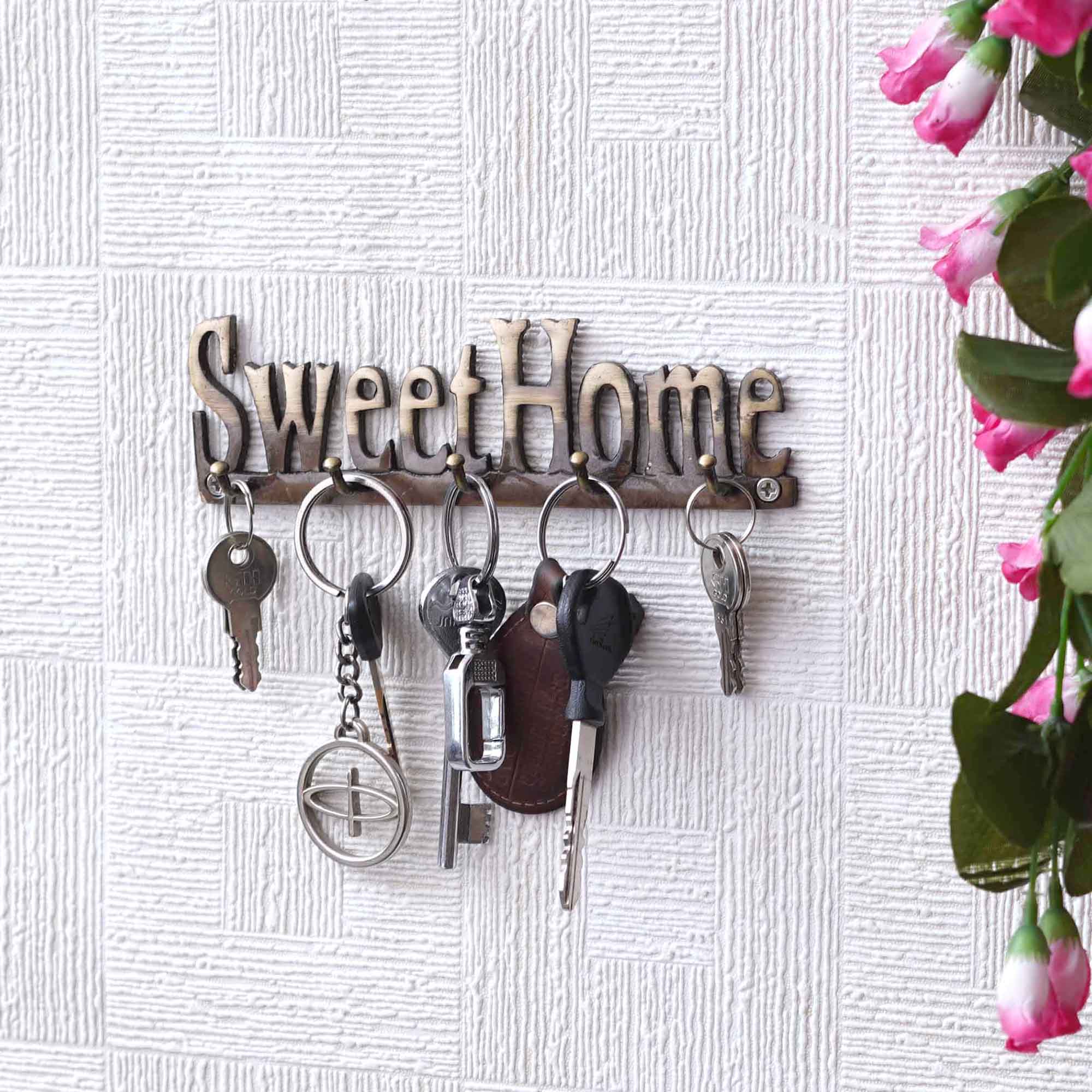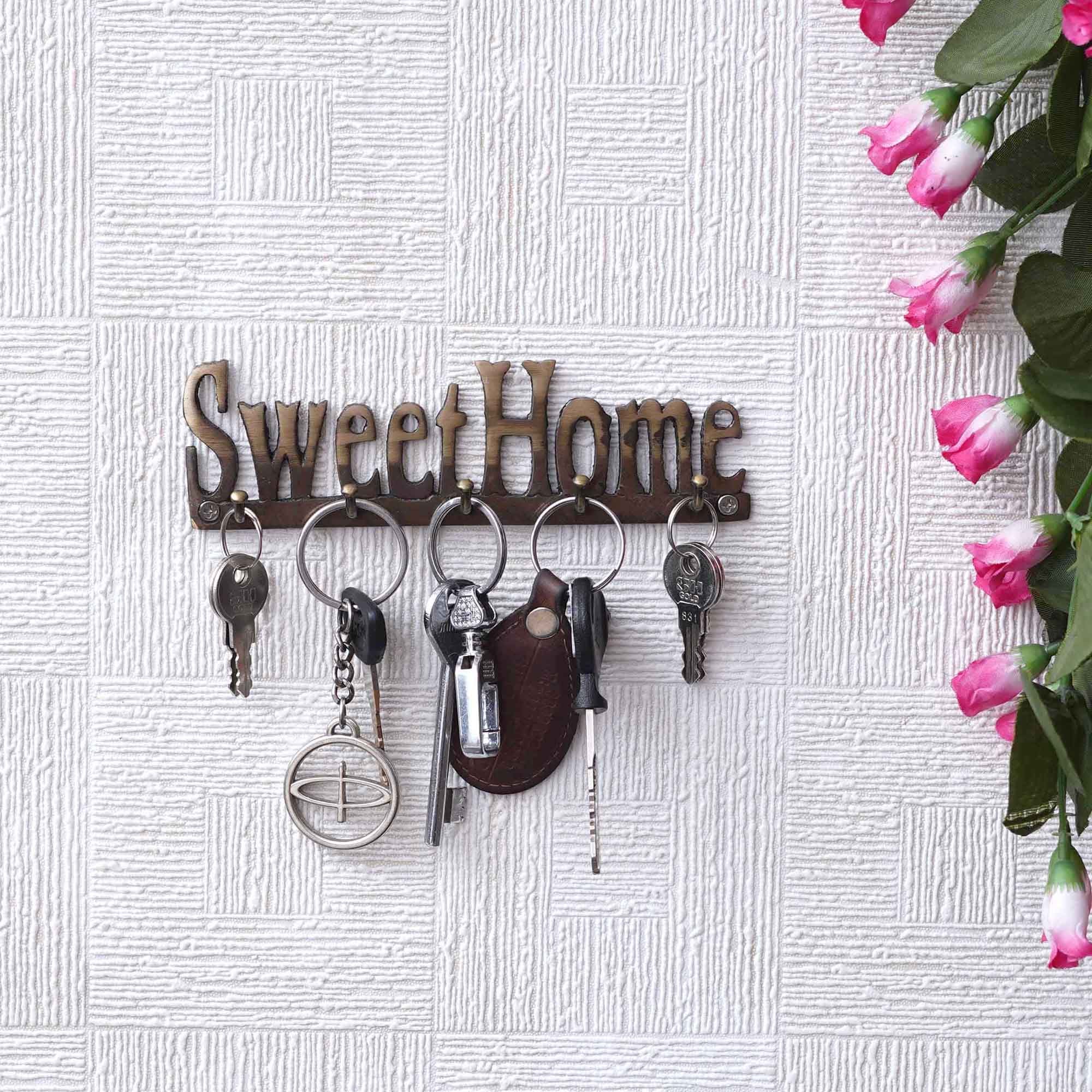Product Description - Begin every day with warmth and organization using our Golden Brass "Sweet Home" Designer Key Holder, equipped with 5 hooks for seamless key management. Meticulously handcrafted for enduring charm, this key holder adds a touch of elegance to any space while ensuring your keys are always within reach. Crafted from brass, it guarantees durability and timeless style. Ideal for gifting during housewarmings, birthdays, or festive occasions like Diwali, this key holder brings both practicality and a sense of home. Whether placed in the foyer, hallway, or kitchen, it transforms any room into a welcoming sanctuary, echoing the sentiment of a sweet home. Unlock the convenience and warmth of your space with this thoughtful and stylish gift.