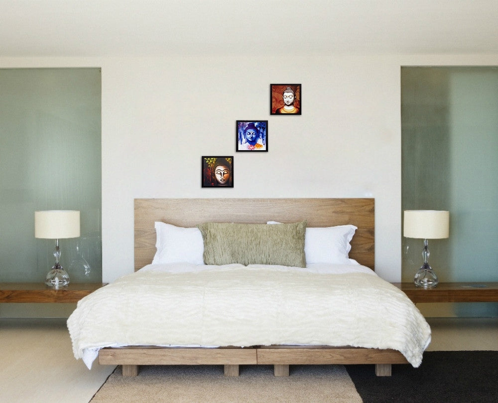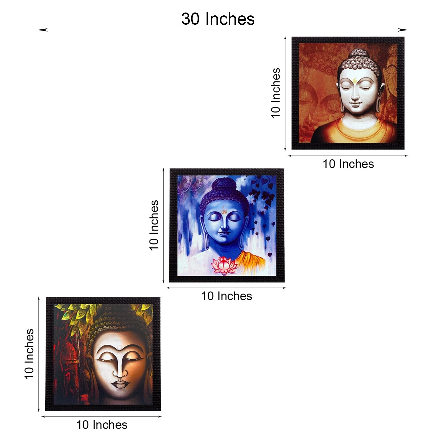 Package Content - Set Of 3 Meditating Buddha Satin Matt Texture UV Art Painting