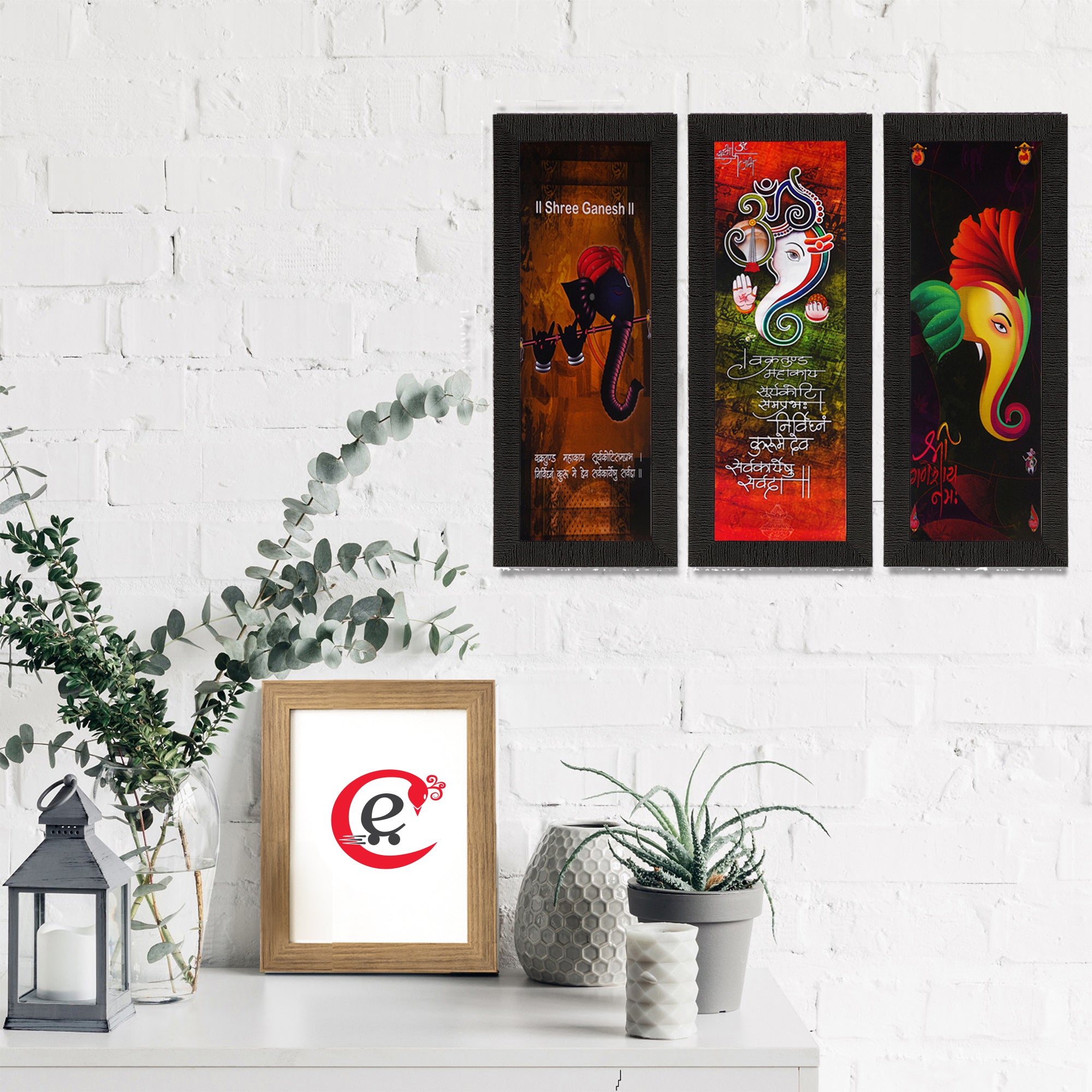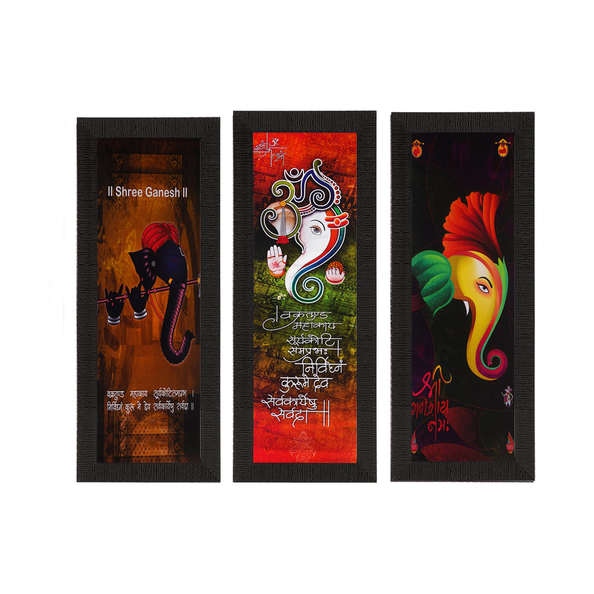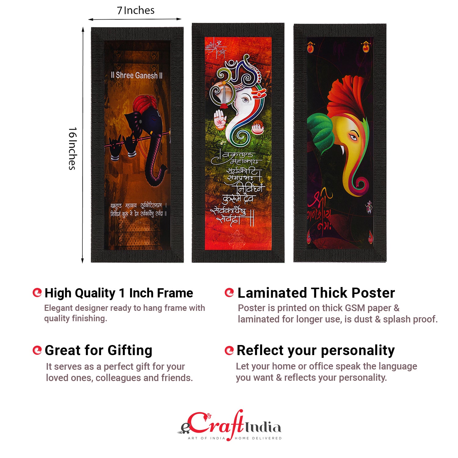 Package Content - Set Of 3 Lord Ganesha Satin Matt Texture UV Art Painting