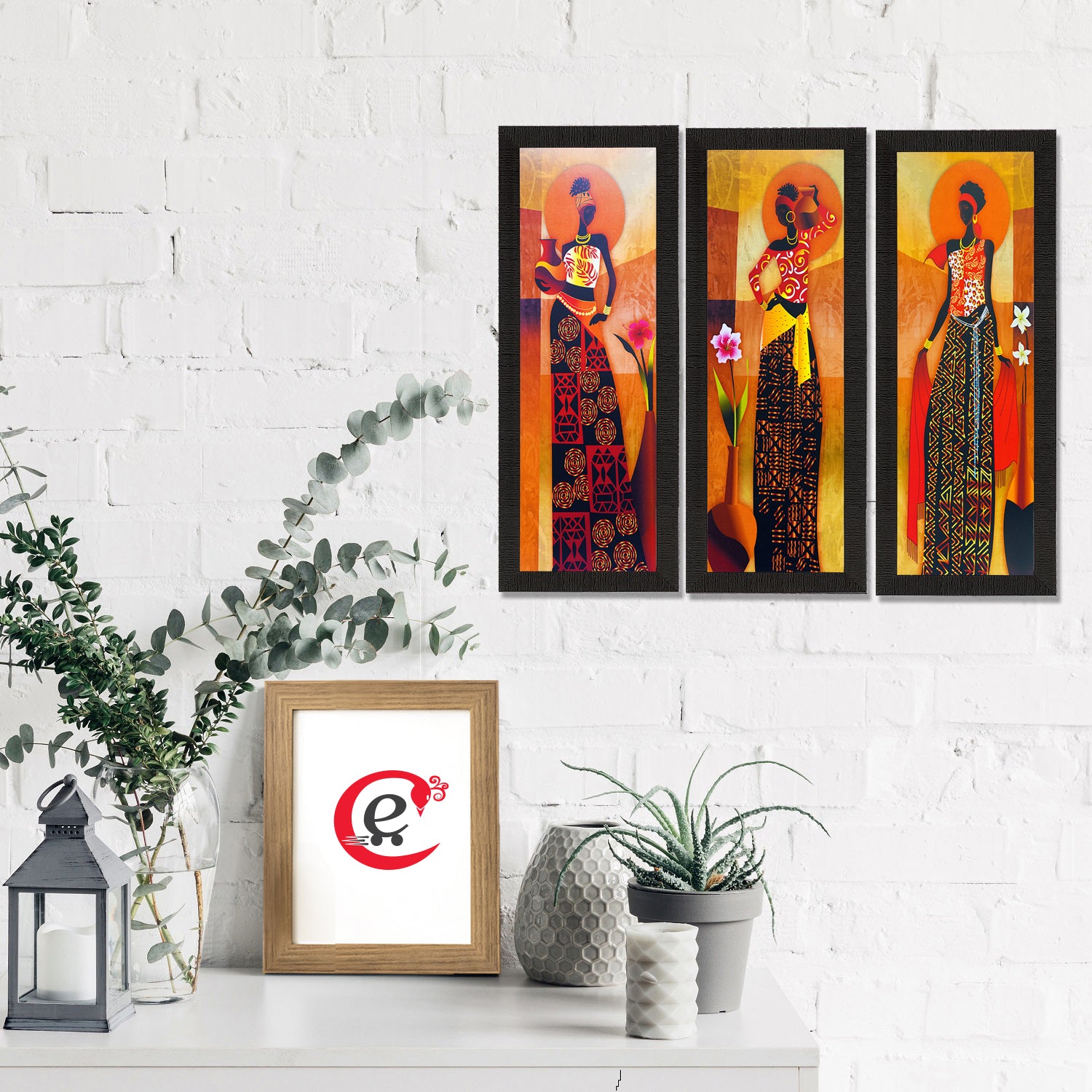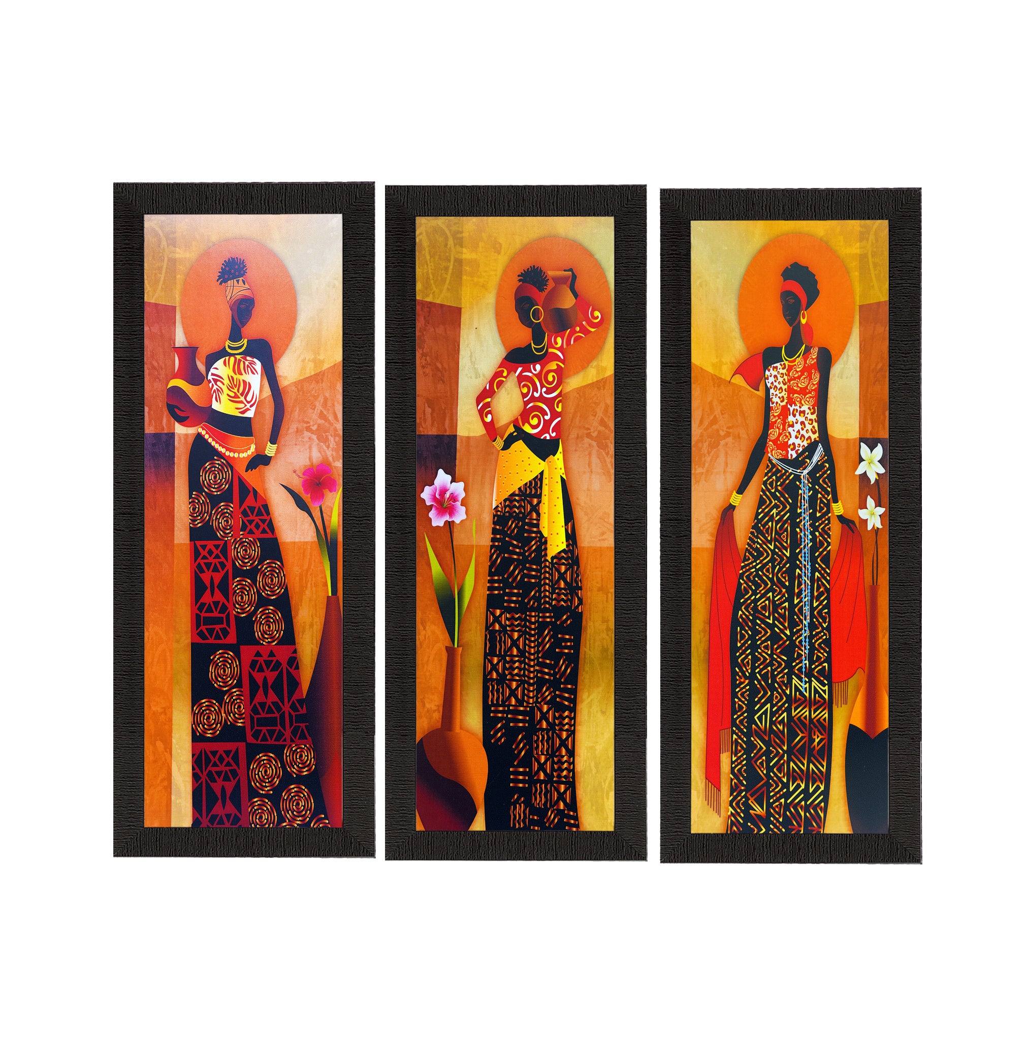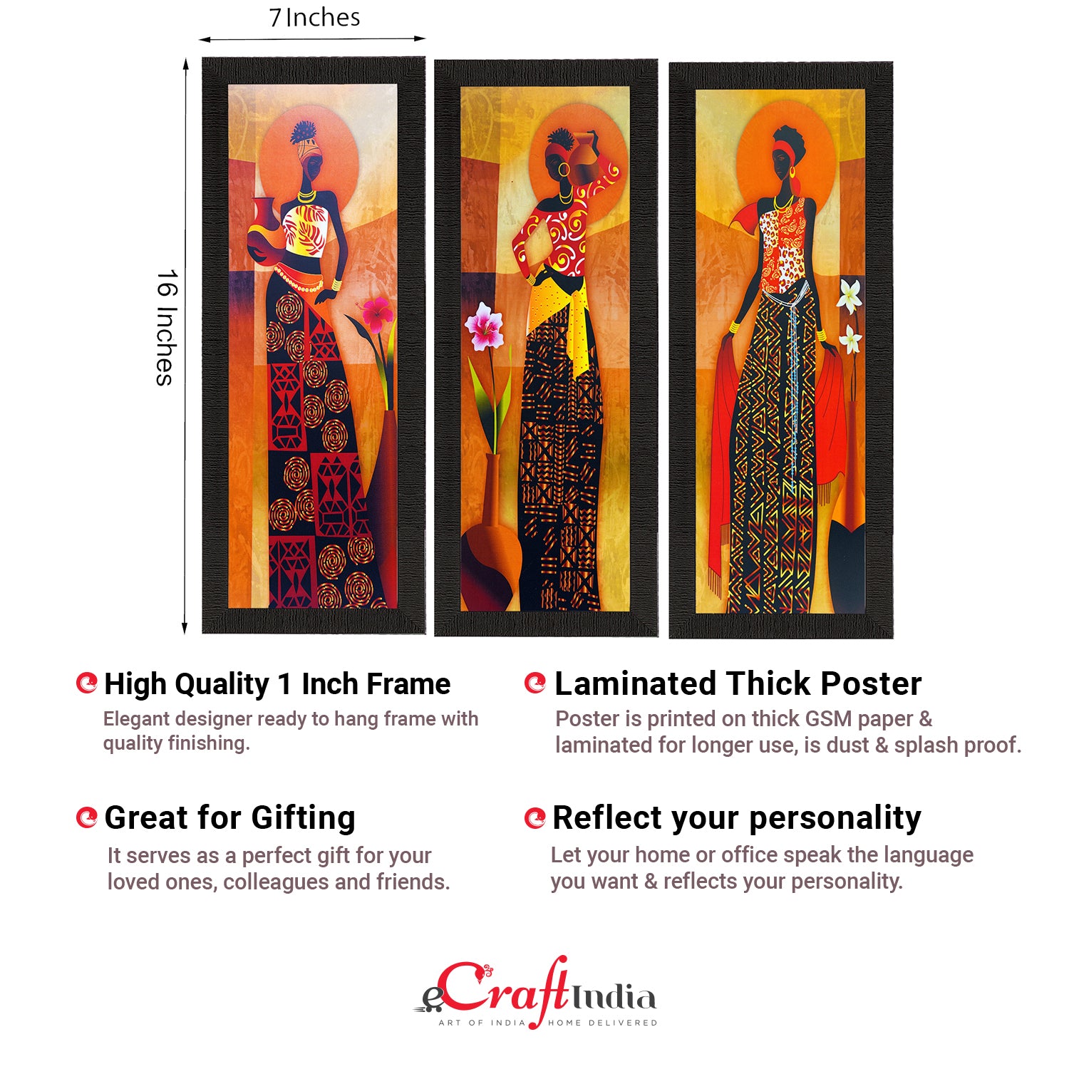 Package Content - Set Of 3 Tribal Village Ladies Satin Matt Texture UV Art Painting