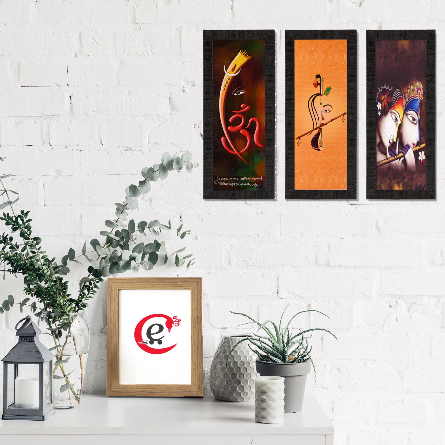 Package Content - Set Of 3 Radha Krishna & Ganesha Satin Matt Texture UV Art Painting