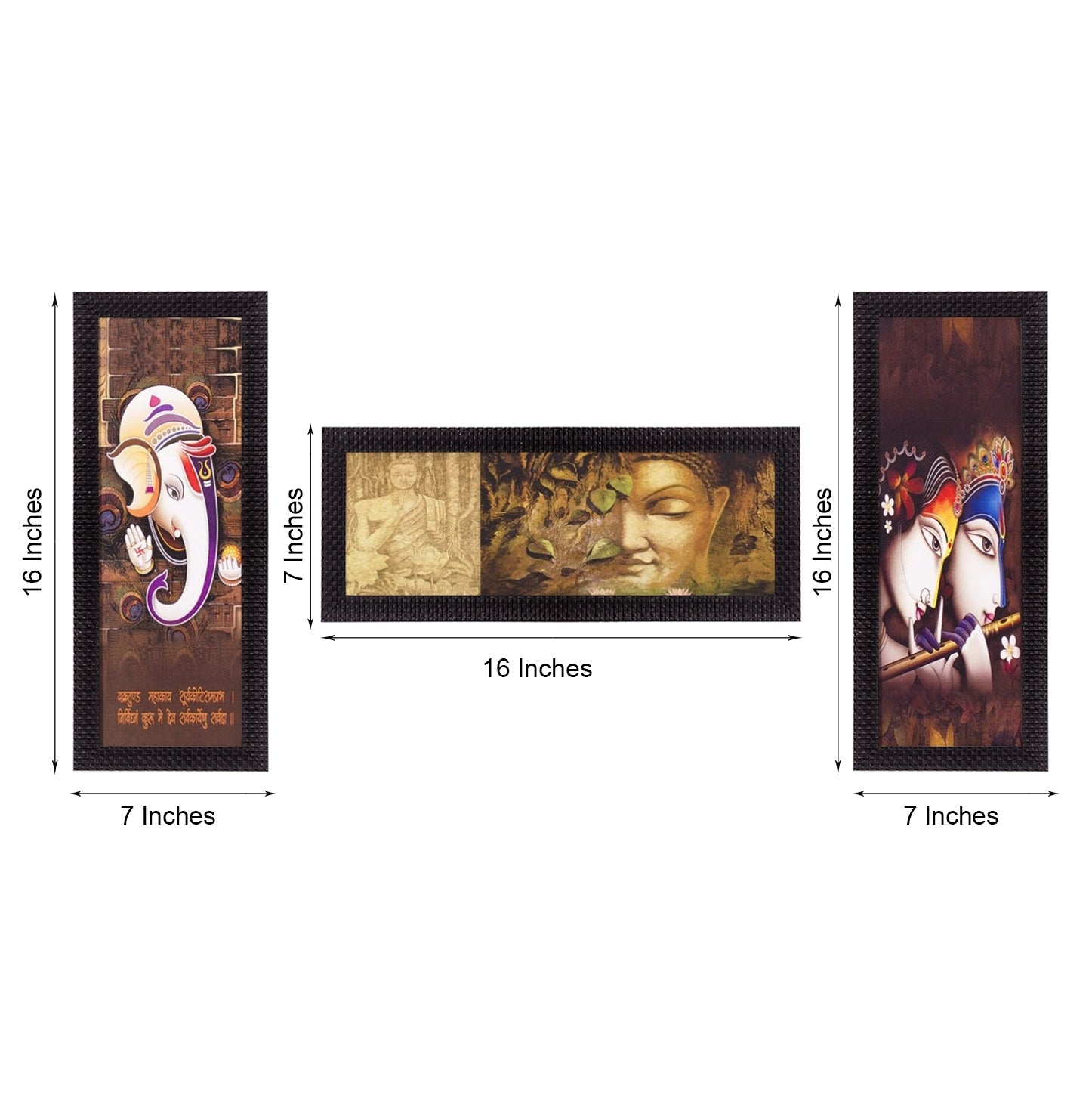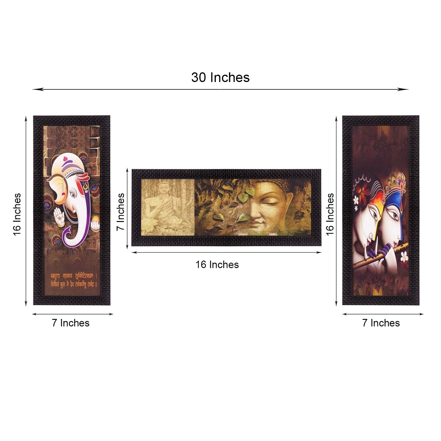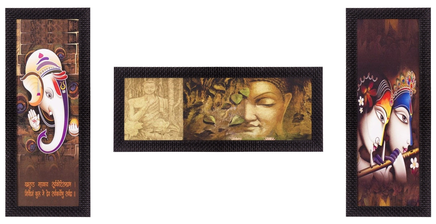 Package Content - Set Of 3 Radha Krishna, Ganesha, Buddha Satin Matt Texture UV Art Painting