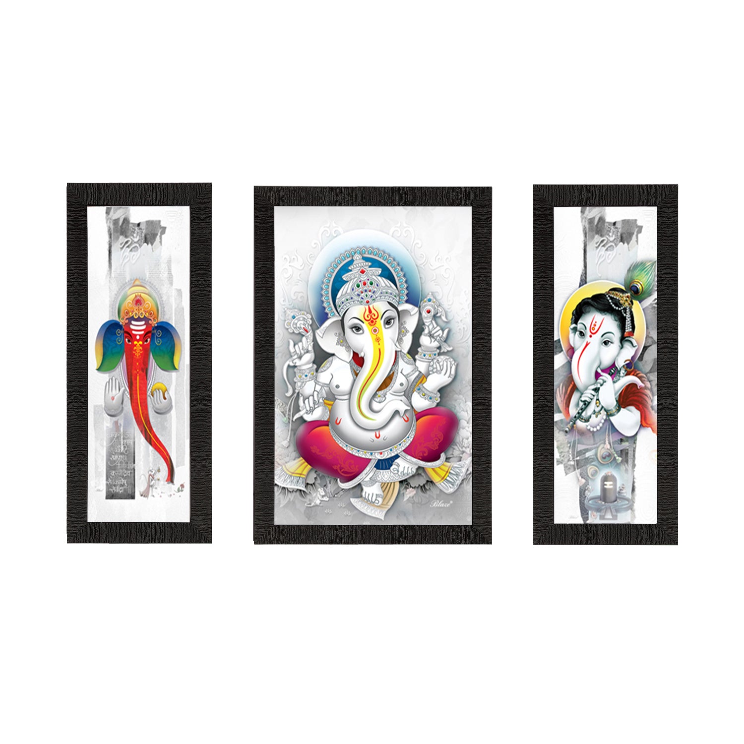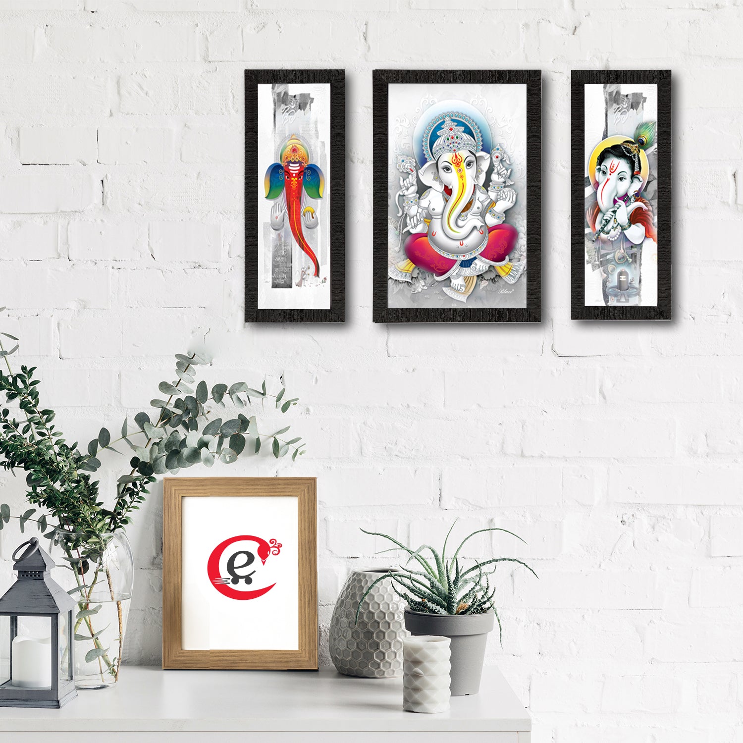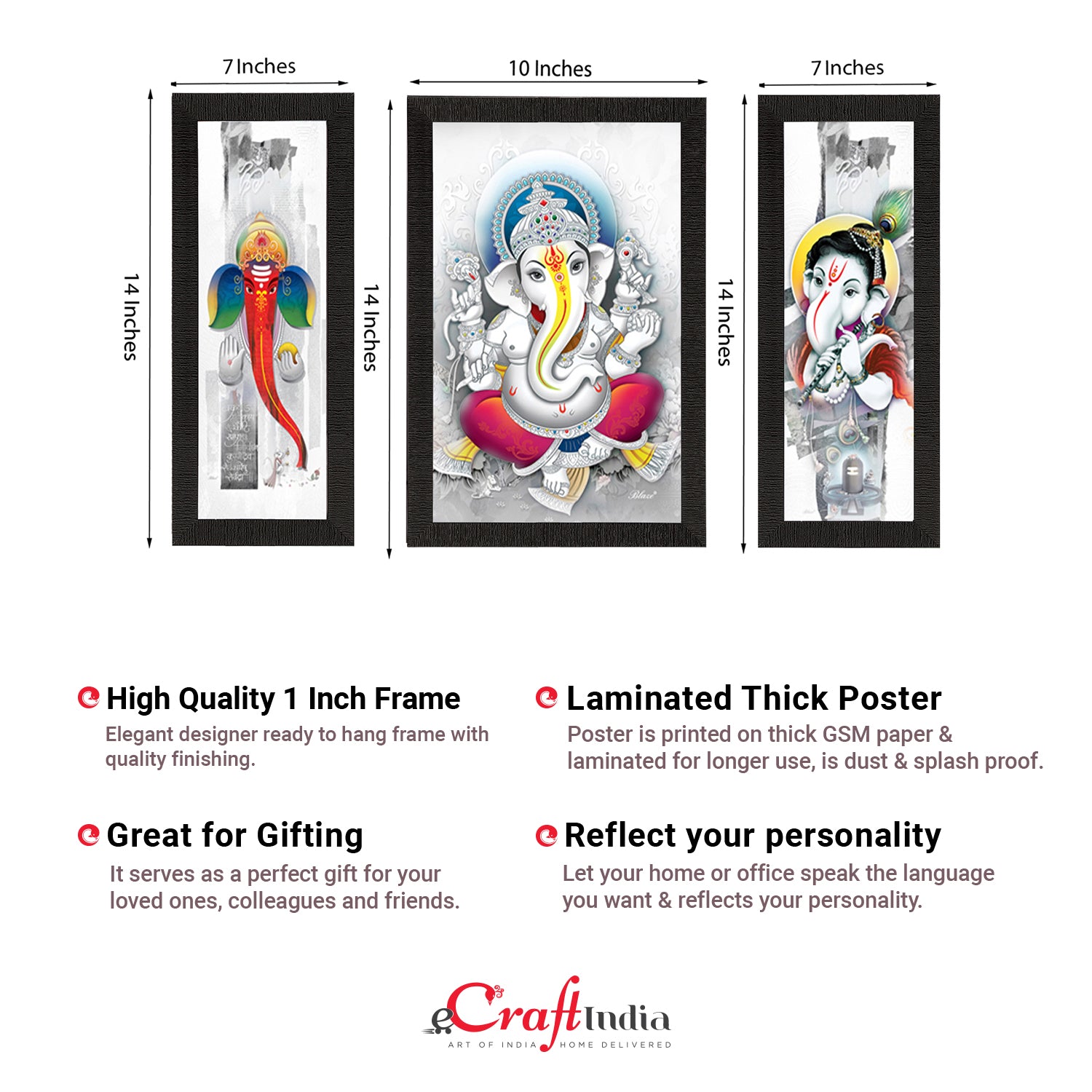 Package Content - One Set of 3 Lord Ganesha Satin Matt Texture UV Art Painting