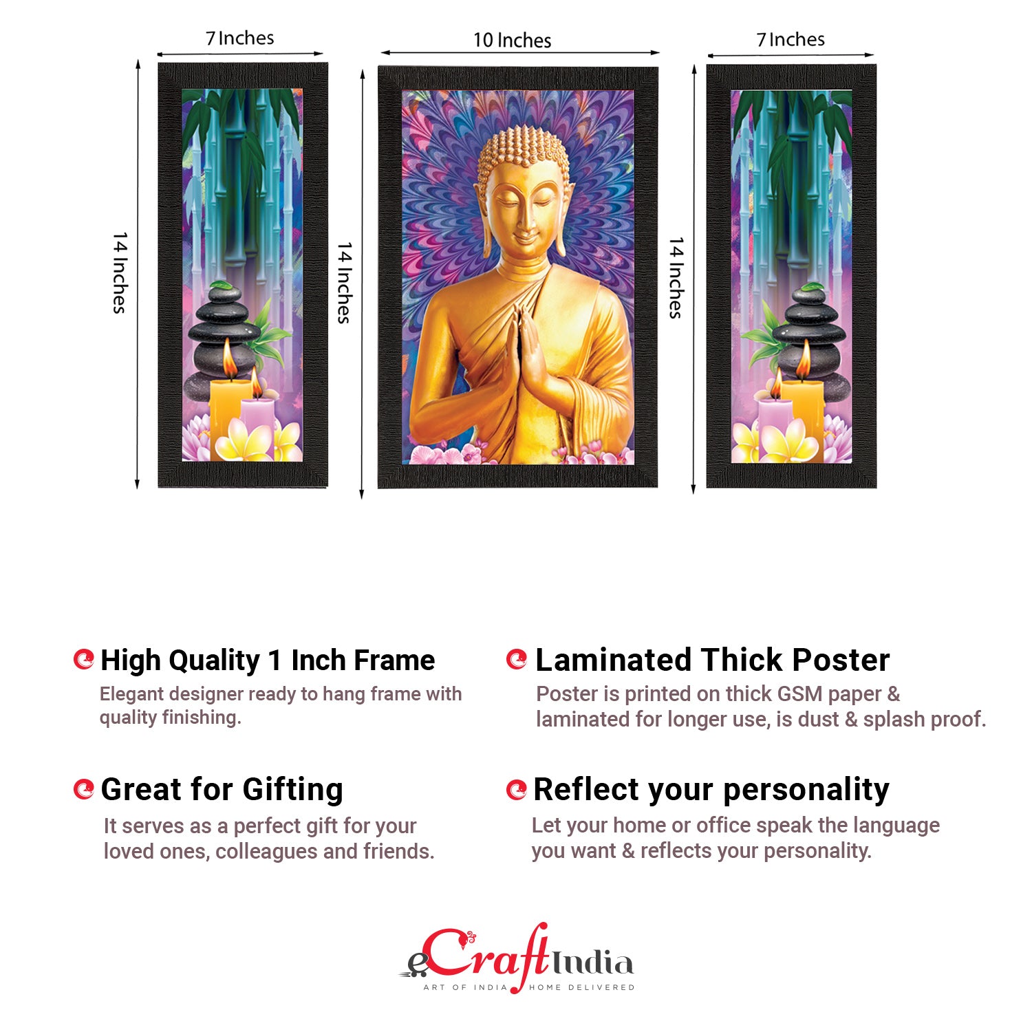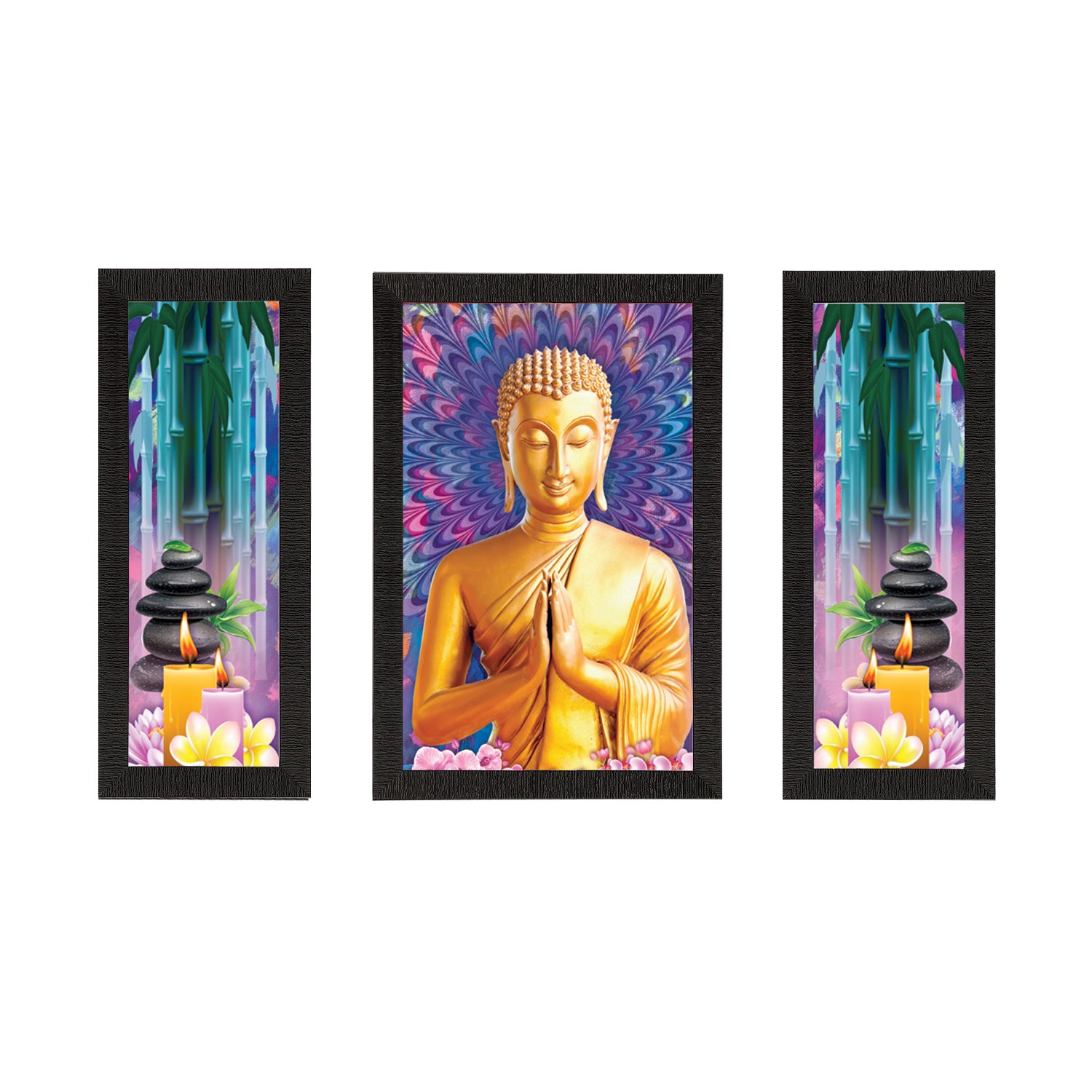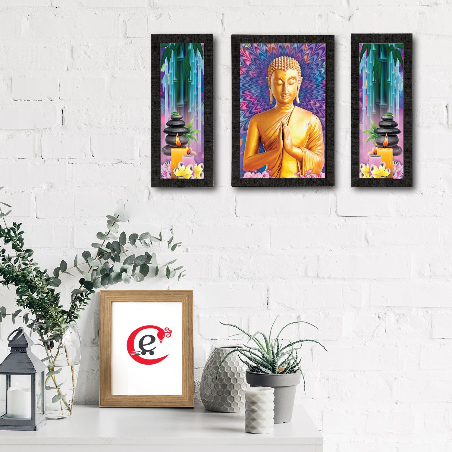 Package Content - One Set of 3 Lord Buddha Satin Matt Texture UV Art Painting