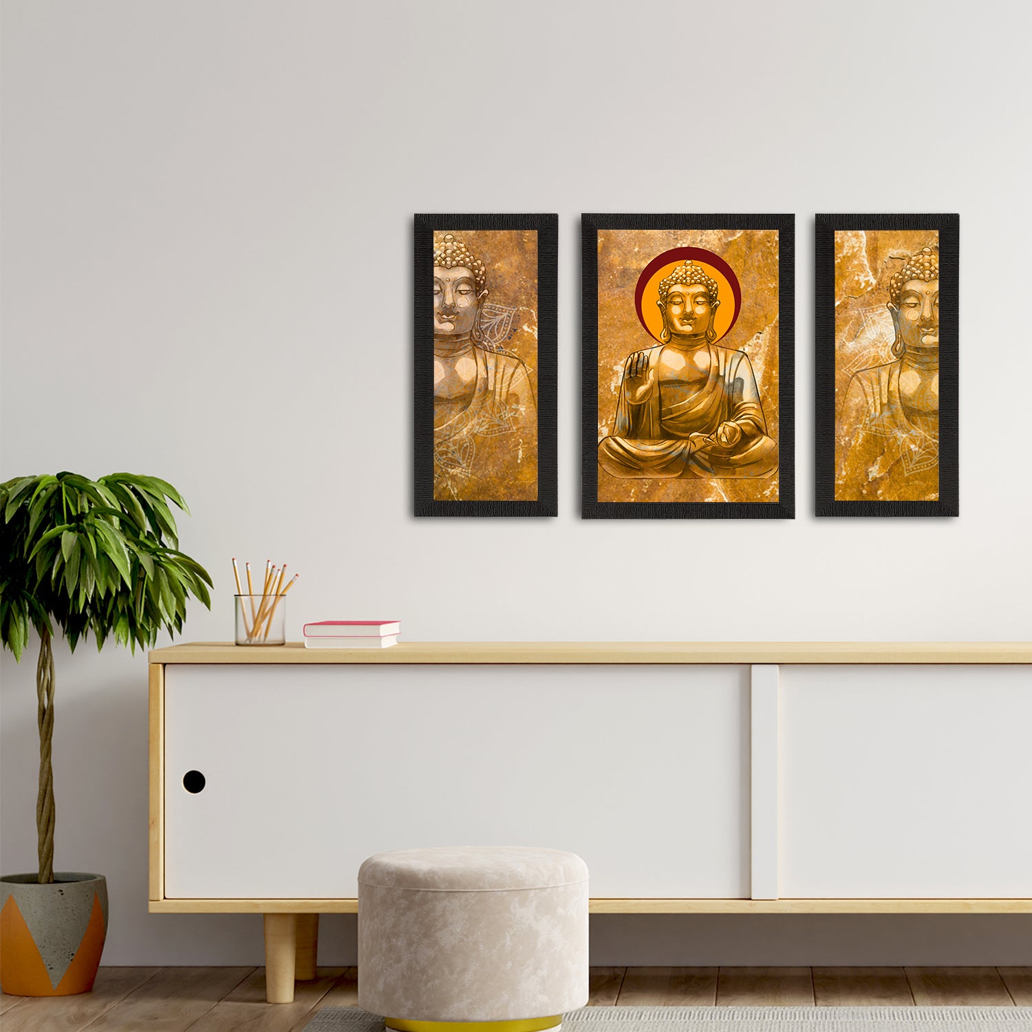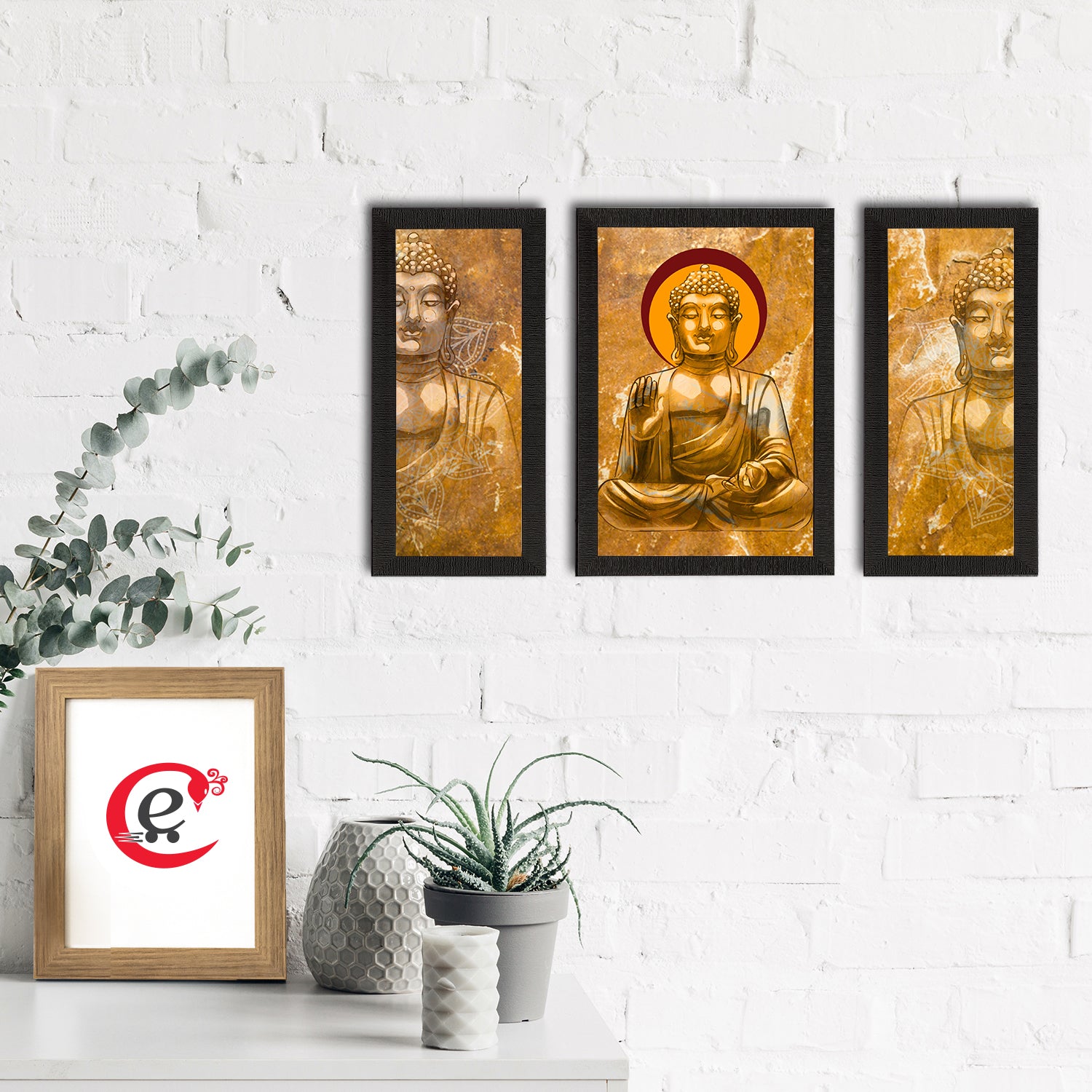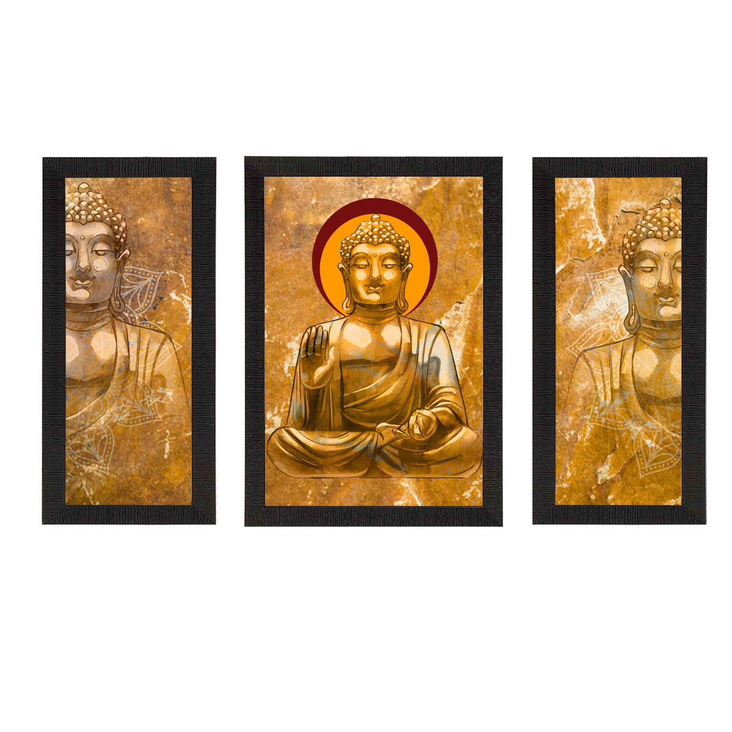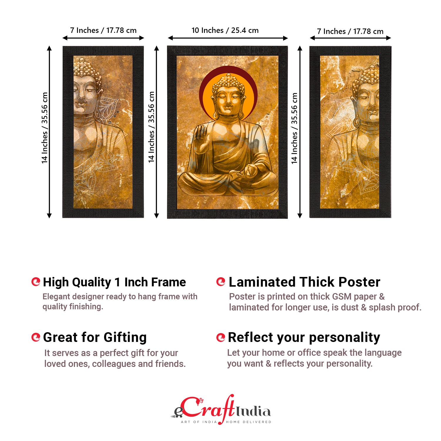 Package Content - One Set of 3 Meditating Lord Buddha Satin Matt Textured UV Art Painting