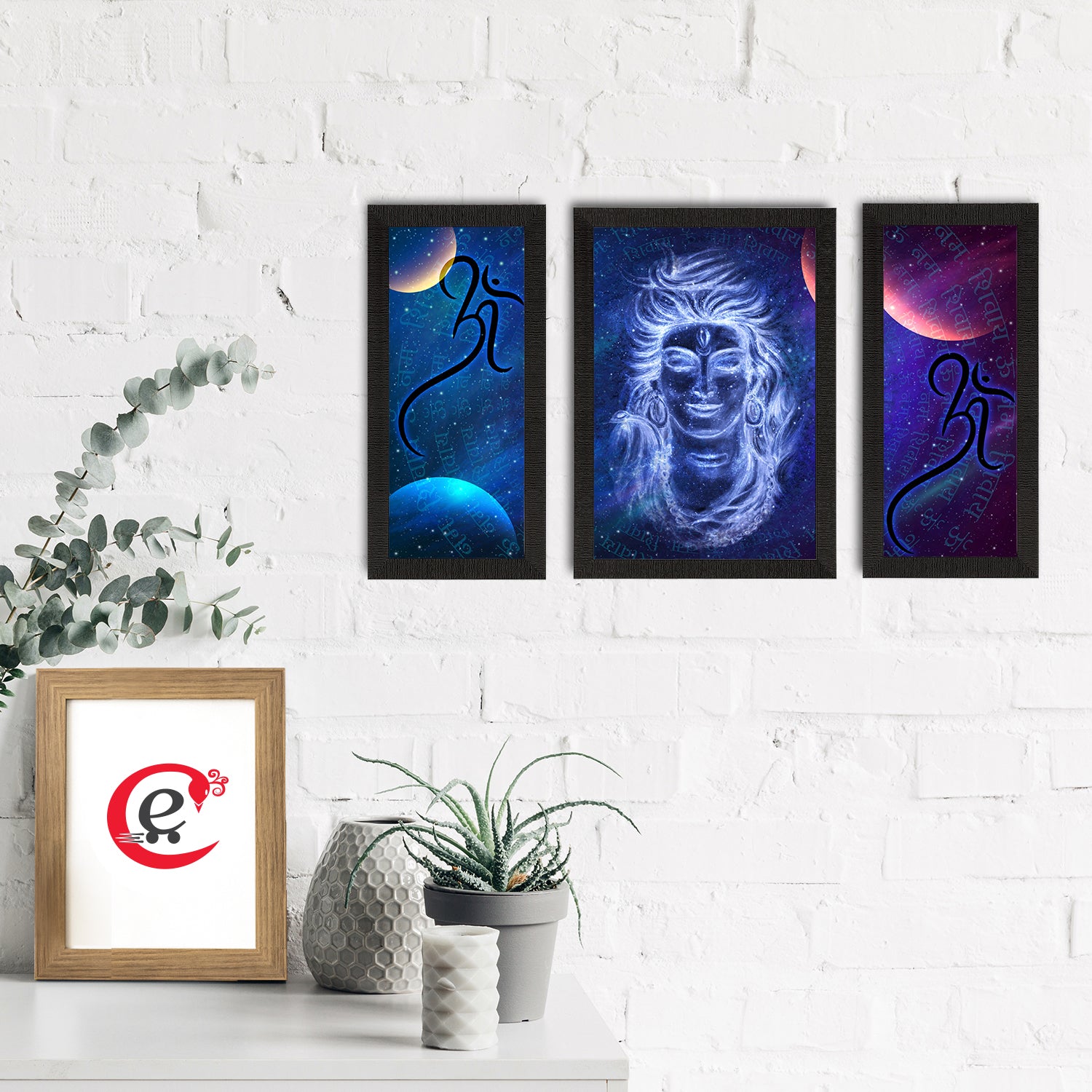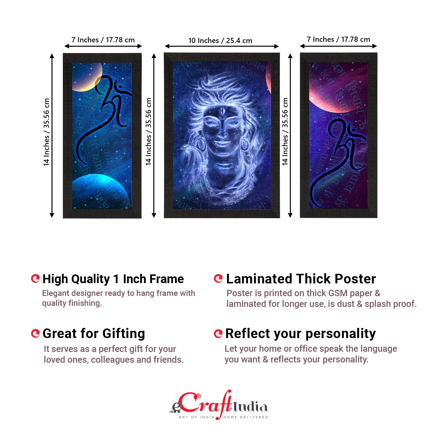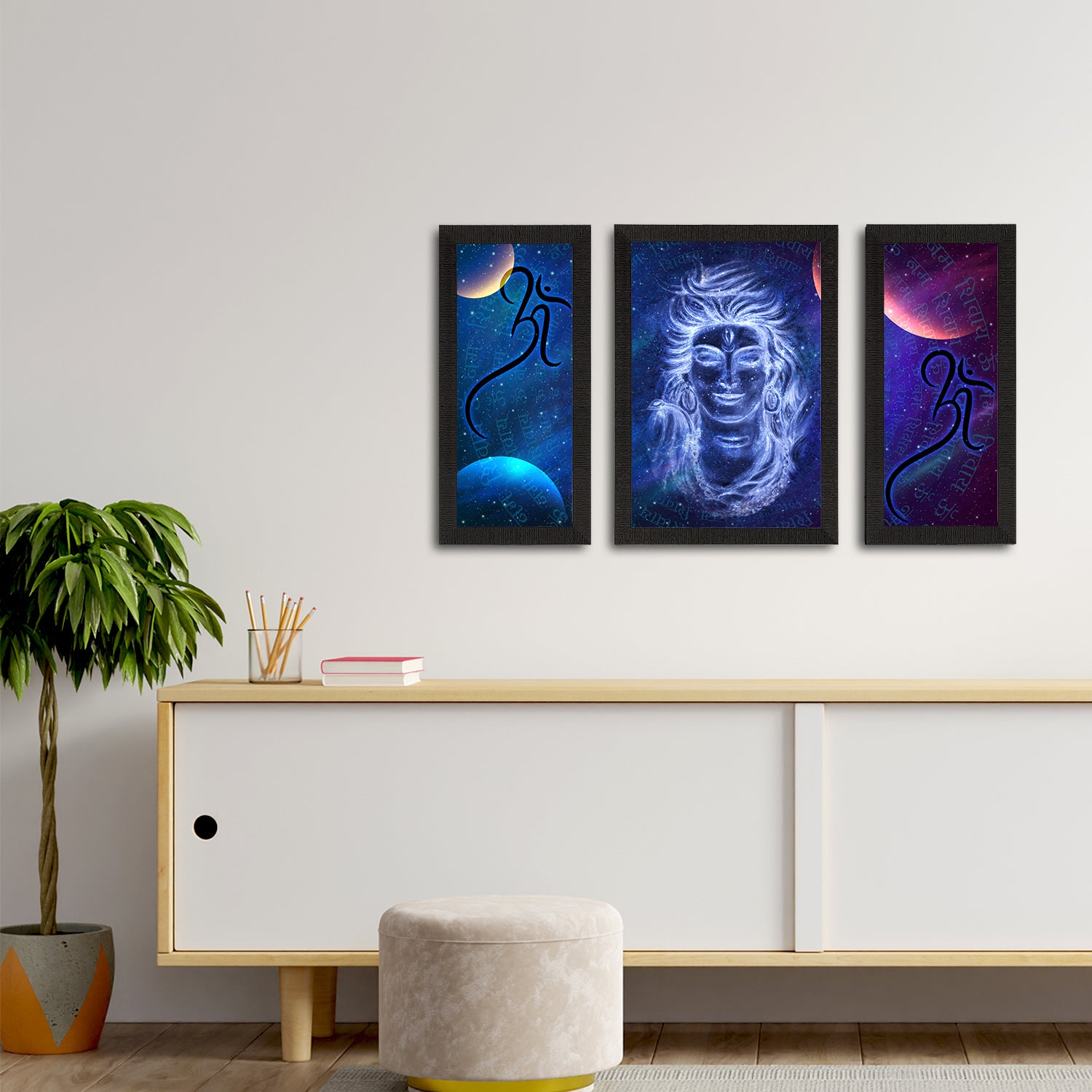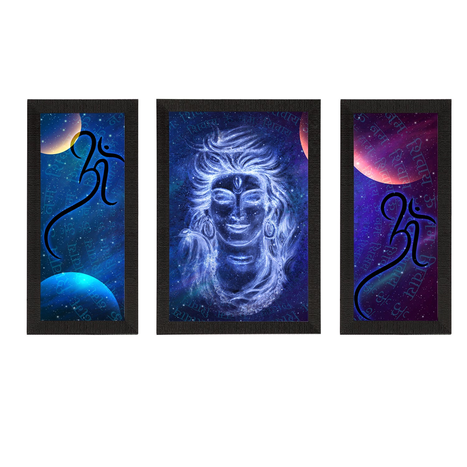 Package Content - One Set of 3 Lord Shiva Satin Matt Textured UV Art Painting