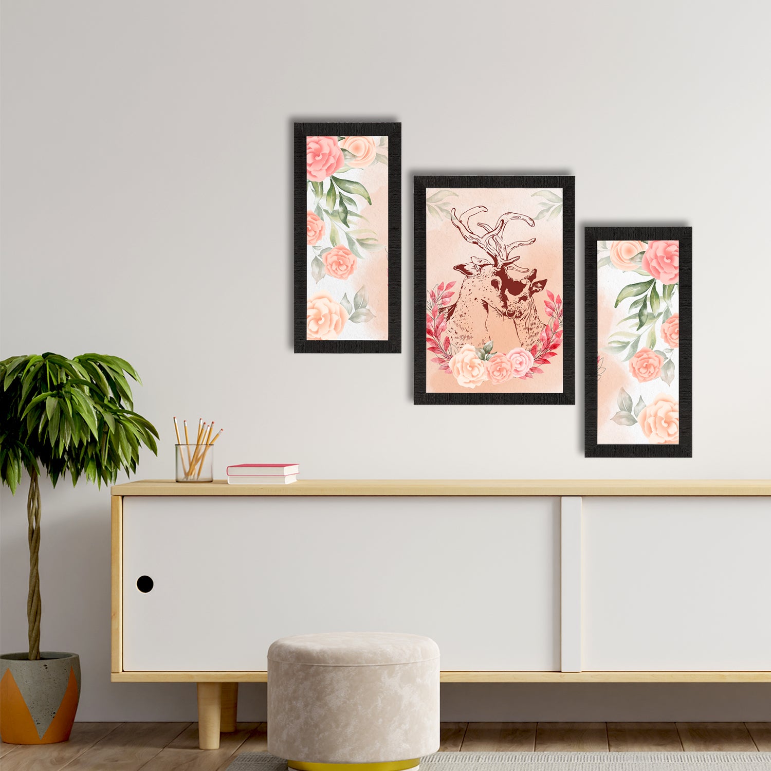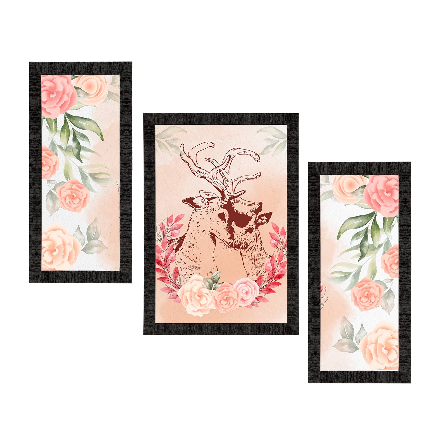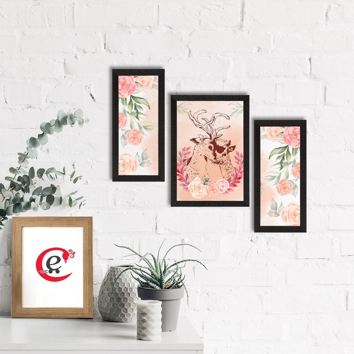 Product Description - Decorate your home & office walls with this artistic design eCraftIndia Set of 3 Loving Deer Couple Satin Matt Texture UV Art Painting. Each design reflects the artistic qualities and time one has taken to design this painting. Exquisitely printed and framed, it is also a perfect gifting option for your colleagues, loved ones and family members. These frames don't include glass so it is very light weight and wet cloth can be used to clean it.