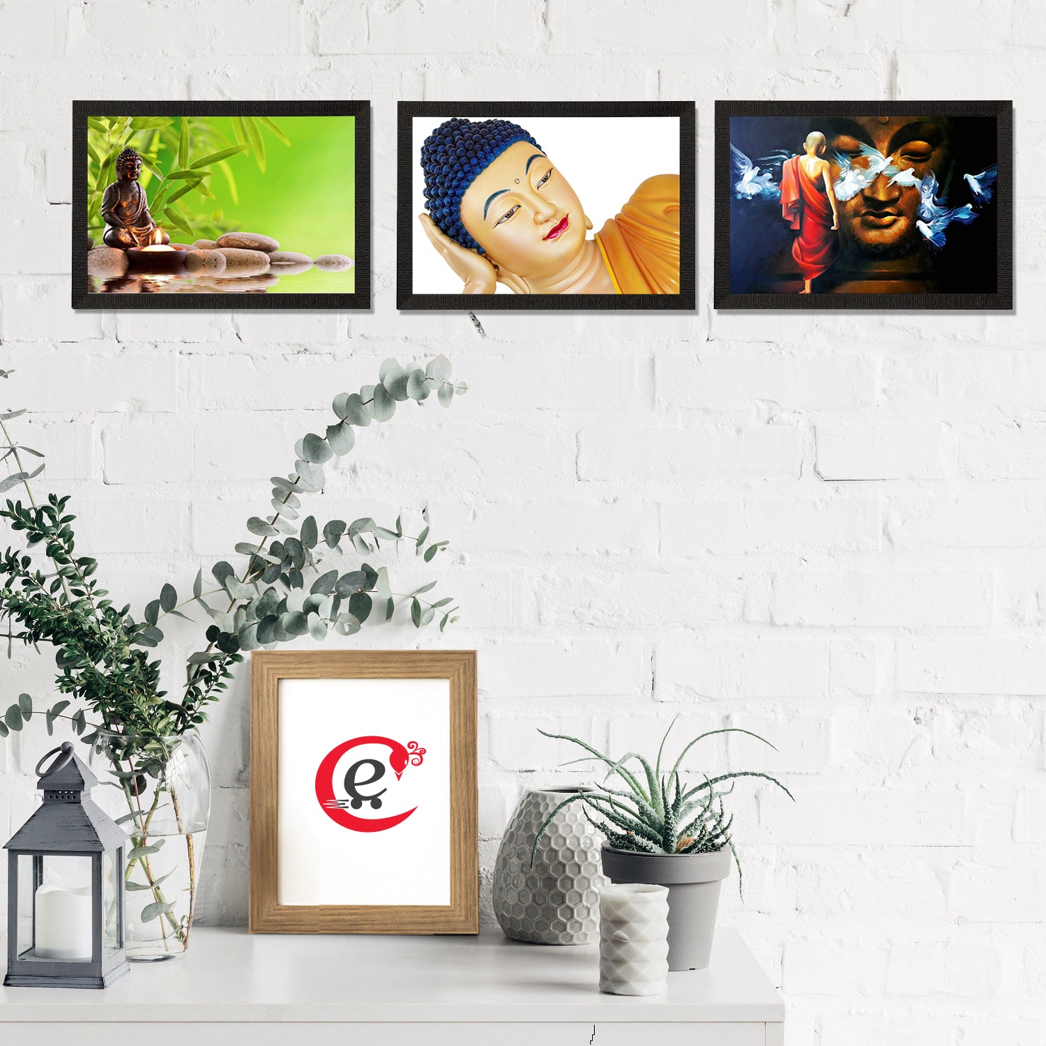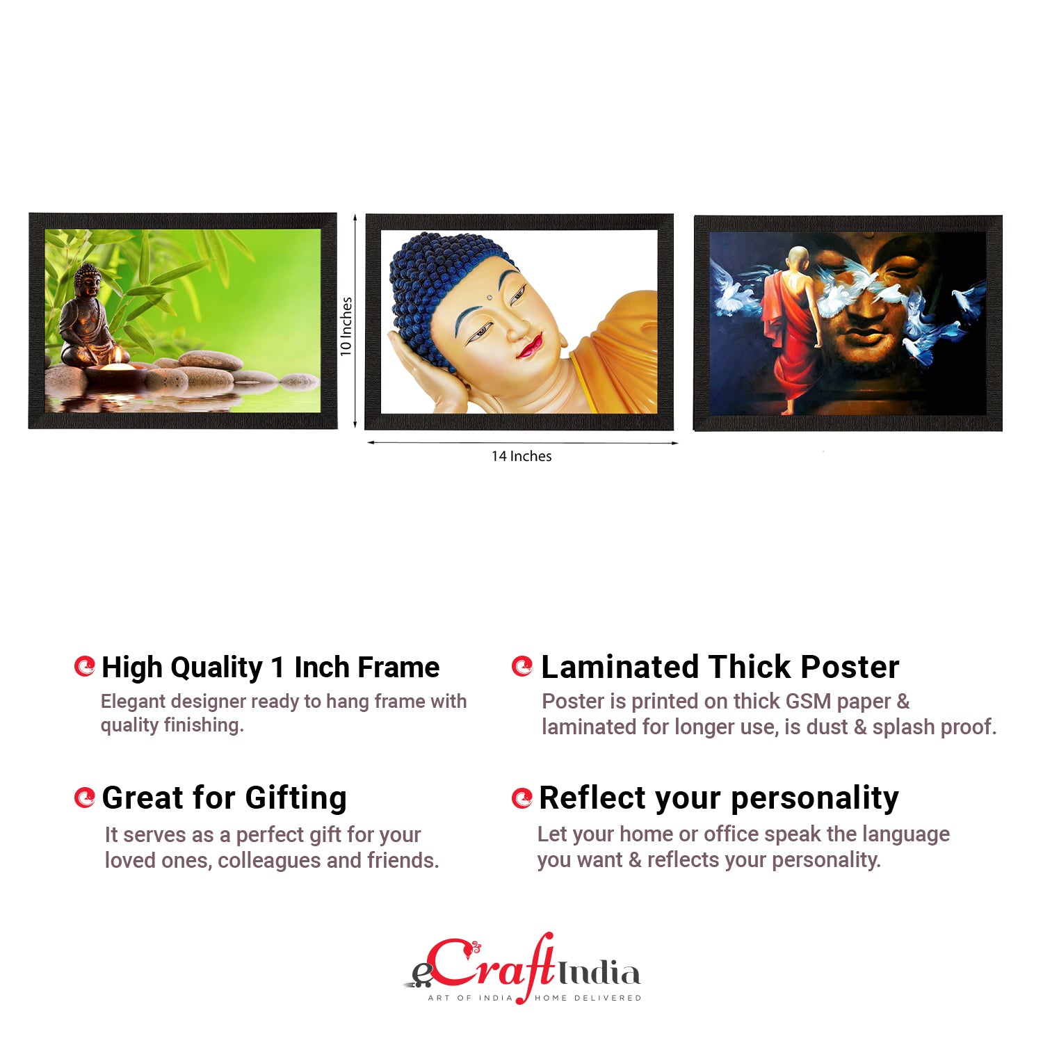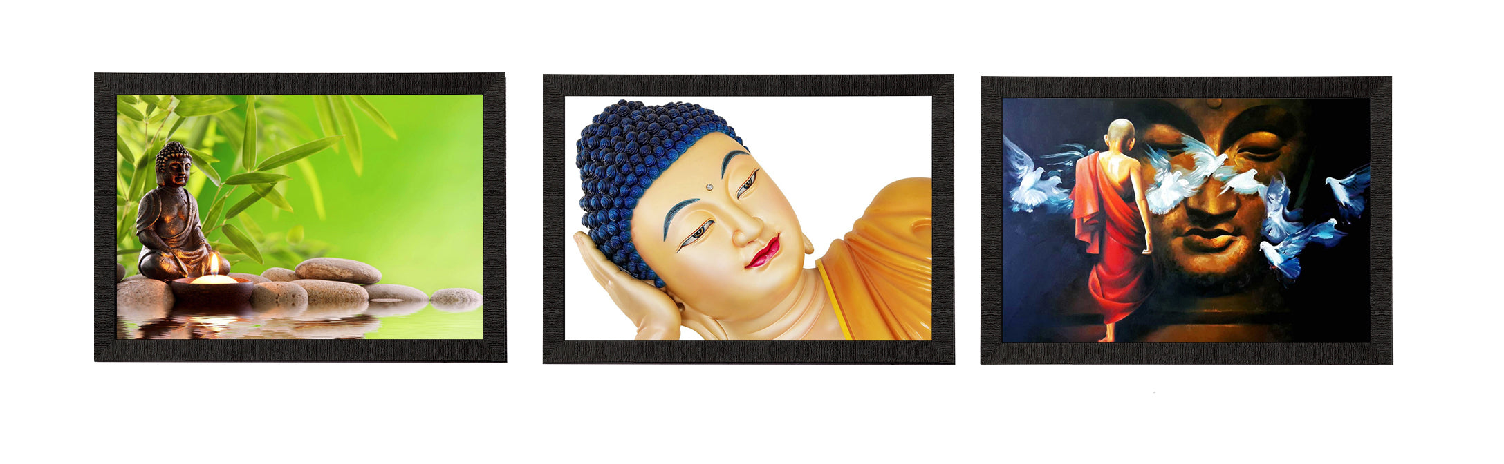 Package Content - Set Of 3 Lord Buddha Satin Matt Texture UV Art Painting