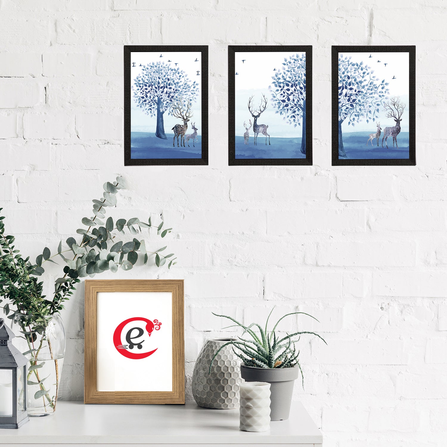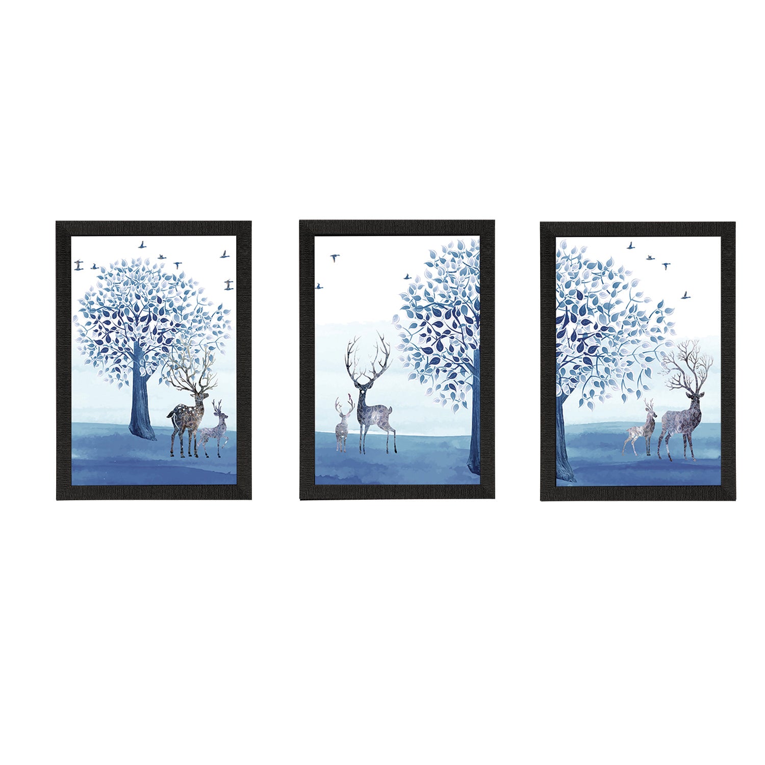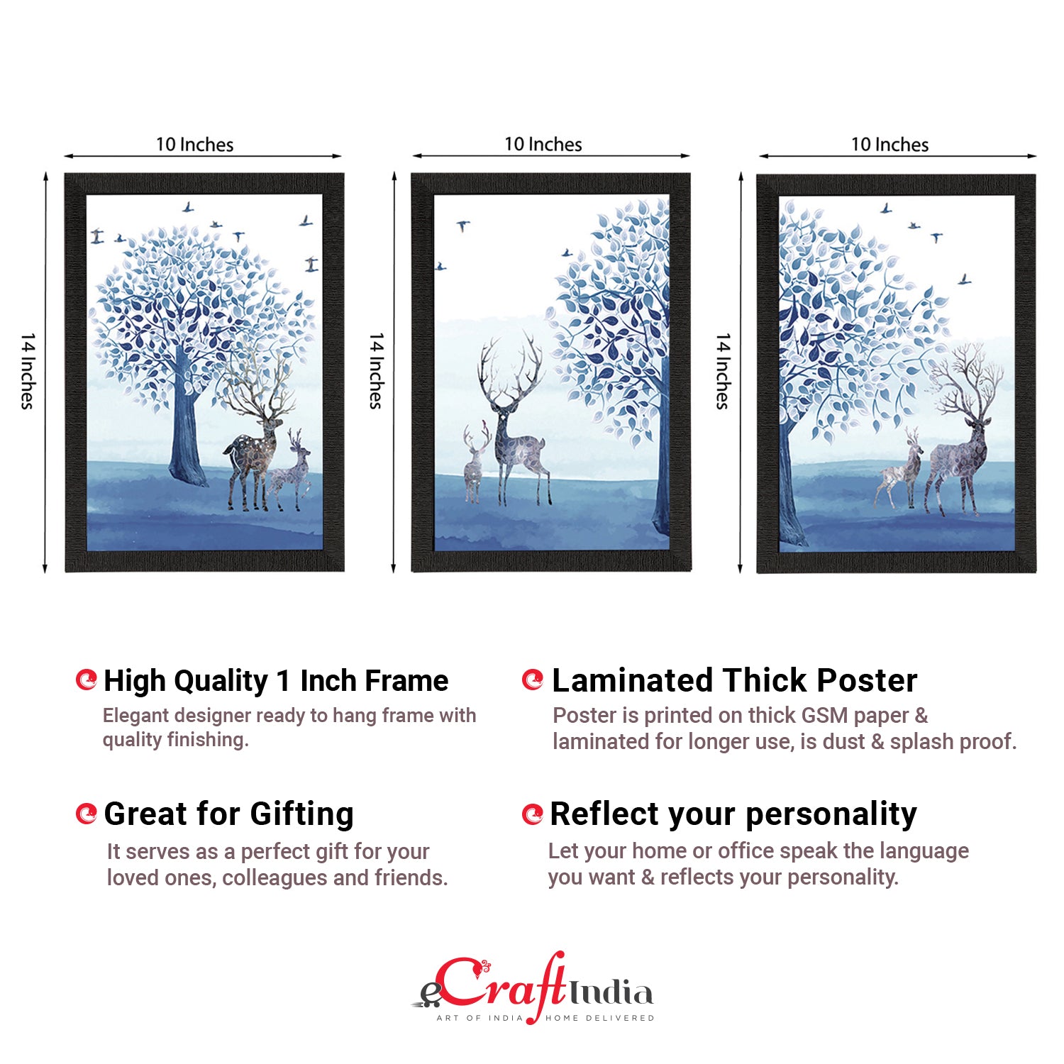 Package Content - One Set Of 3 Deer Family Satin Matt Texture UV Art Painting