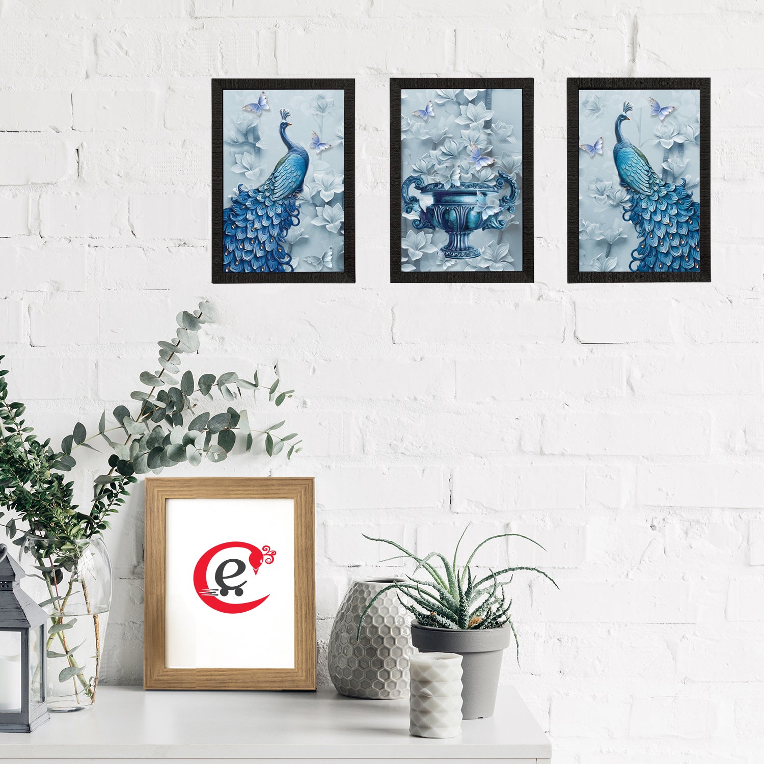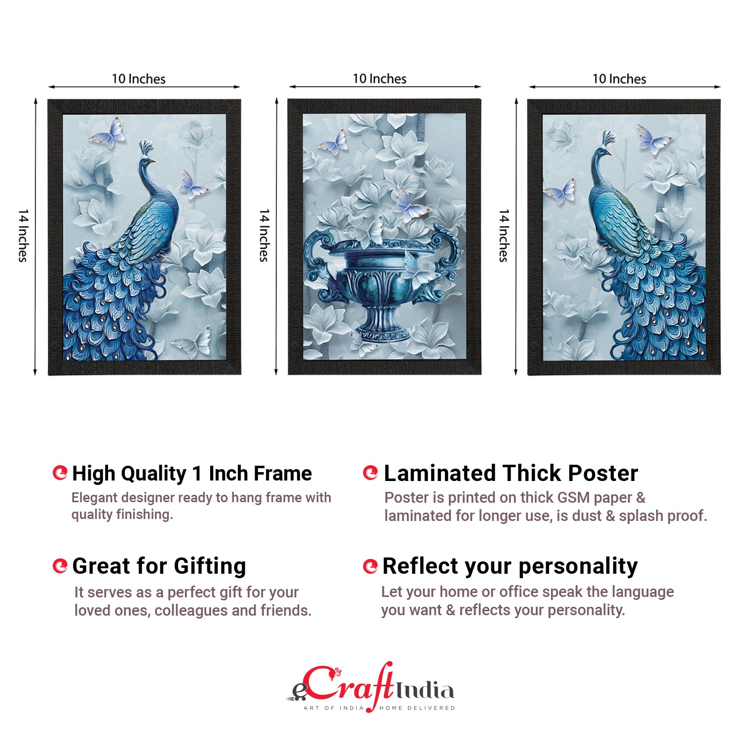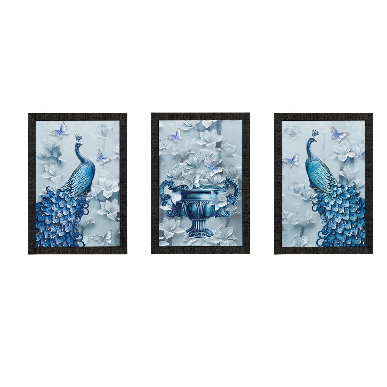 Package Content - One Set Of 3 Artistic Peacocks Satin Matt Texture UV Art Painting