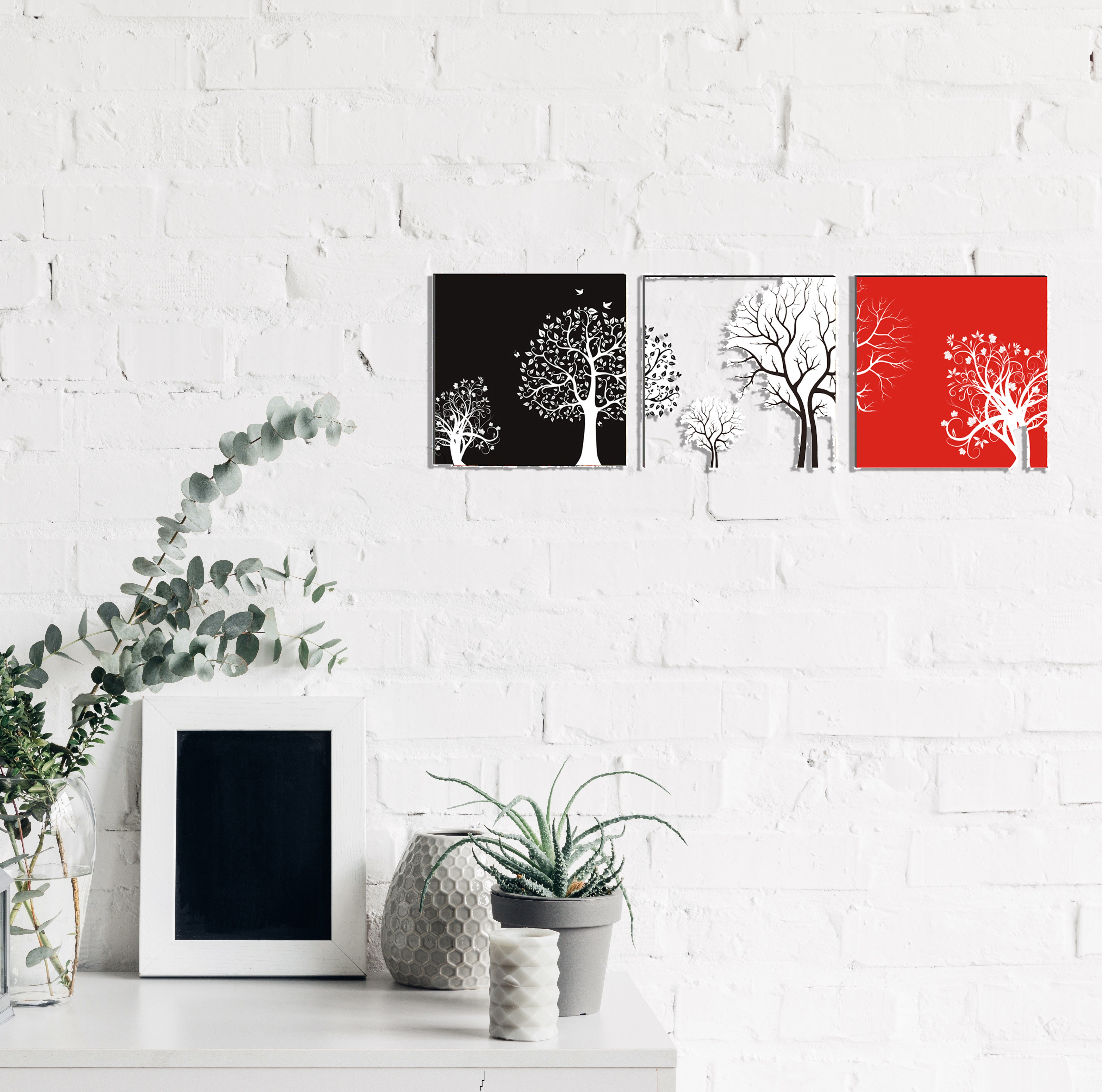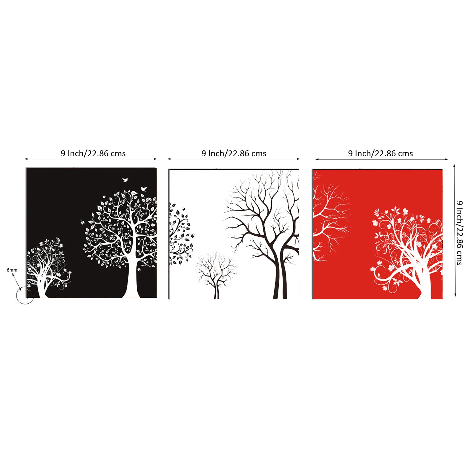 Package Content - One Set of 3 6MM MDF Abstract Tree Satin Matt Texture UV Art Painting