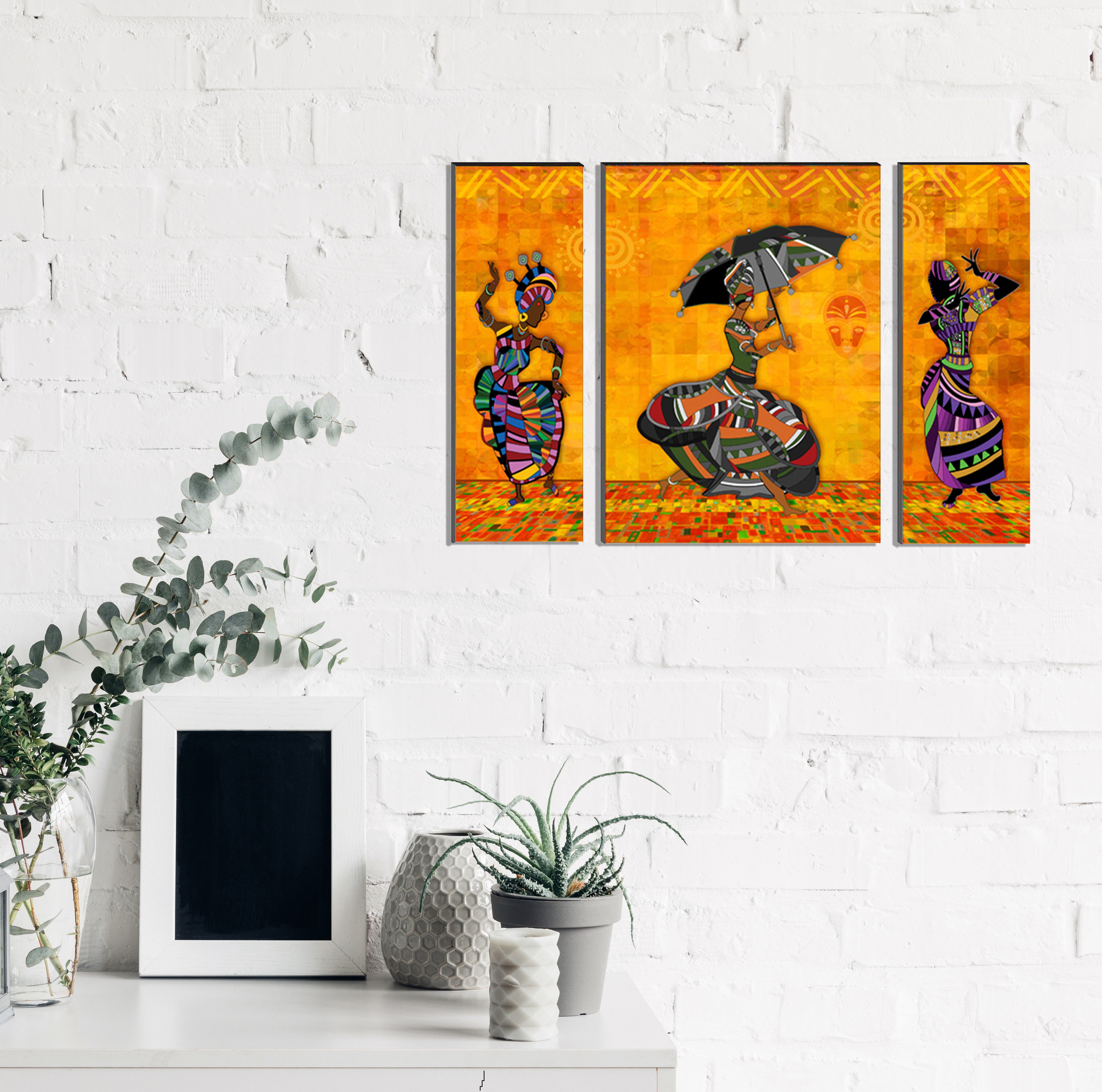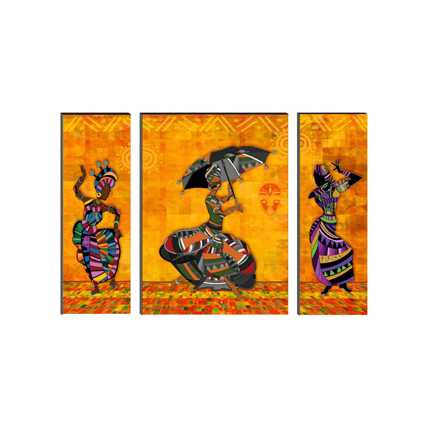Package Content - One 6MM MDF Set of 3 Dancing Tribal Women Satin Matt Texture UV Art Painting