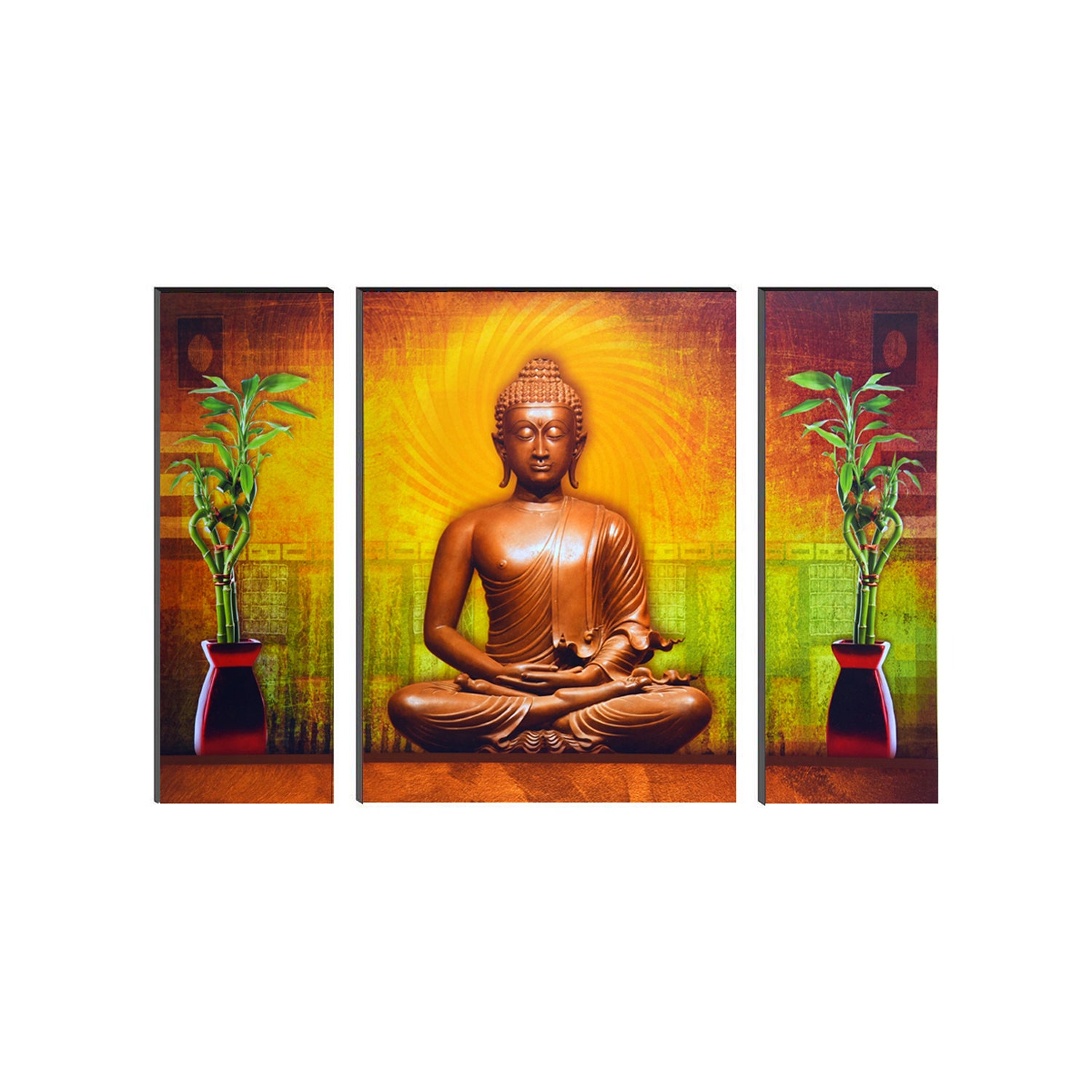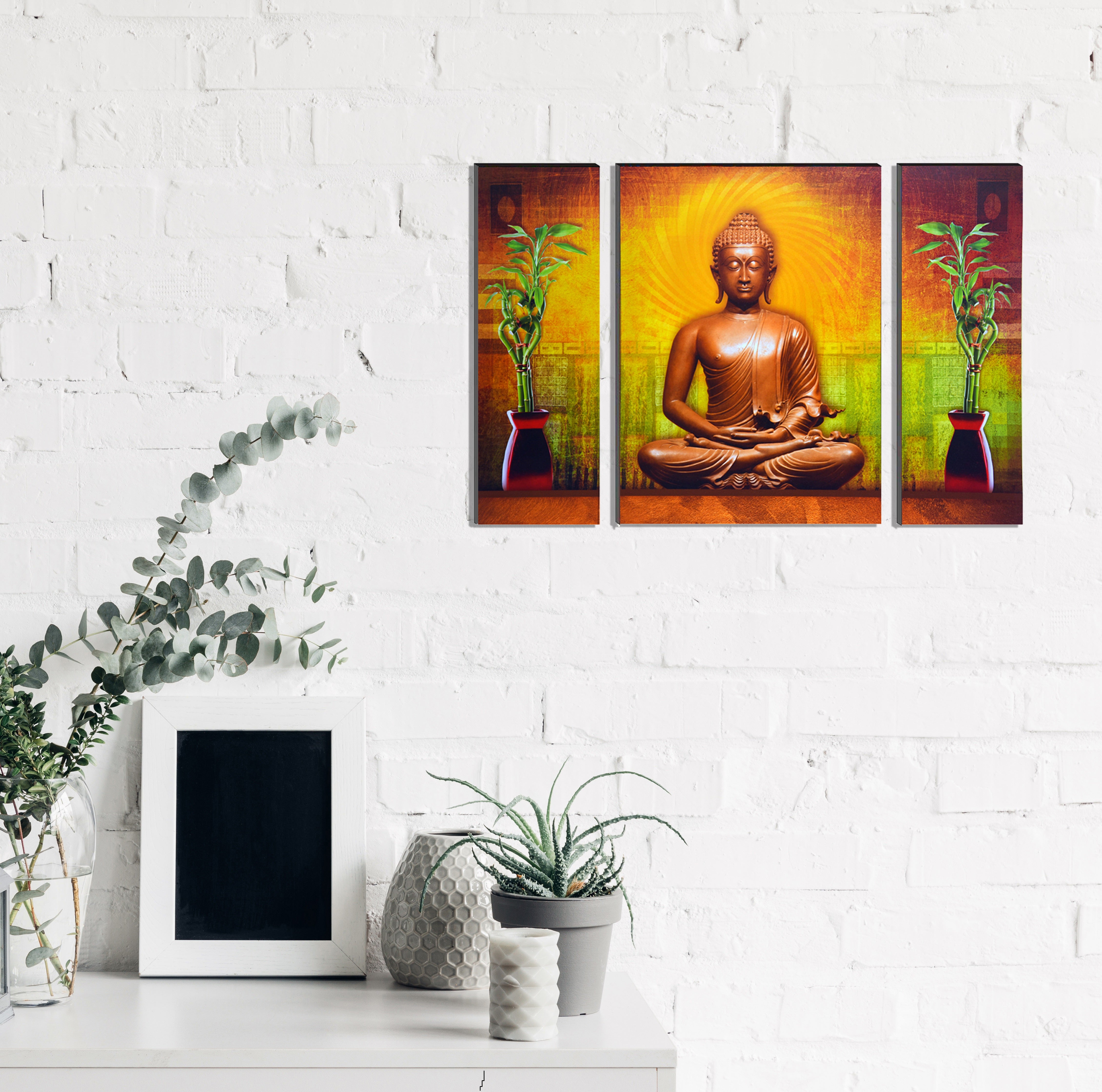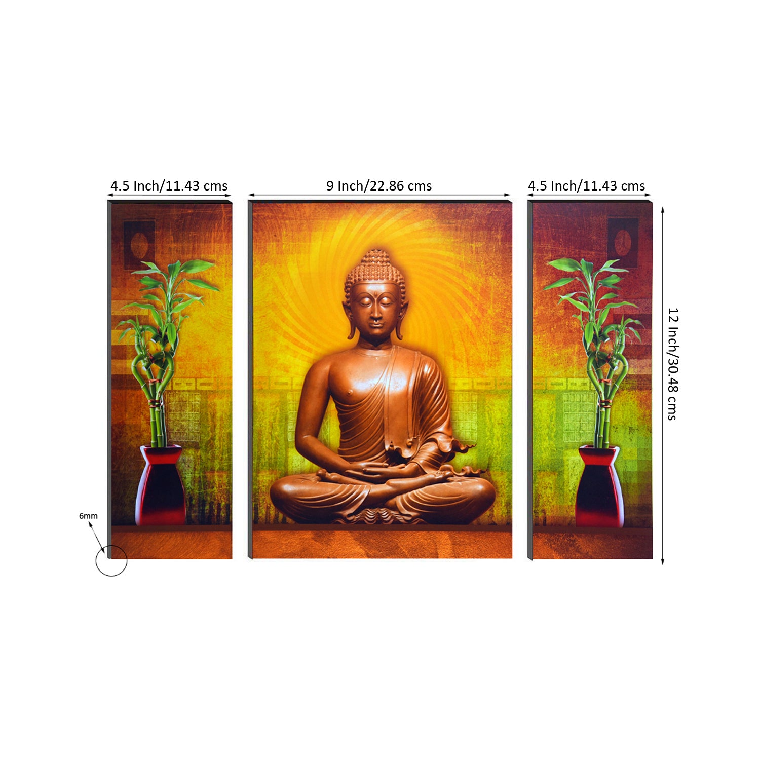 Package Content - One 6MM MDF Set of 3 Lord Buddha Satin Matt Texture UV Art Painting
