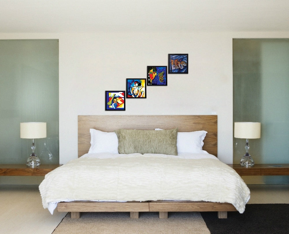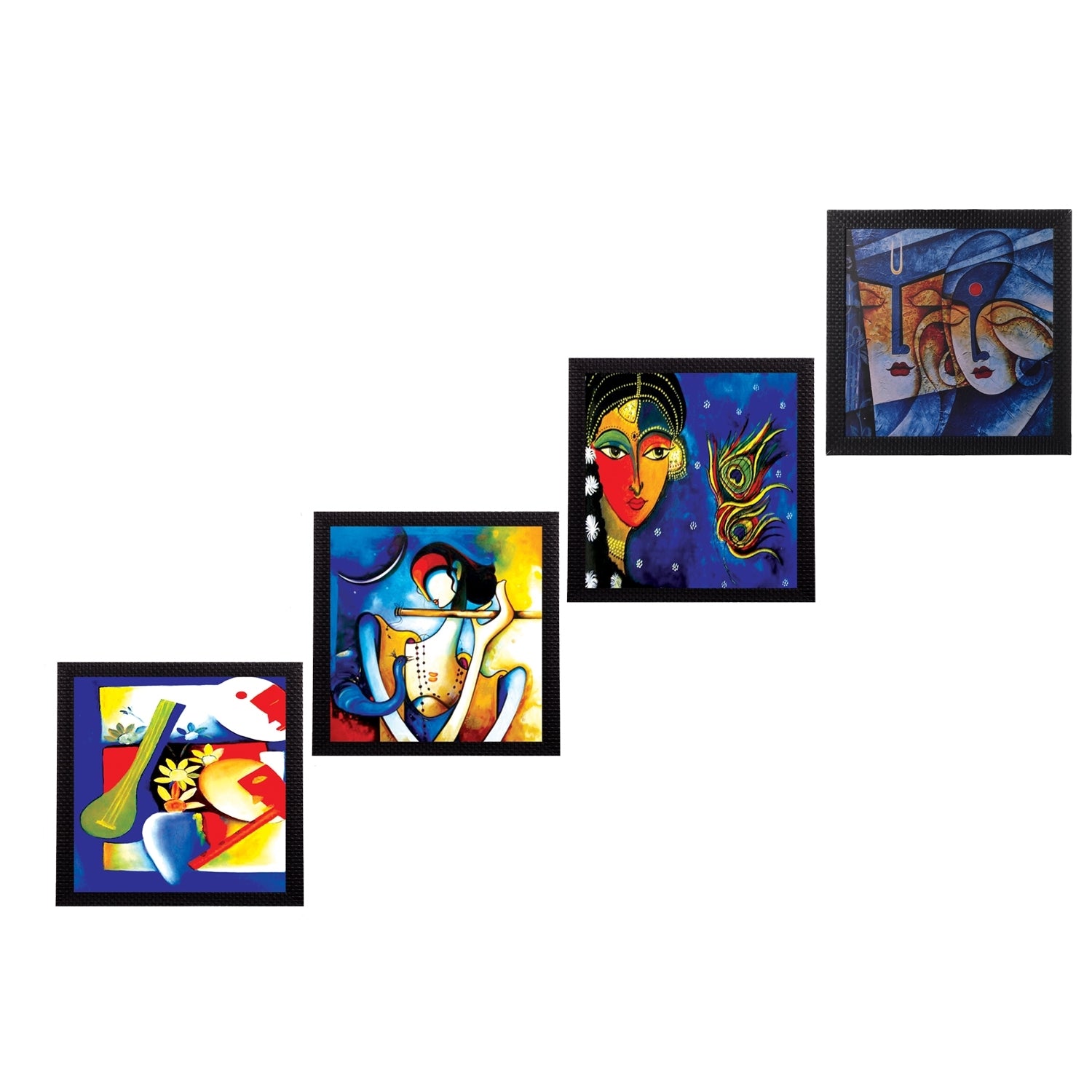 Package Content - Set Of 4 Abstract Radha Krishna Satin Matt Texture UV Art Painting