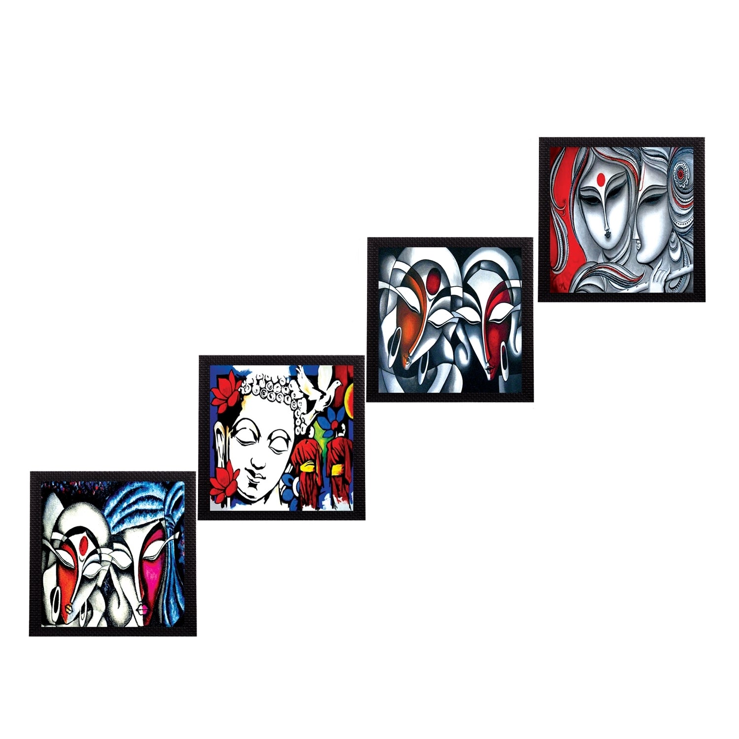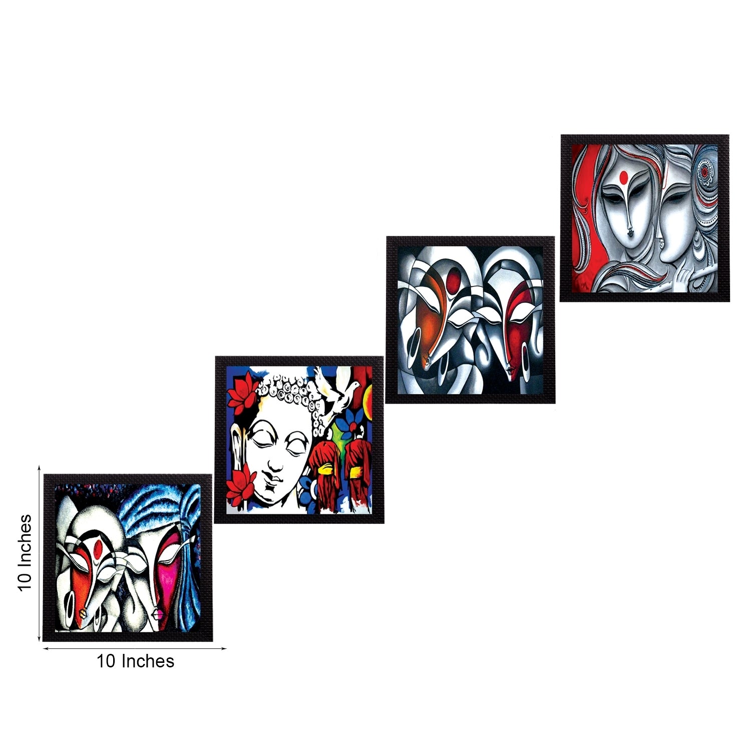Package Content - Set Of 4 Abstract Radha Krishna Satin Matt Texture UV Art Painting